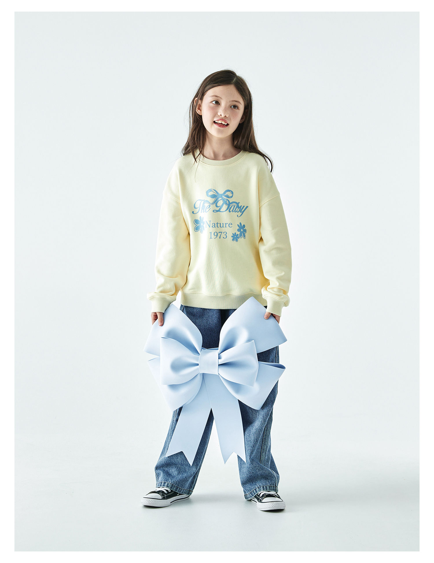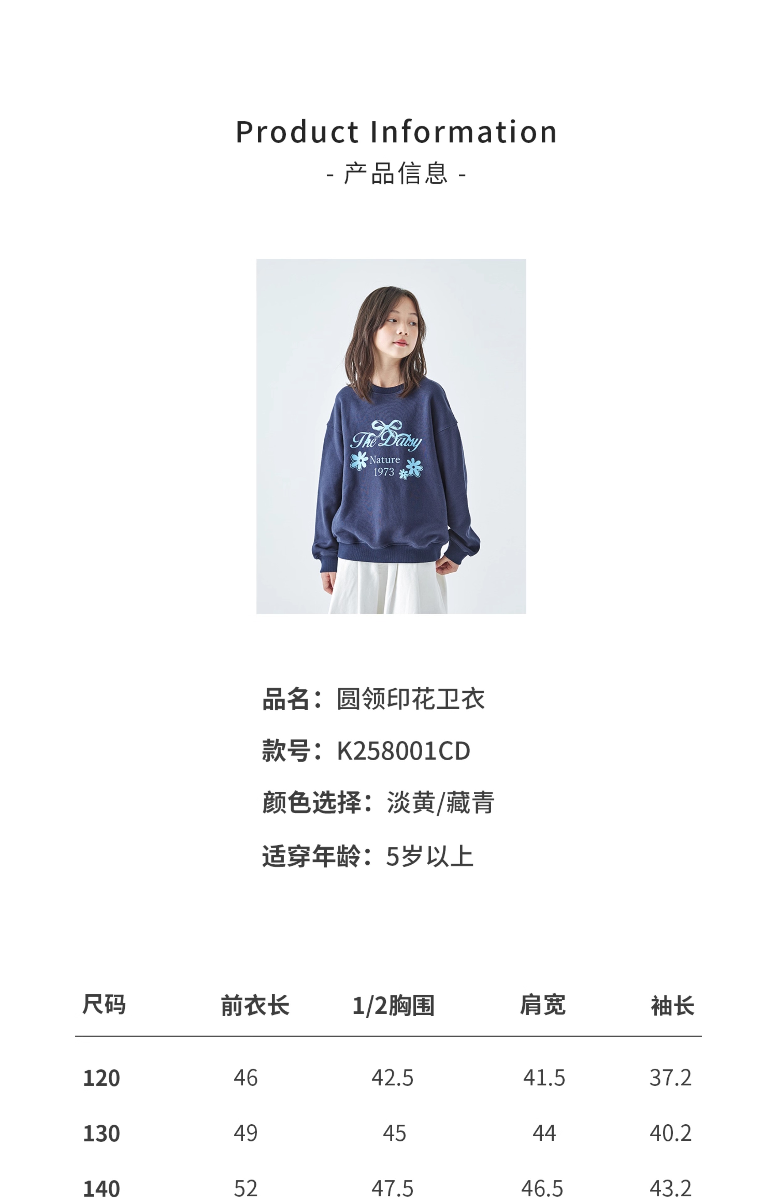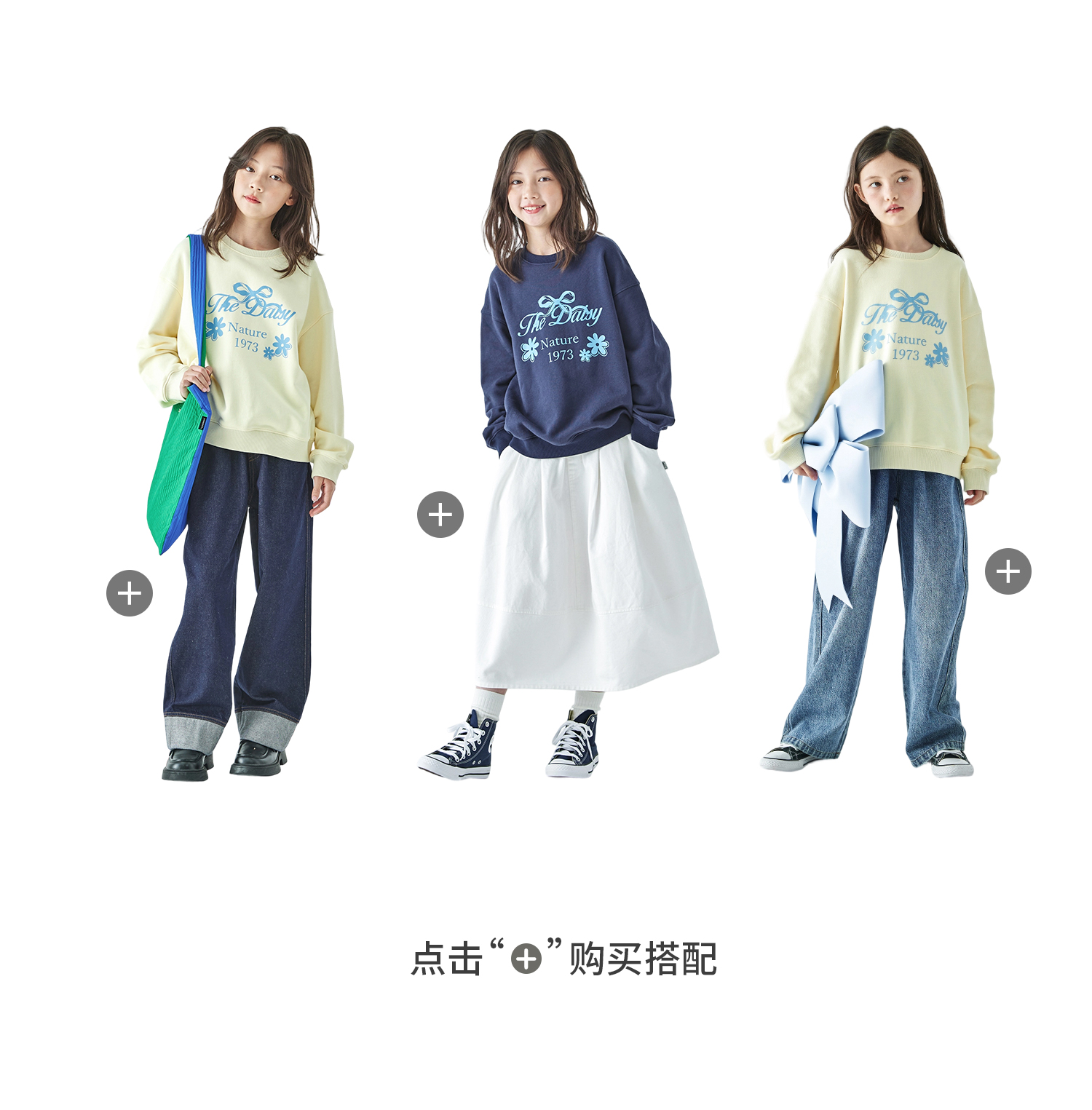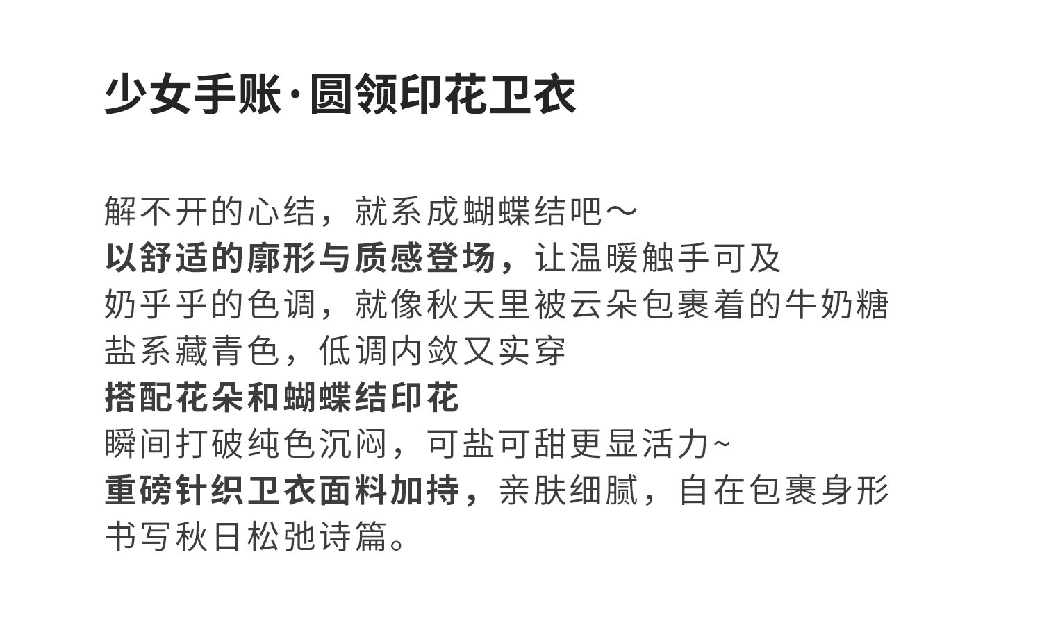棵初2025年秋季新款亲子中大女童圆领卫衣宽松长袖蝴蝶结印花上衣