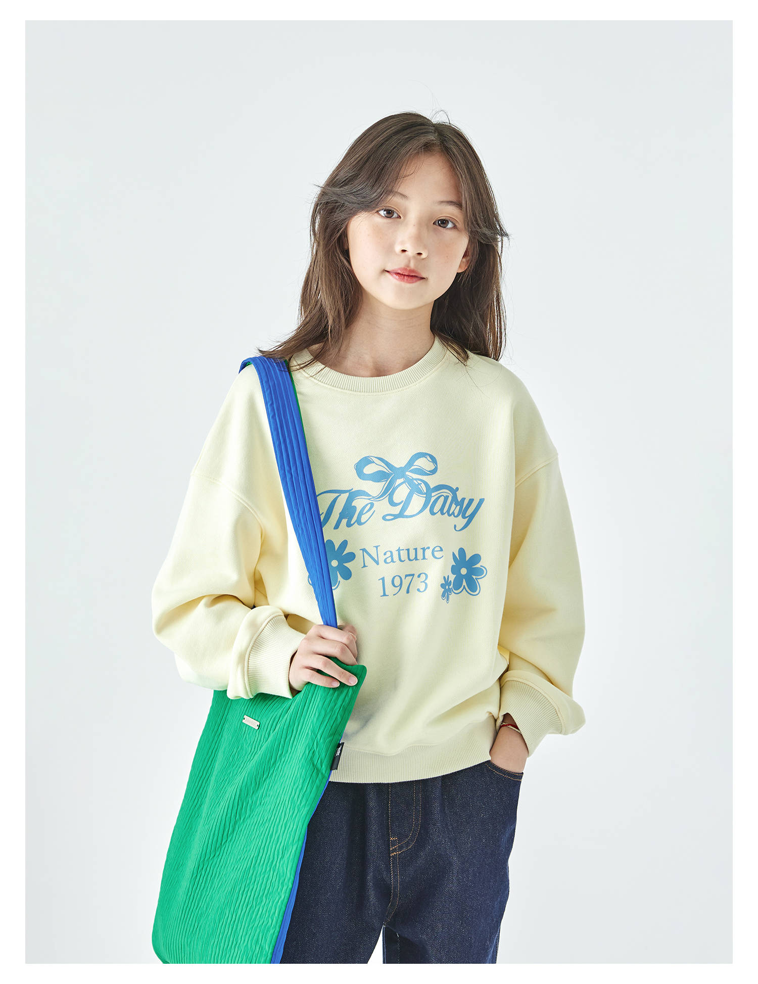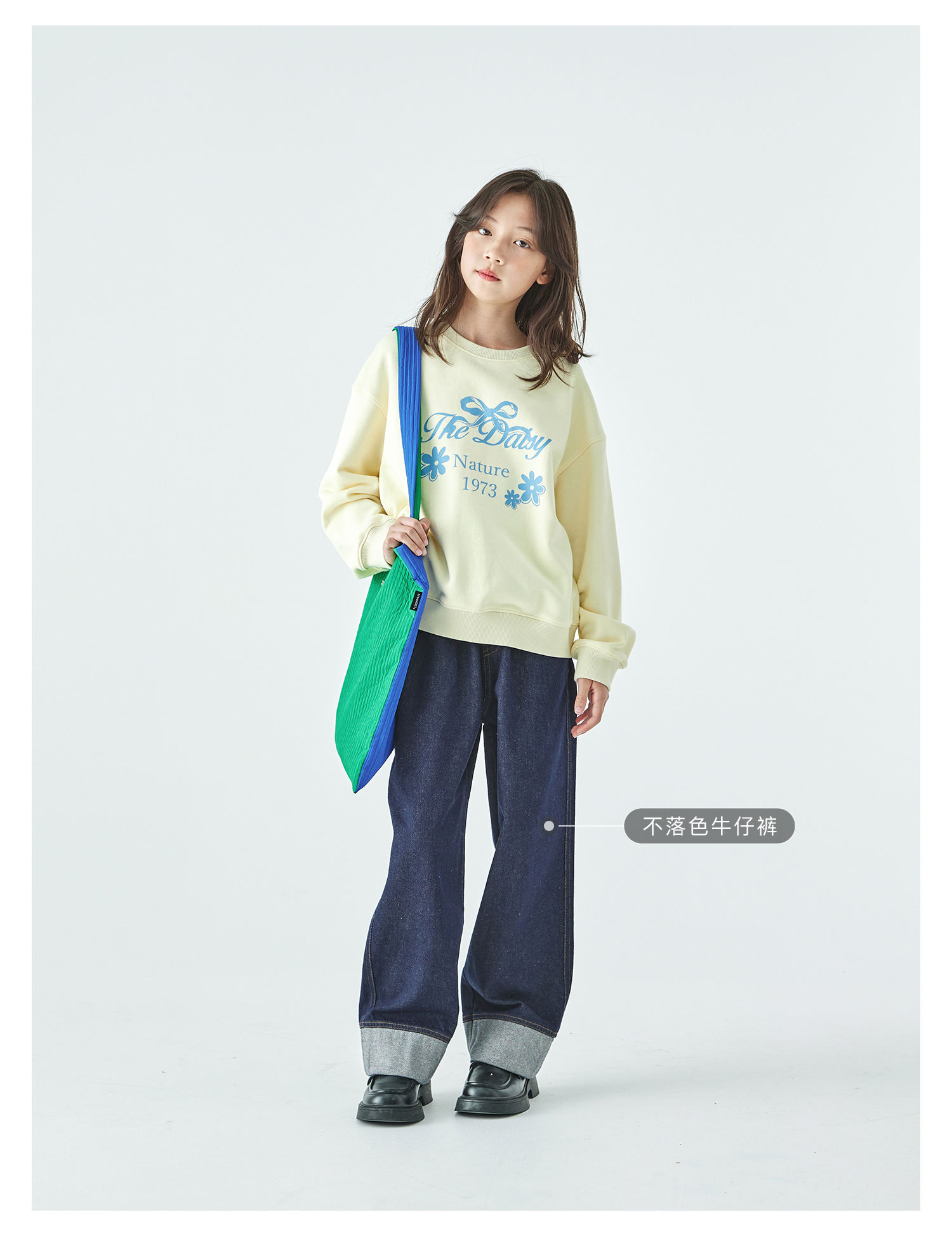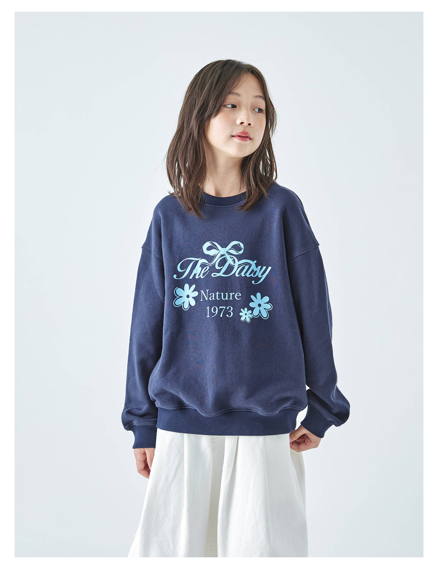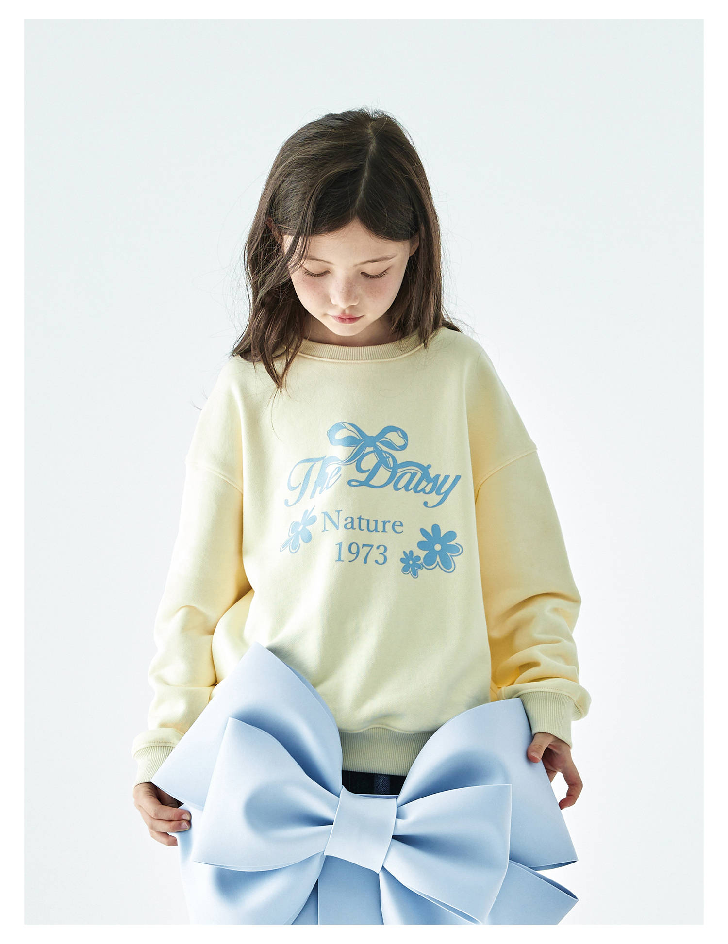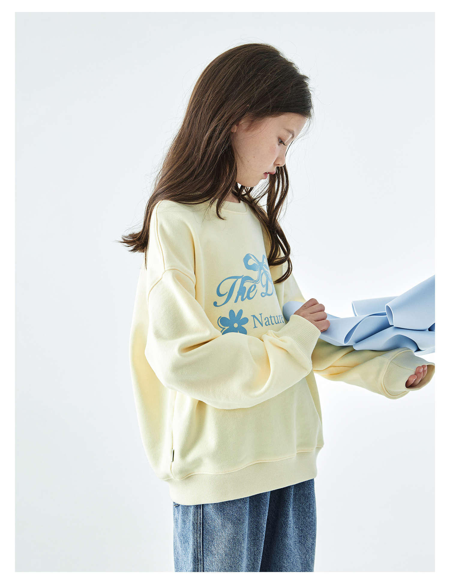 棵初2025年秋季新款亲子中大女童圆领卫衣宽松长袖蝴蝶结印花上衣