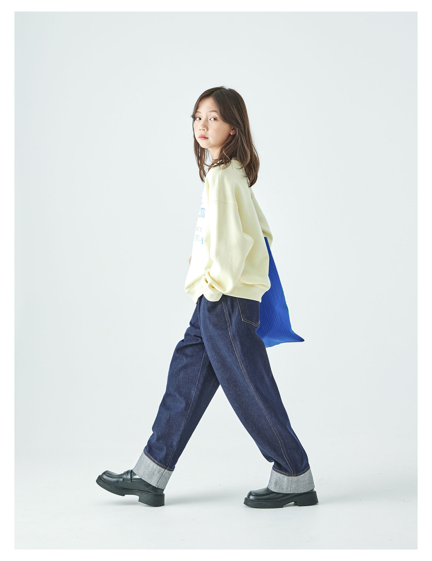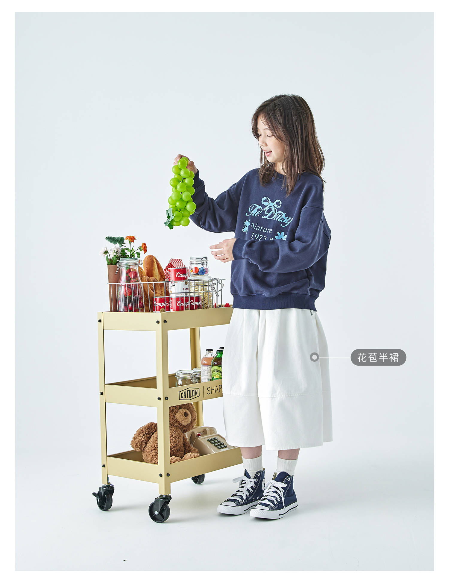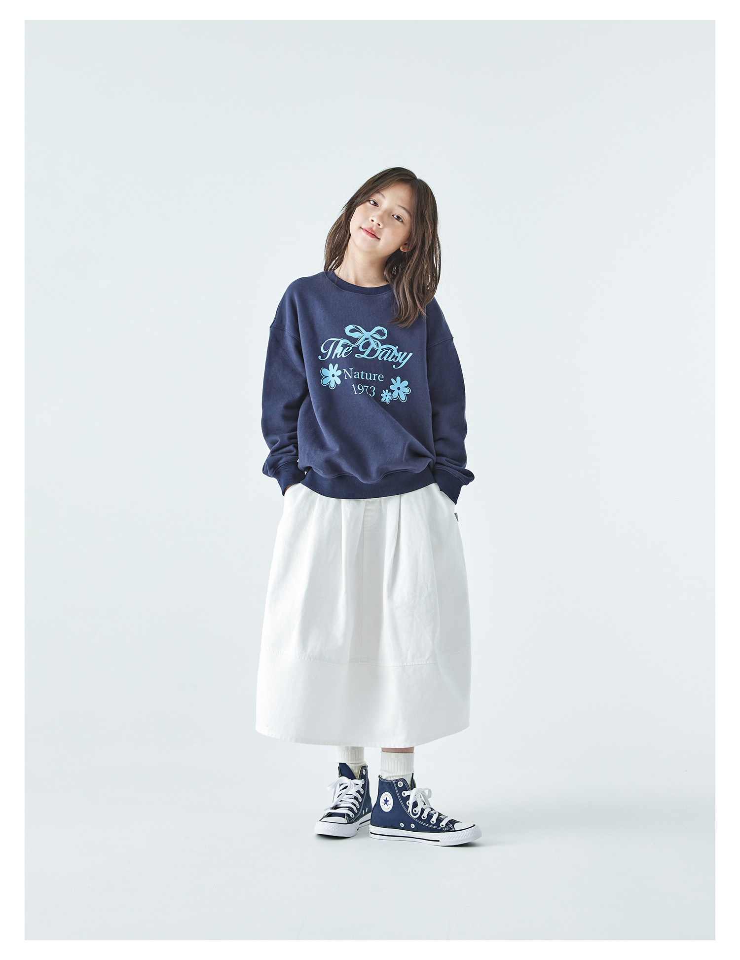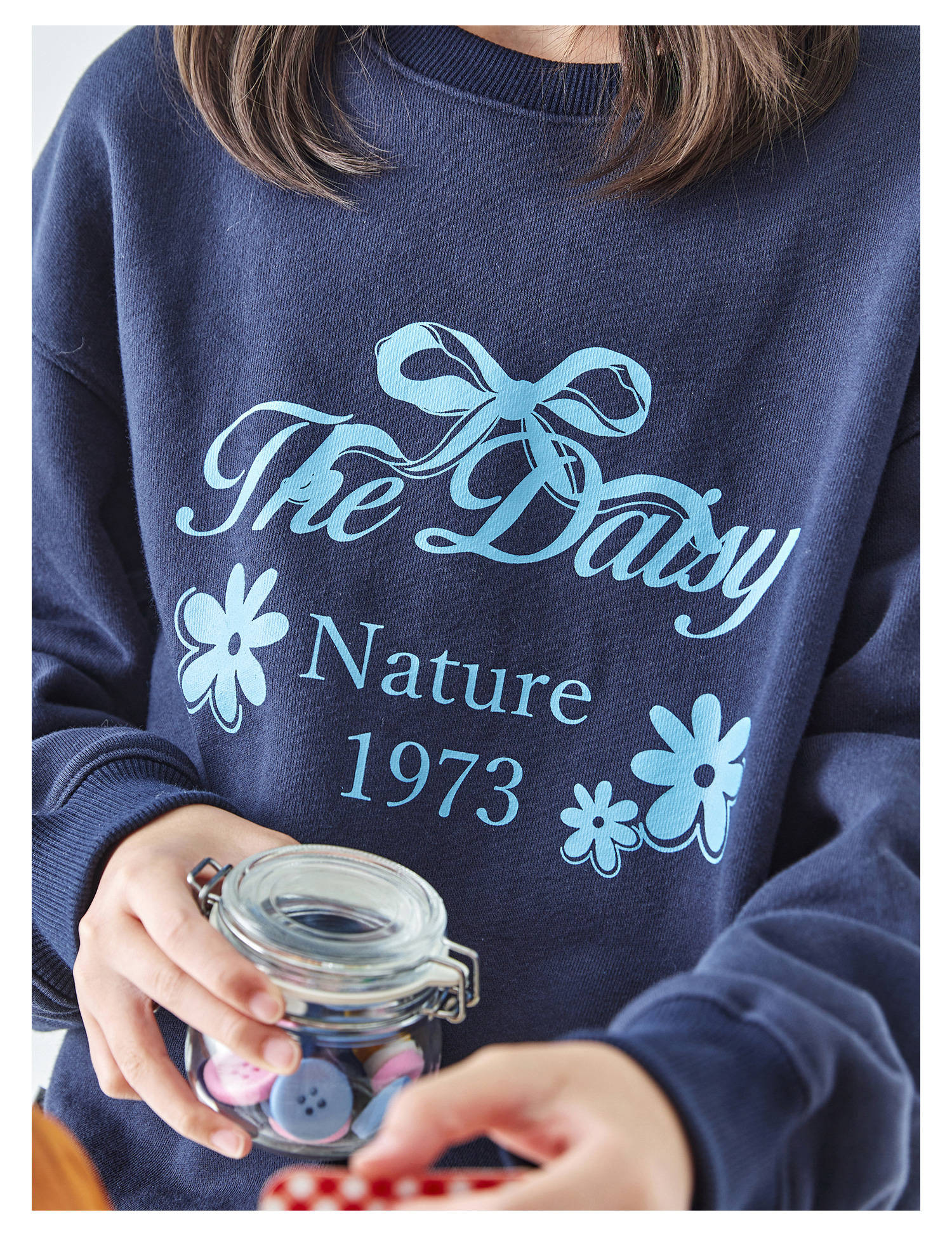 棵初2025年秋季新款亲子中大女童圆领卫衣宽松长袖蝴蝶结印花上衣