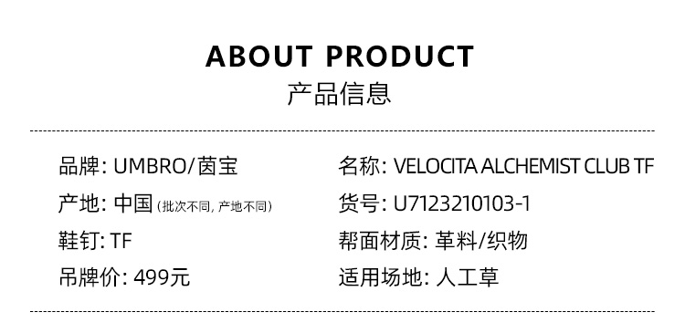 SFS茵宝UMBRO VELOCITA ALCHEMIST CLUB入门级碎钉TF人草足球鞋