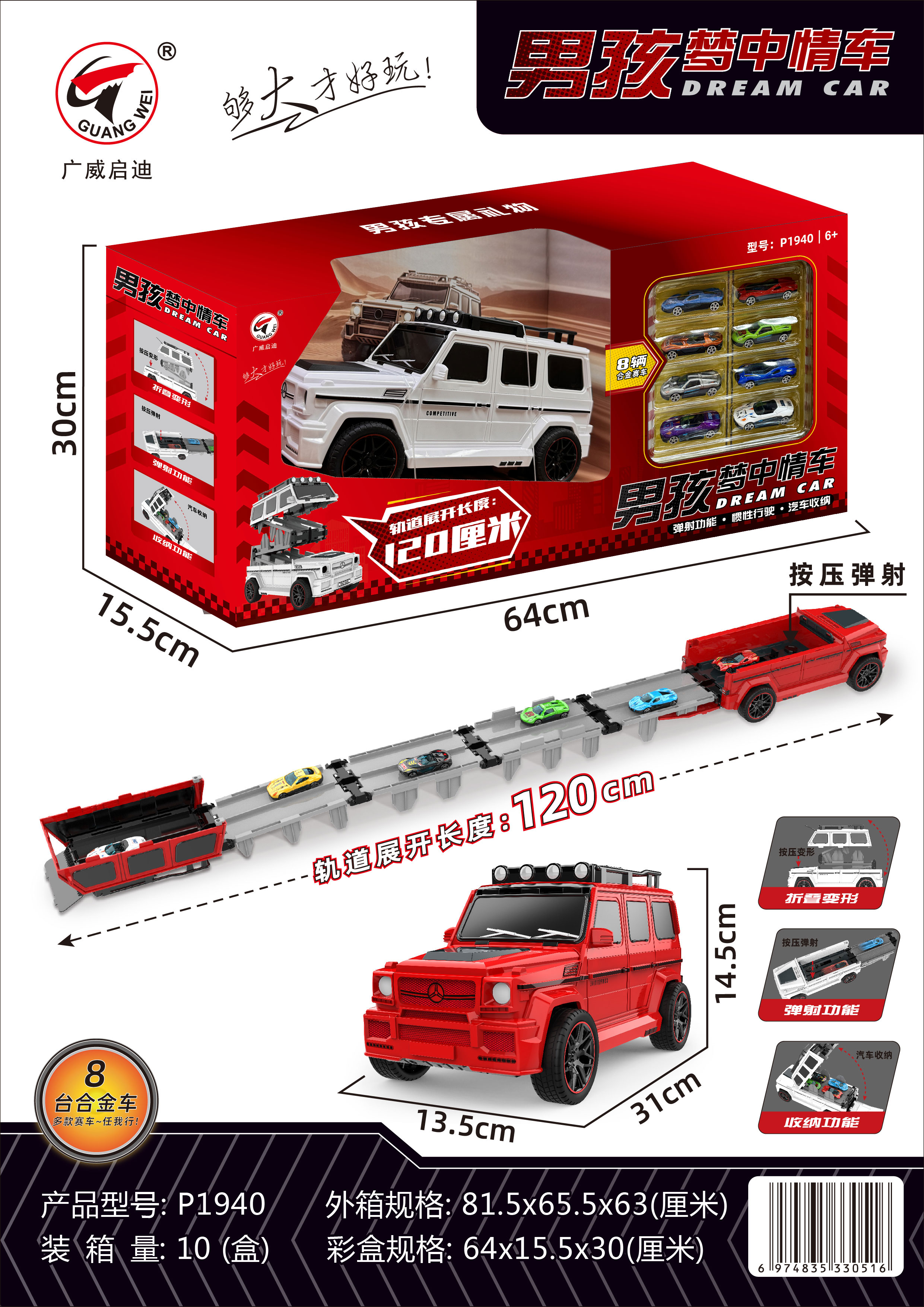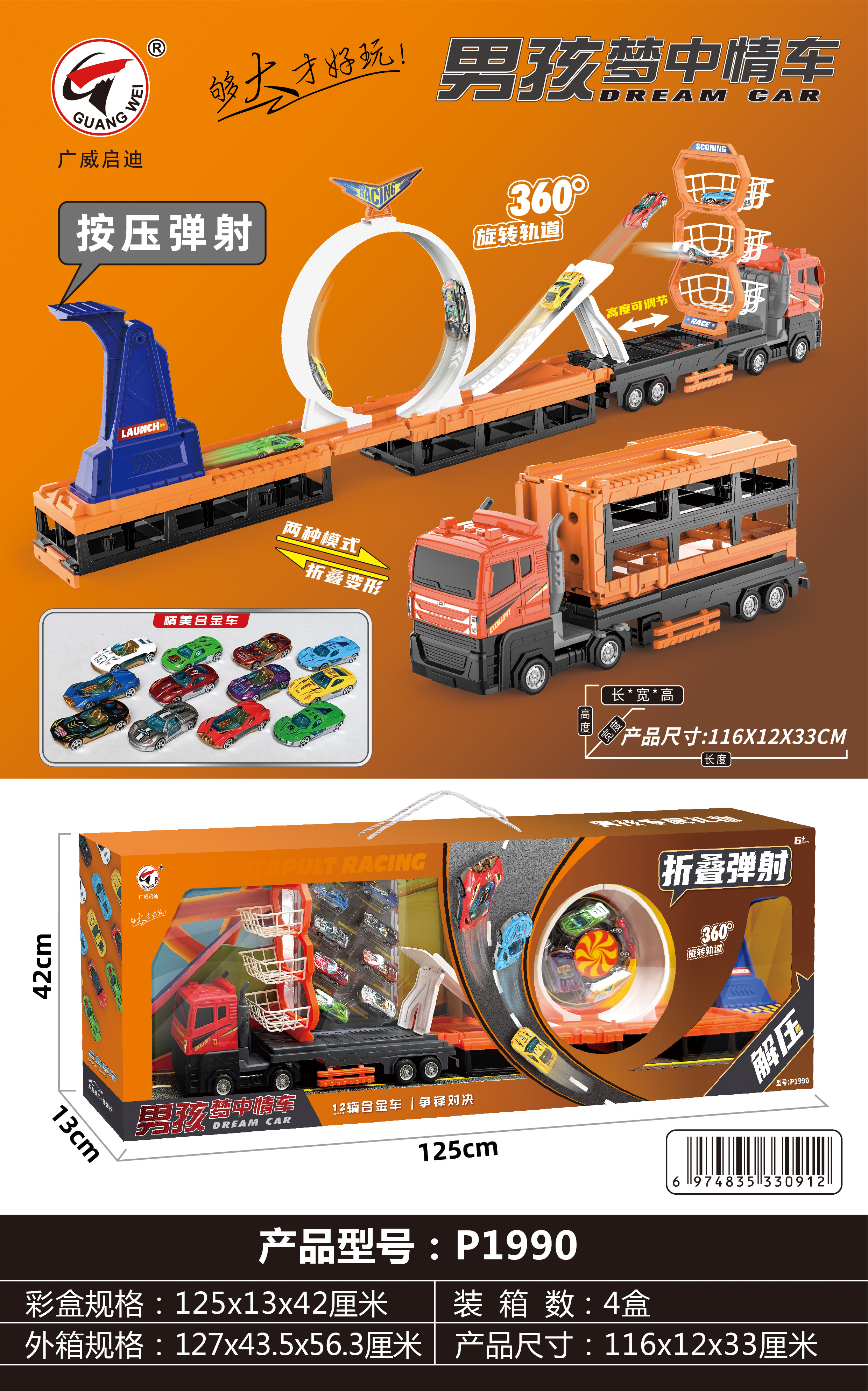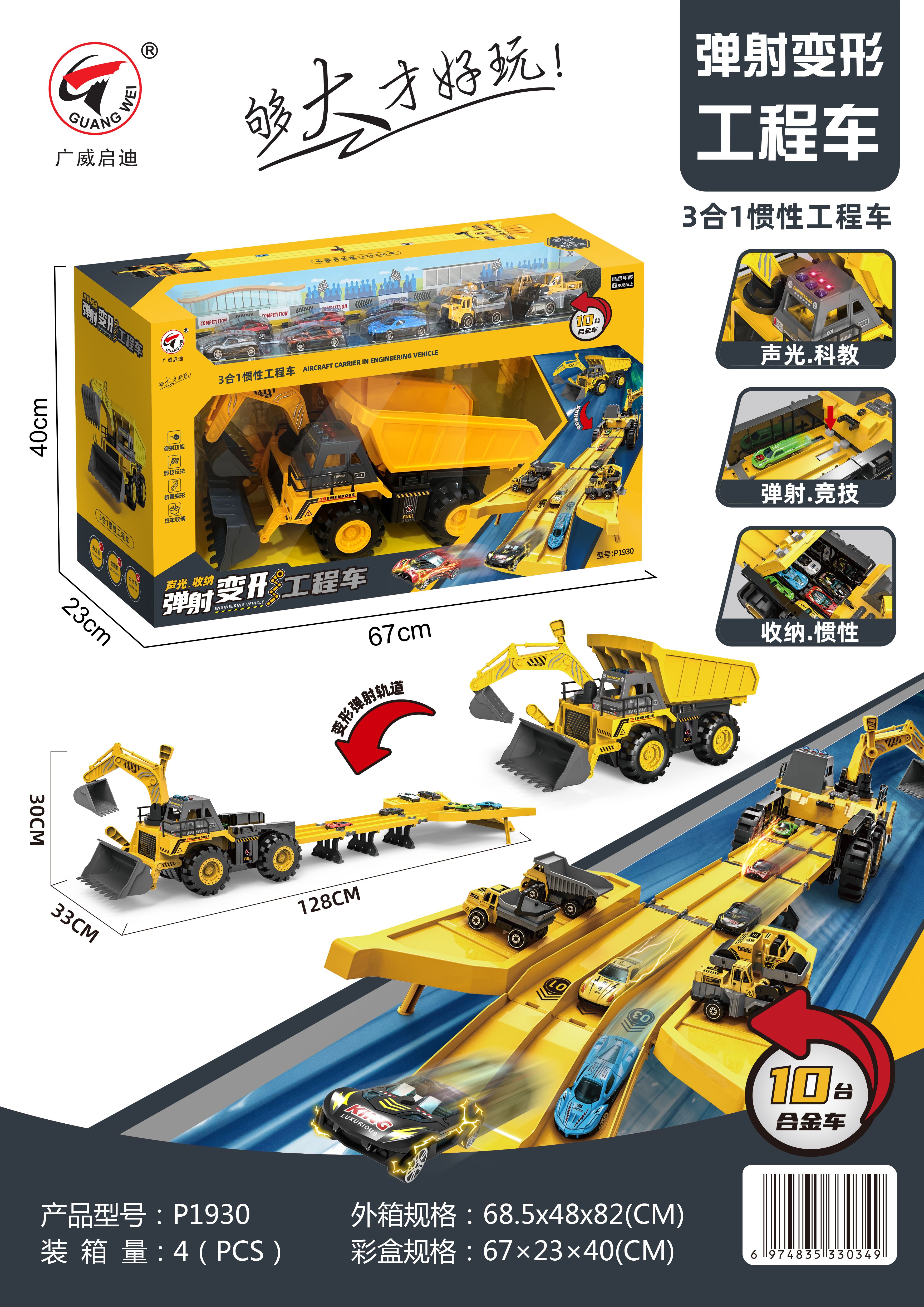 广威启迪货柜消防车变形大卡车儿童运输折叠轨道弹射汽车停车玩具