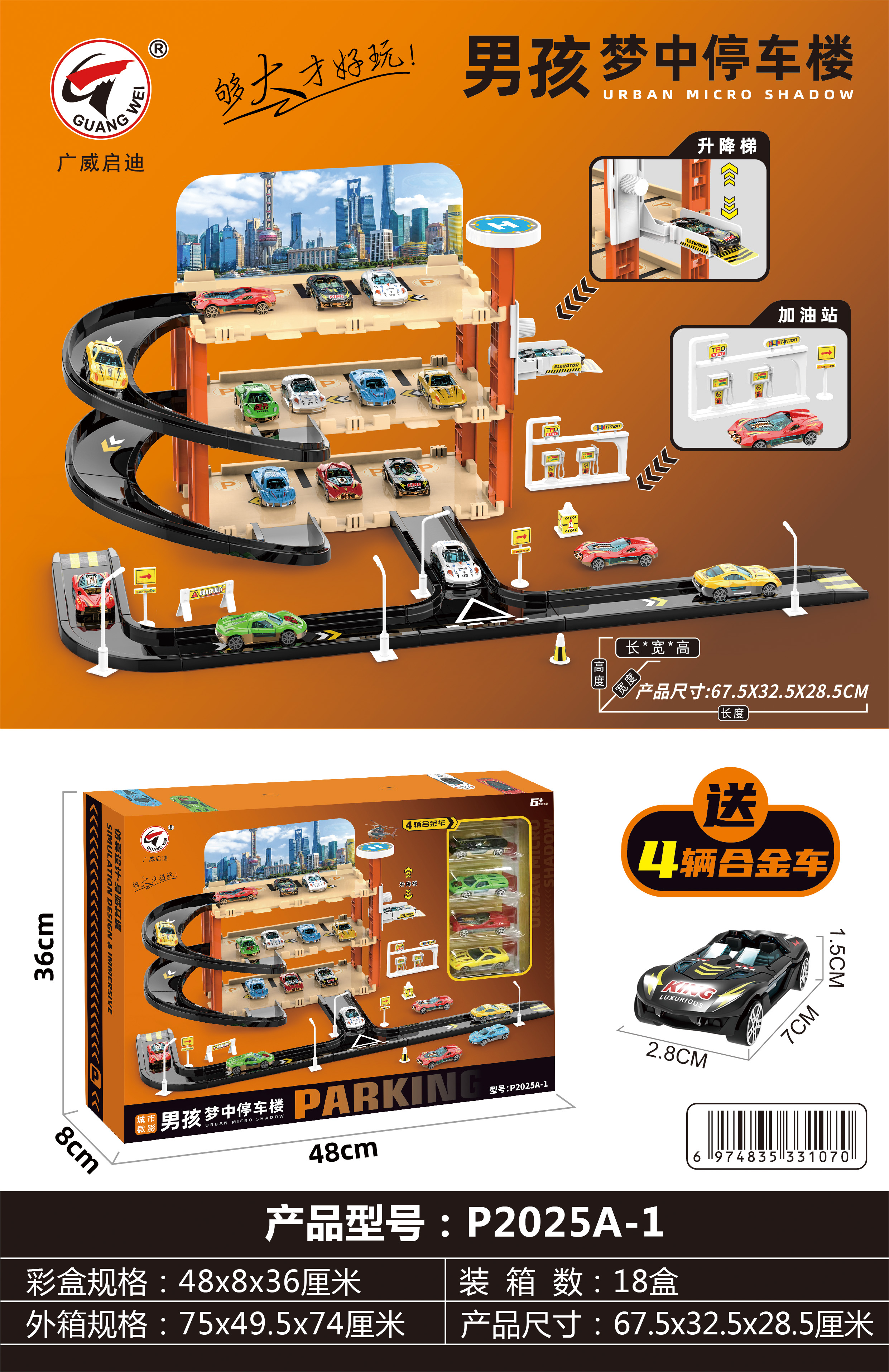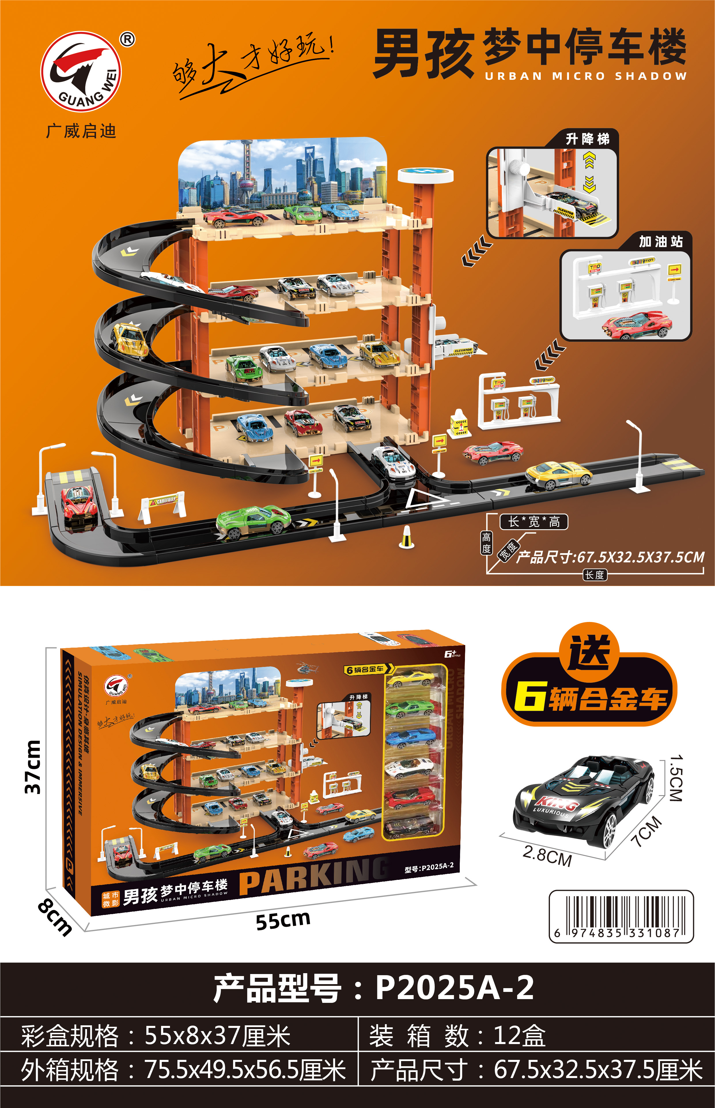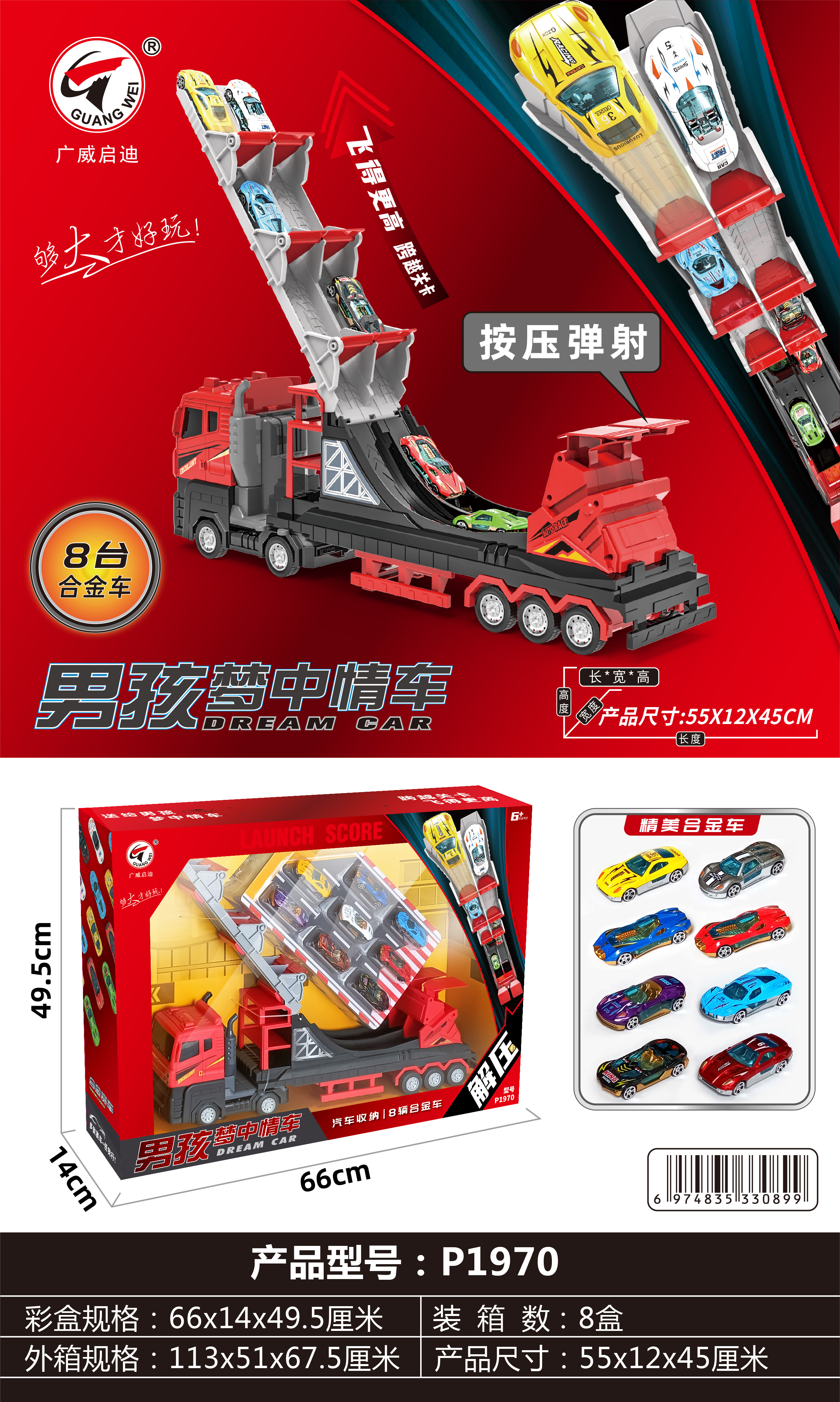 广威启迪货柜消防车变形大卡车儿童运输折叠轨道弹射汽车停车玩具