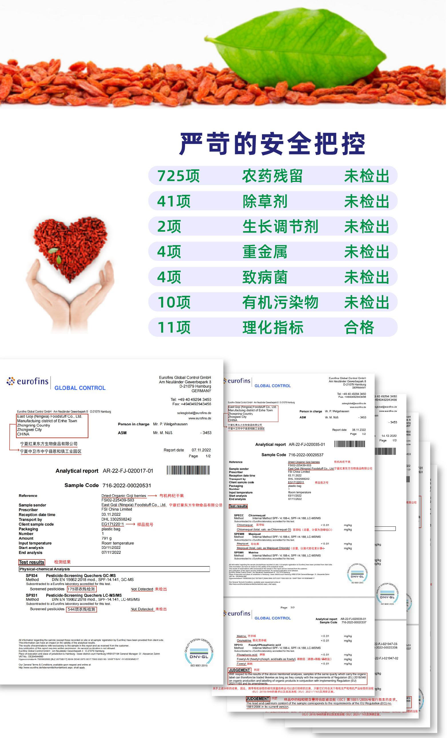 每一批次都通过共计797项七大类安全检测,结果全部未检出!每一袋里都有对应的检测报告,真实有效。小孩、老人、产妇也能放心吃!