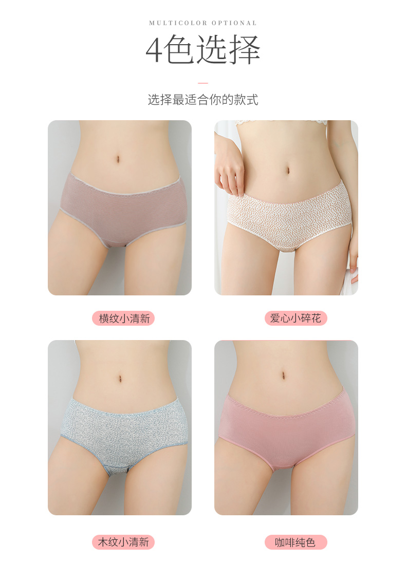 洁丽雅4条装女士内裤亲肤舒适内裤女