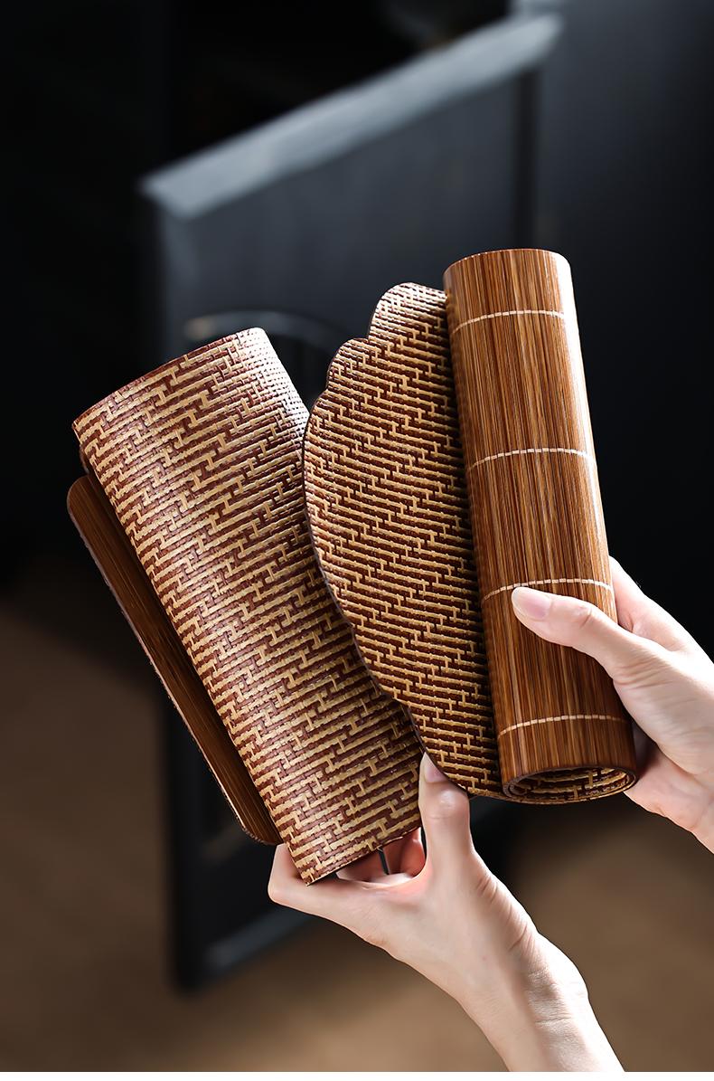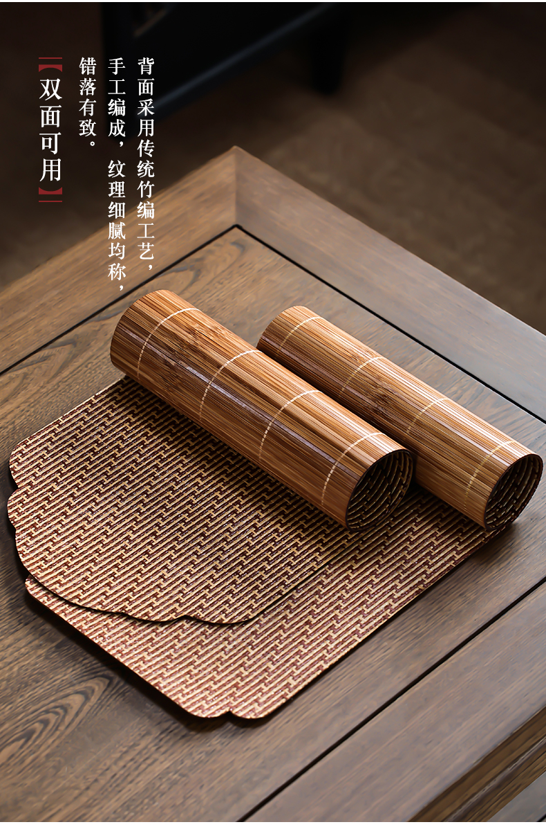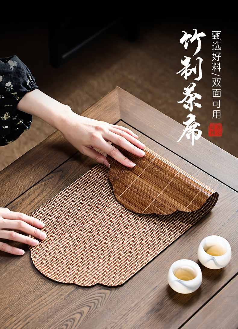 竹编大漆主人席竹茶席禅意竹制小号隔热垫桌旗布干泡茶具配件茶垫防水茶帘