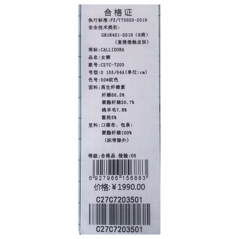 卡莉朵拉长裤C27C7203