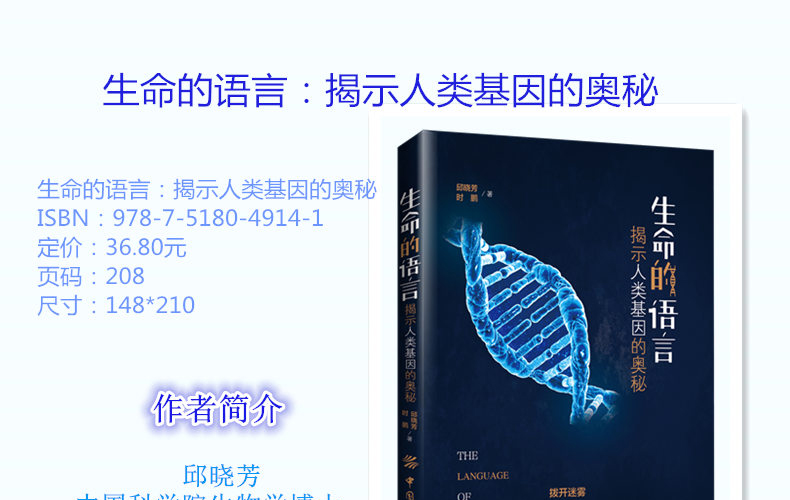 生命的语言 揭示人类基因的奥秘 邱晓芳 基因科学书籍 基因编辑简史 基因检测技术 基因鉴定 生物科学 遗传学 基因工程 科普书籍