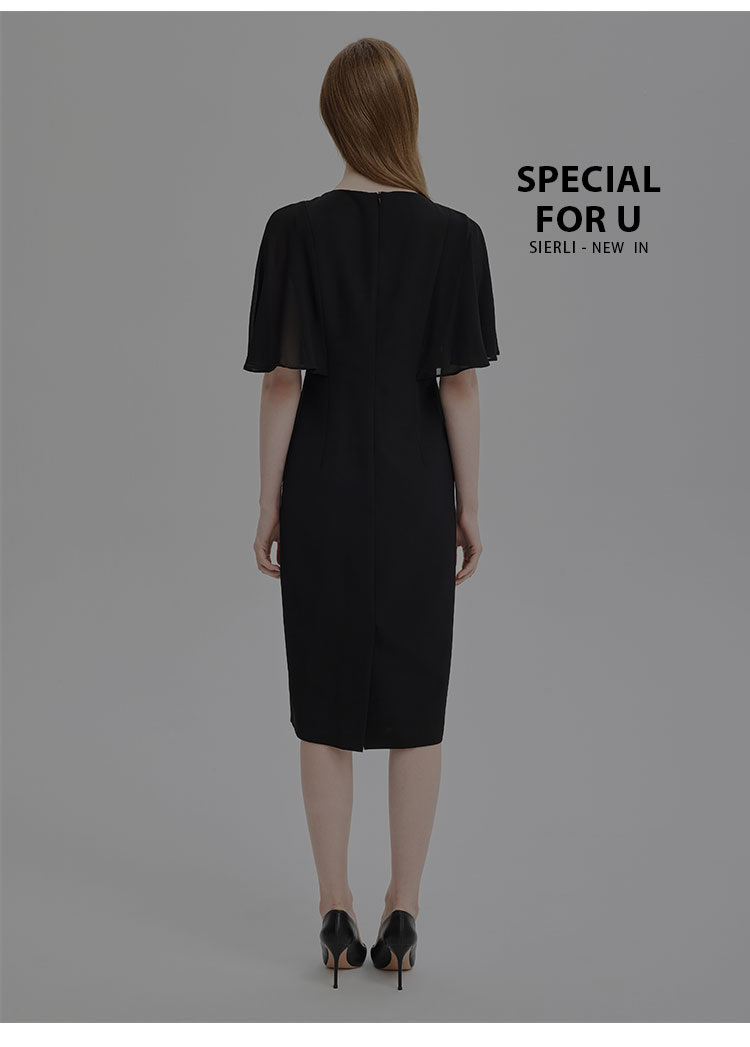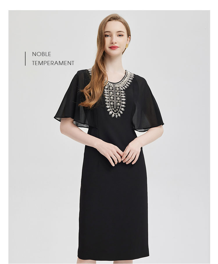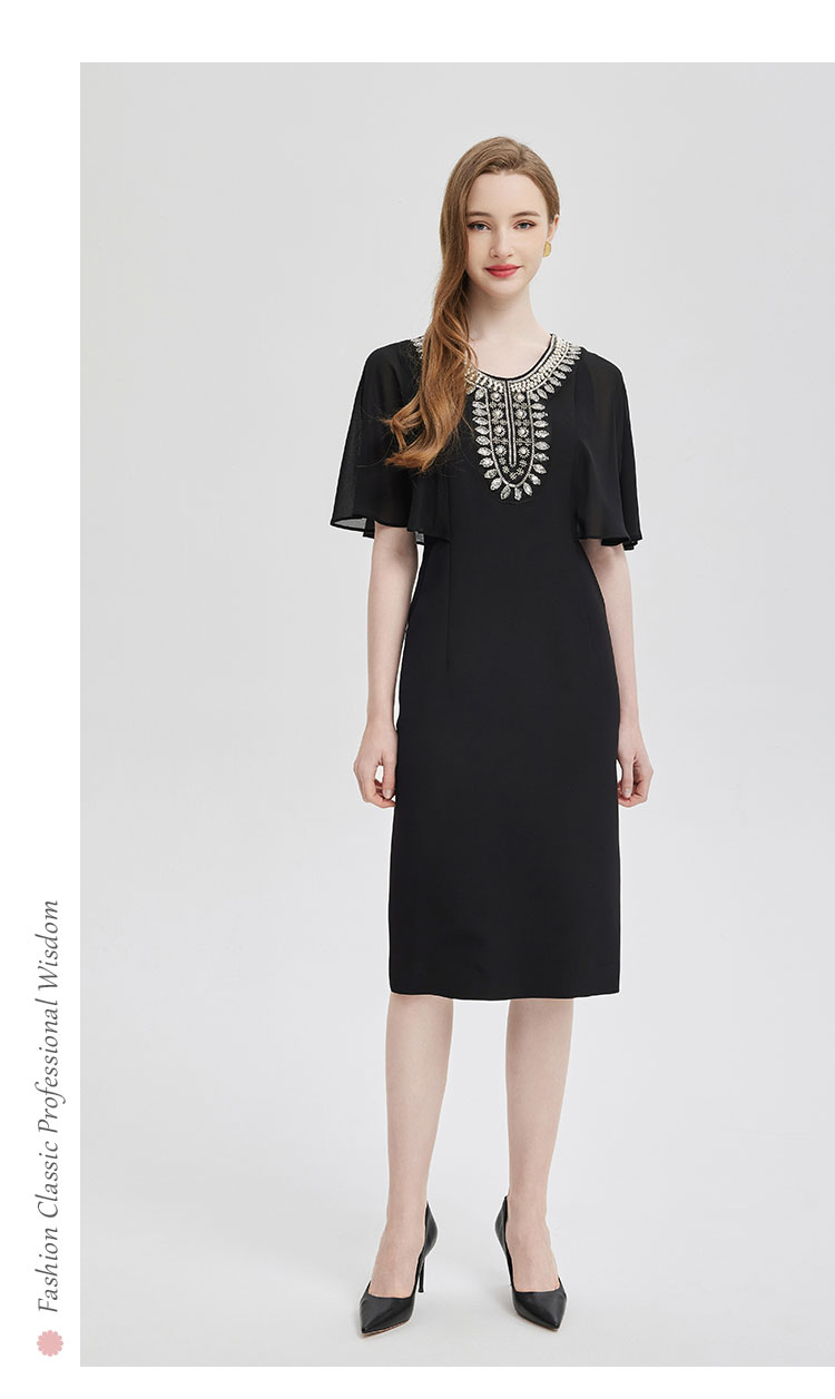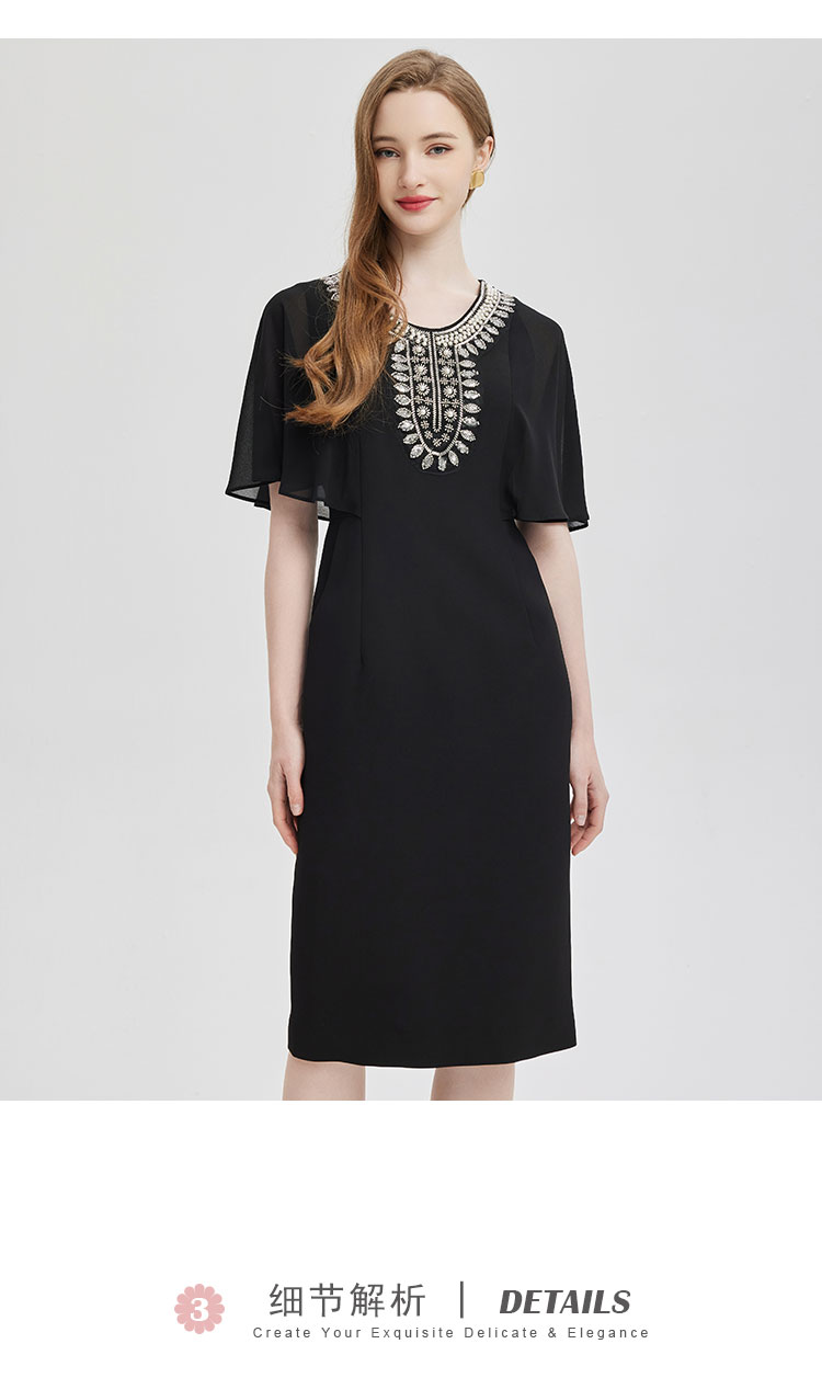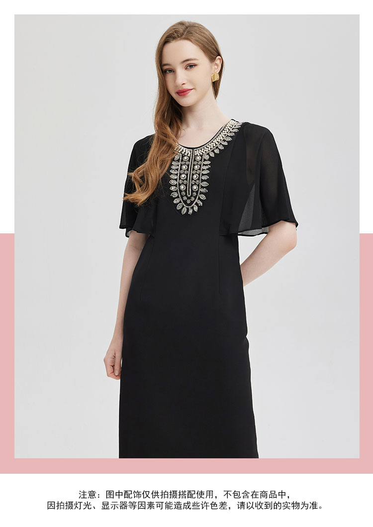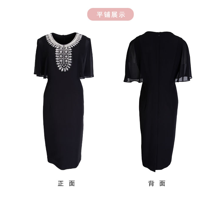 PF805斯尔丽24新款复古钉珠高级奢华袖子荷叶浪漫挡肉收腰礼服式连衣裙