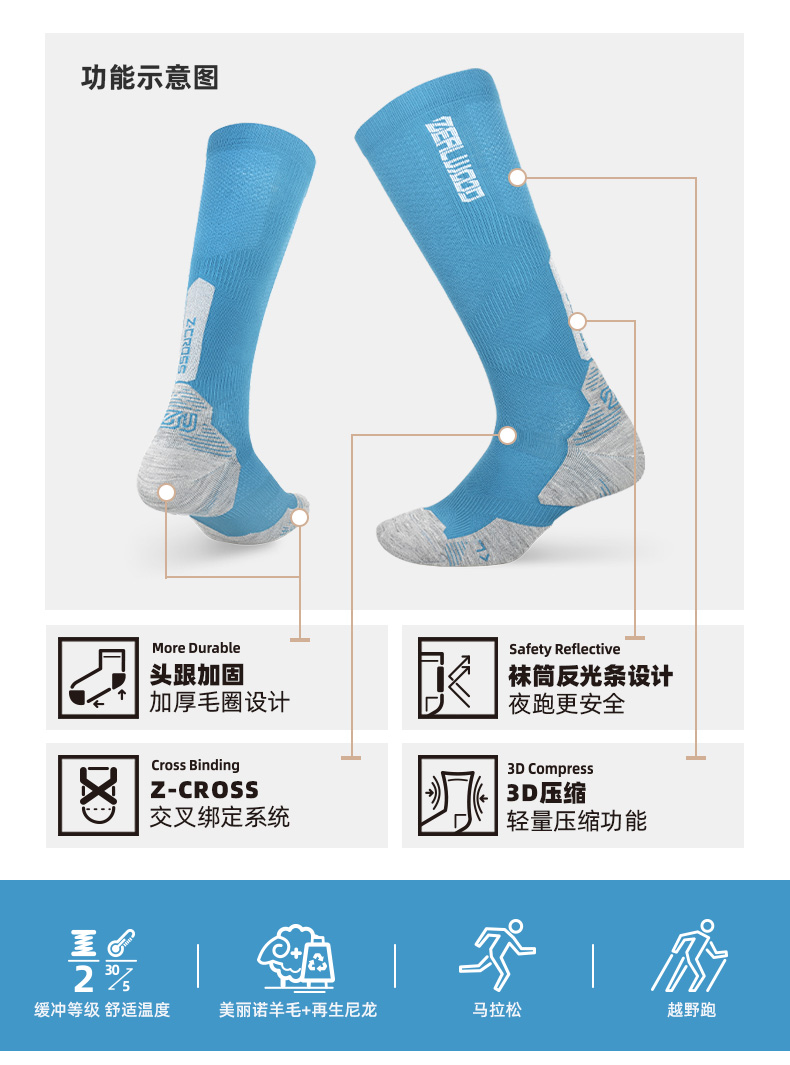 159元2双起新品赛乐ZEALWOOD全新R系列越野跑袜马拉松压力跑步袜压缩夜跑反光