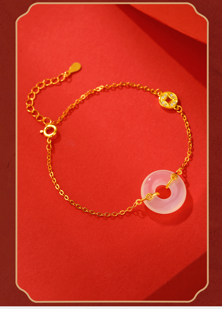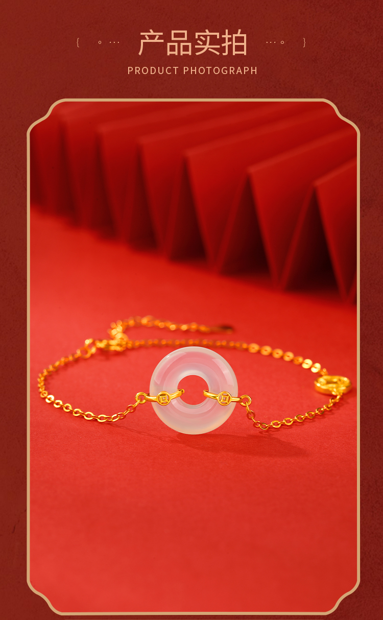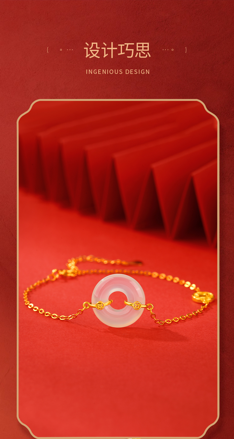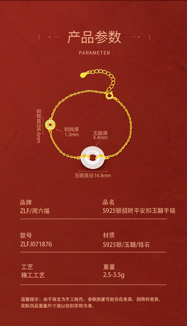 周六福S925银招财平安扣玉髓手链ZLFJ071876★