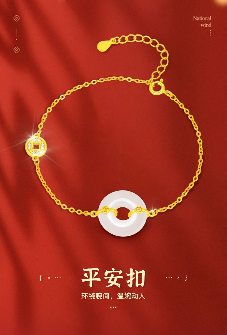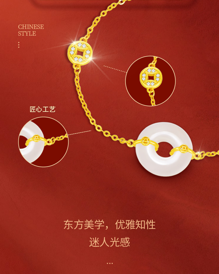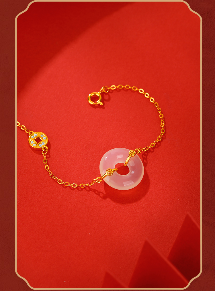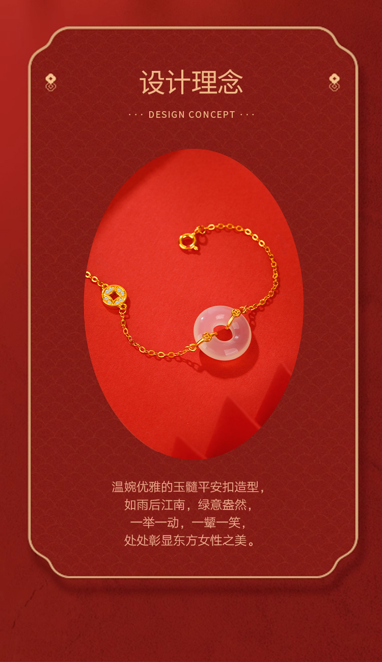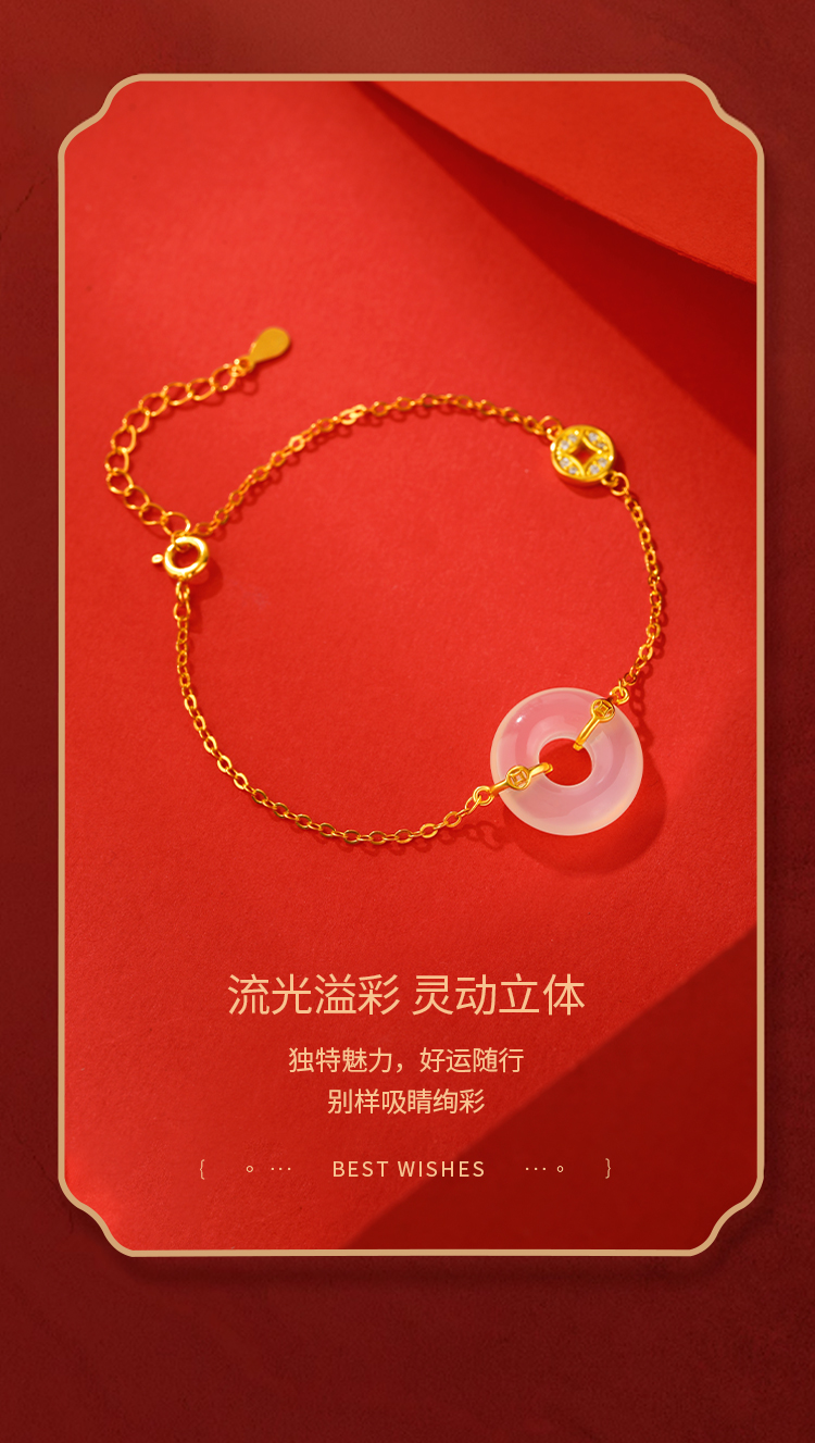 周六福S925银招财平安扣玉髓手链ZLFJ071876★