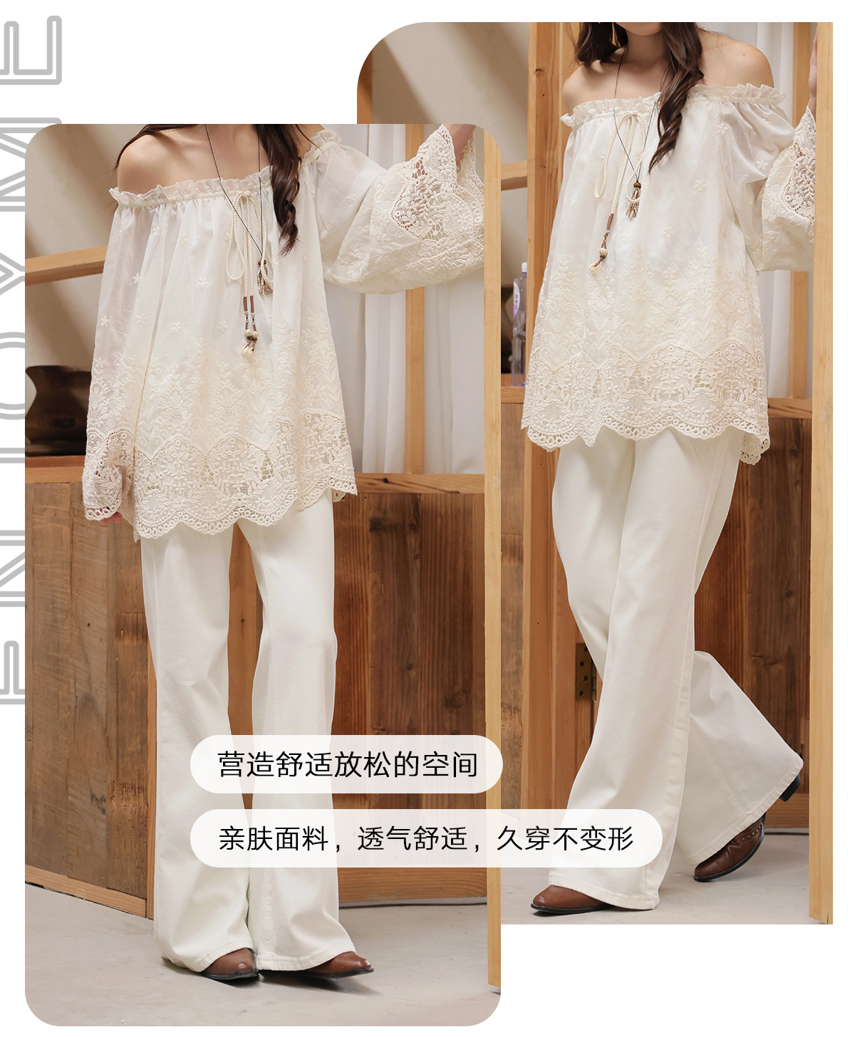 【门店同款】ENJOY春季“柔光芳序”荷叶边刺绣上衣 169743248