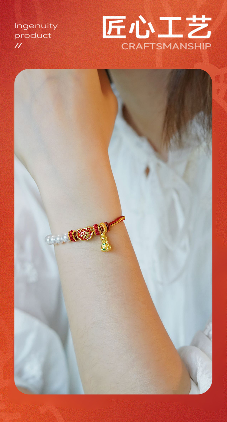 心选丨“珠”事如意红绳马年大势至菩萨手工编绳手链 铜镀18K真金祈福卡设计礼品盒