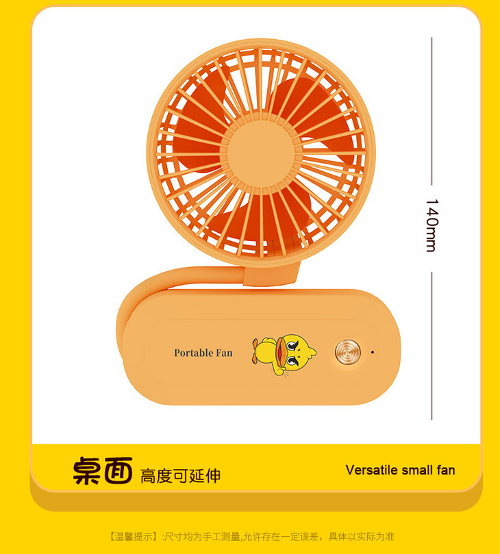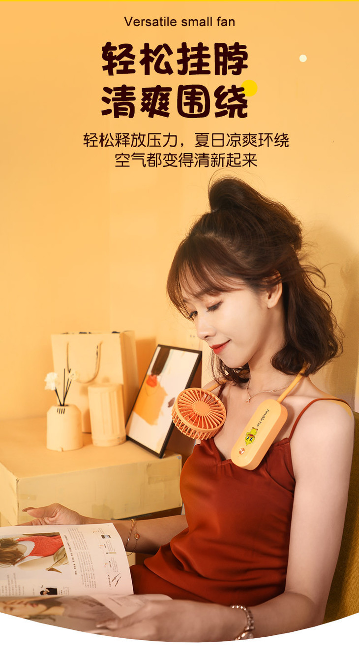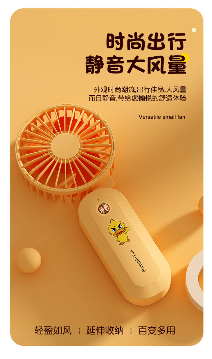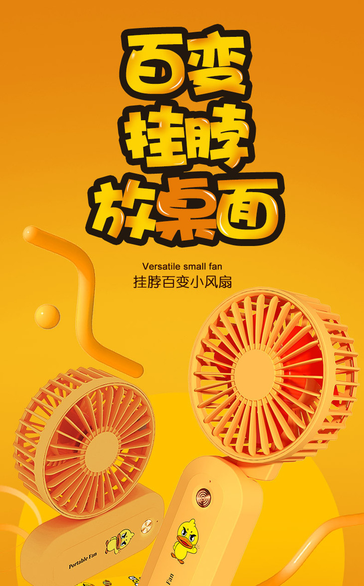 【百变挂脖风扇】新款小黄鸭USB充电迷你风扇便携式三档可调时尚出行静音大风量