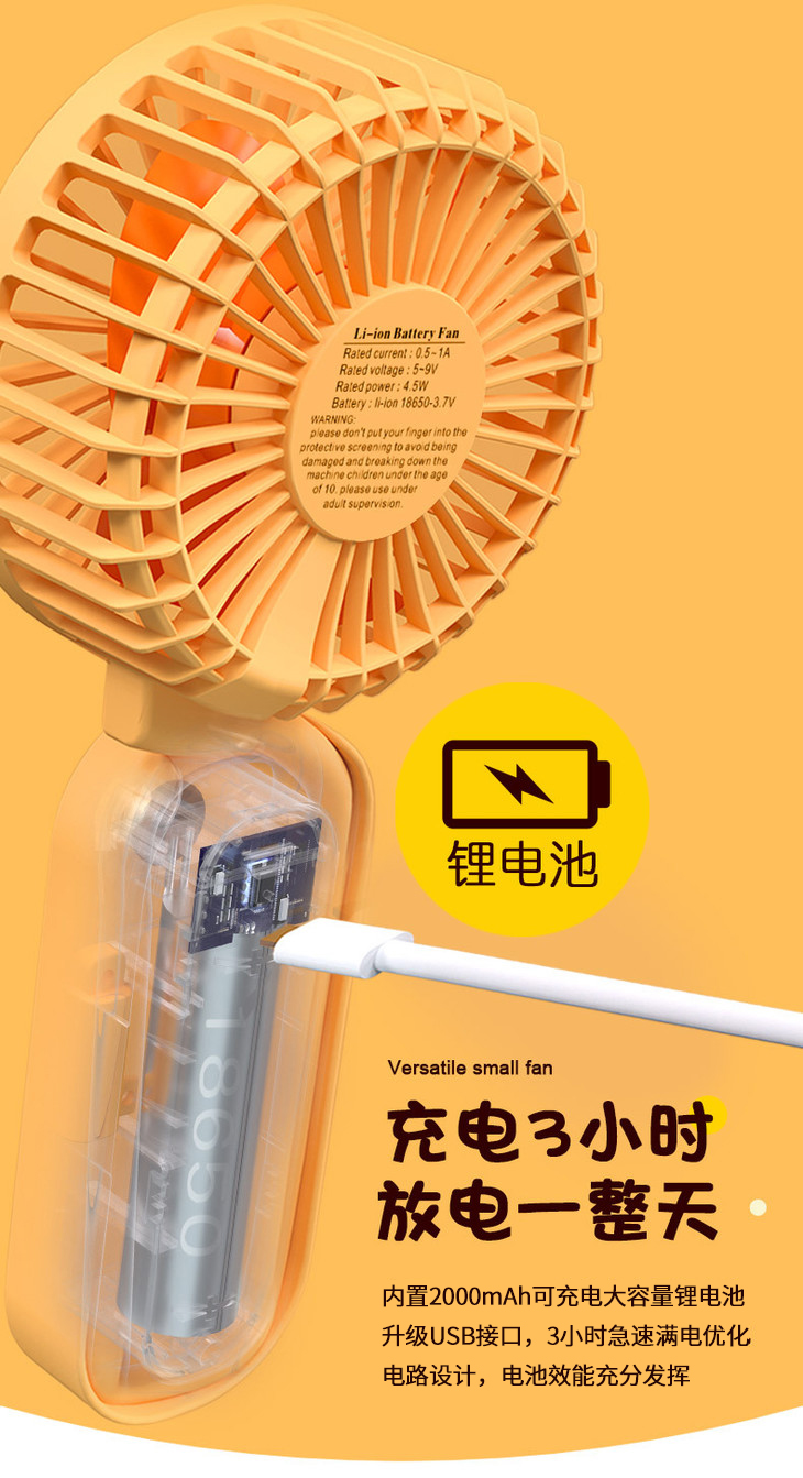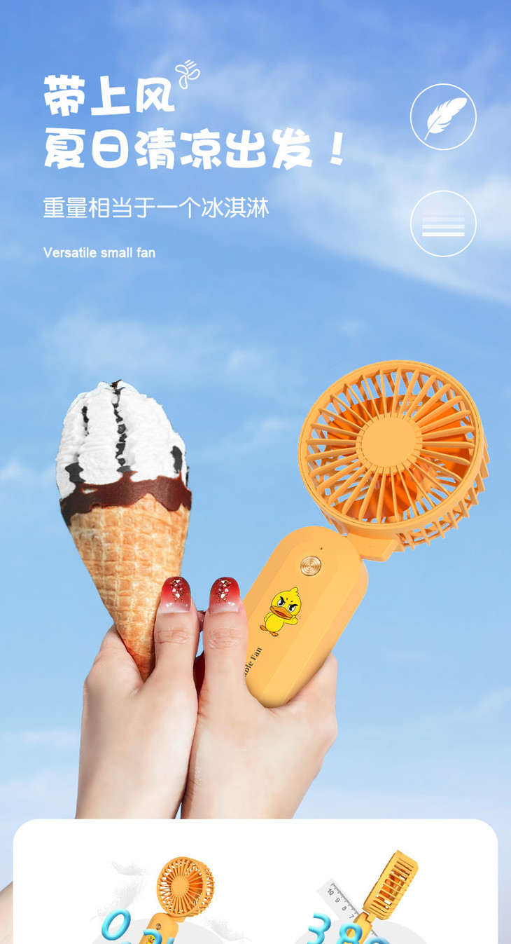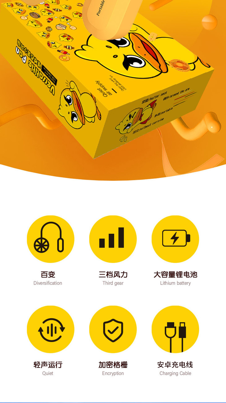 【百变挂脖风扇】新款小黄鸭USB充电迷你风扇便携式三档可调时尚出行静音大风量