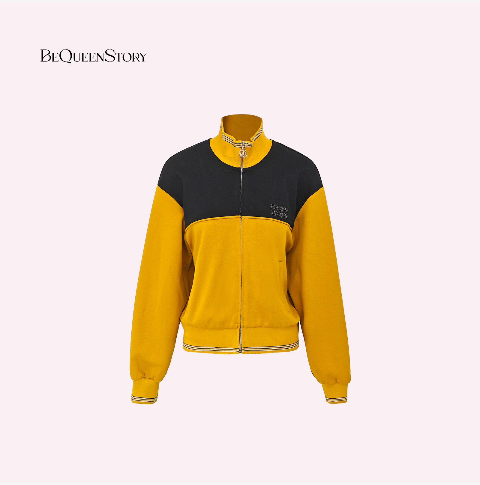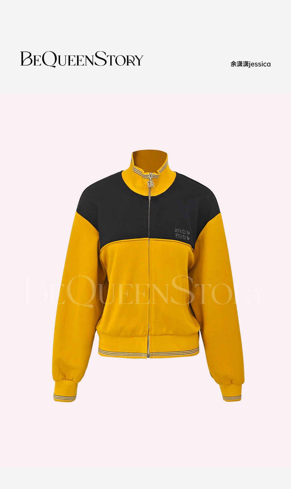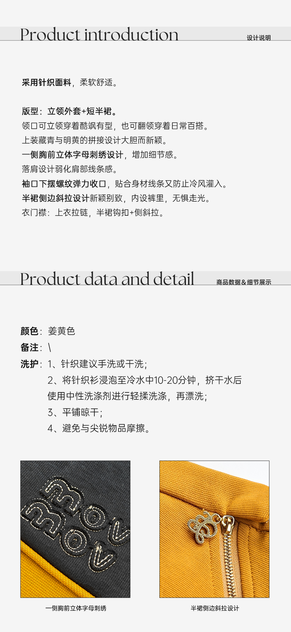 余潇潇【麦田守望者】撞色拼接宽松落肩立领外套&侧斜拉短裤裙套装