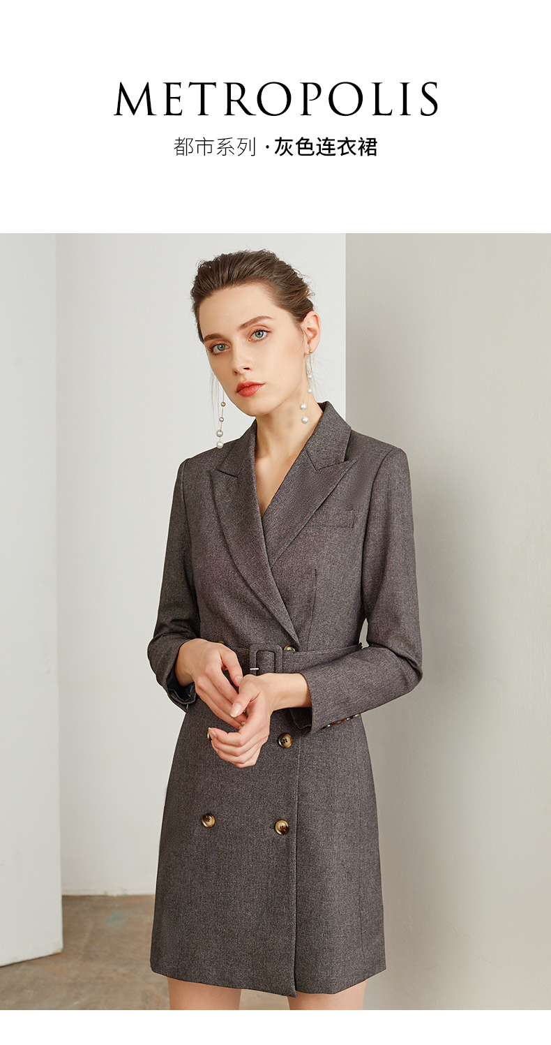 IWY/英伦风灰色系带连衣裙女职业商务职场穿搭事情气质女神范上班正装Q901