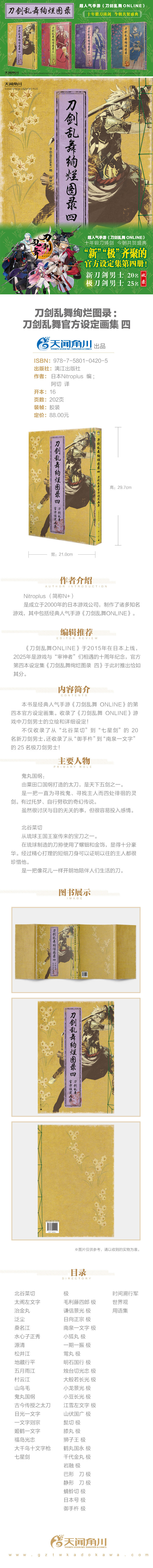 刀剑乱舞绚烂图录 : 刀剑乱舞官方设定画集. 四 ,本书是经典人气手游《刀剑乱舞ONLINE》的第四本官方设定画集。