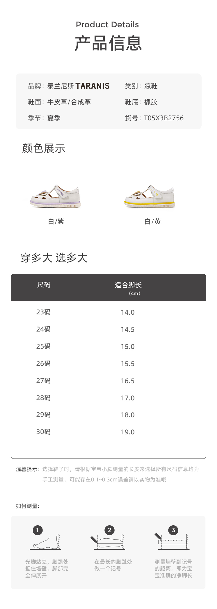 泰兰尼斯夏季小童段舒适透气女童包头凉鞋T05X3B2756
