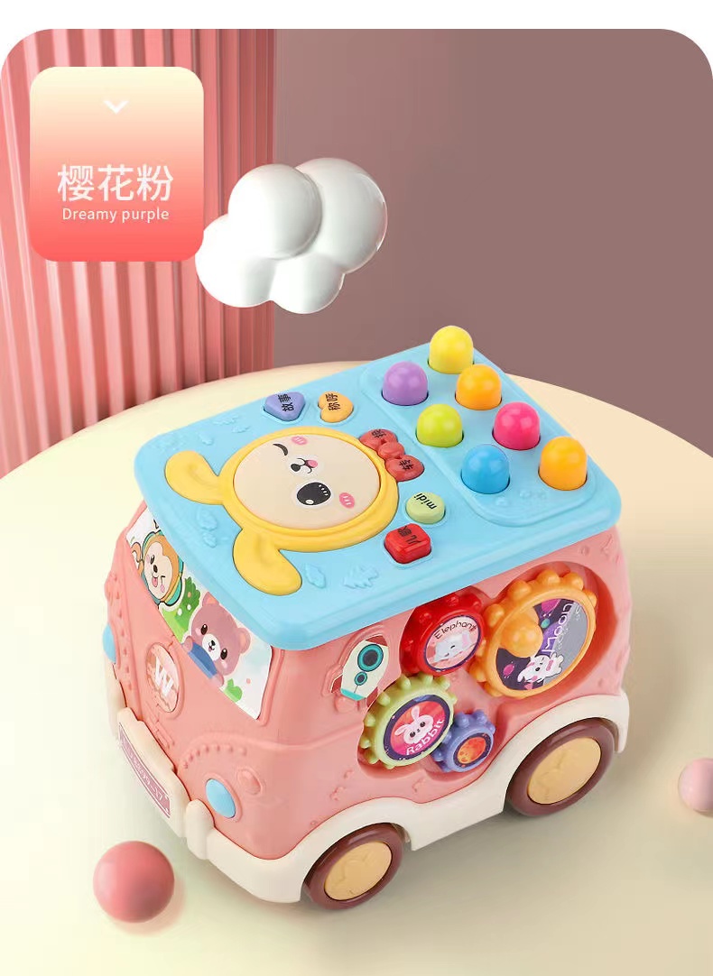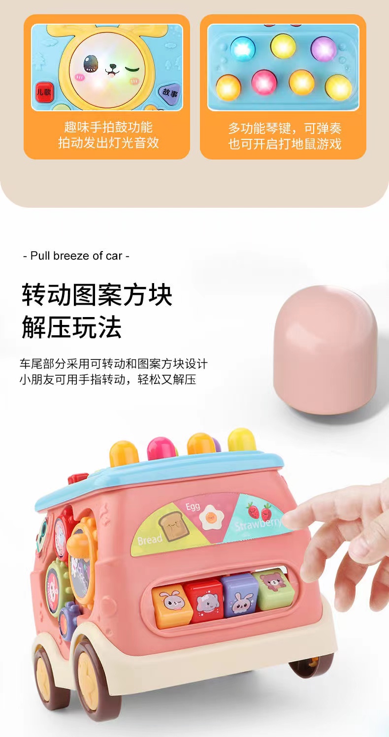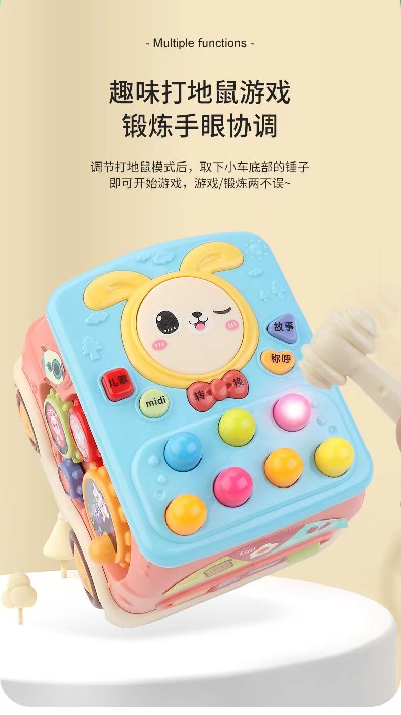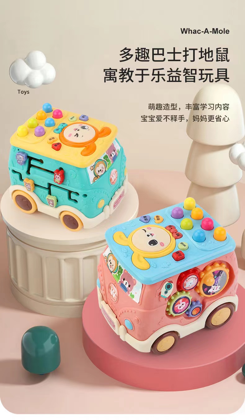 儿童益智早教婴幼儿宝宝玩具巴士车打地鼠多功能手拍鼓六面音乐鼓