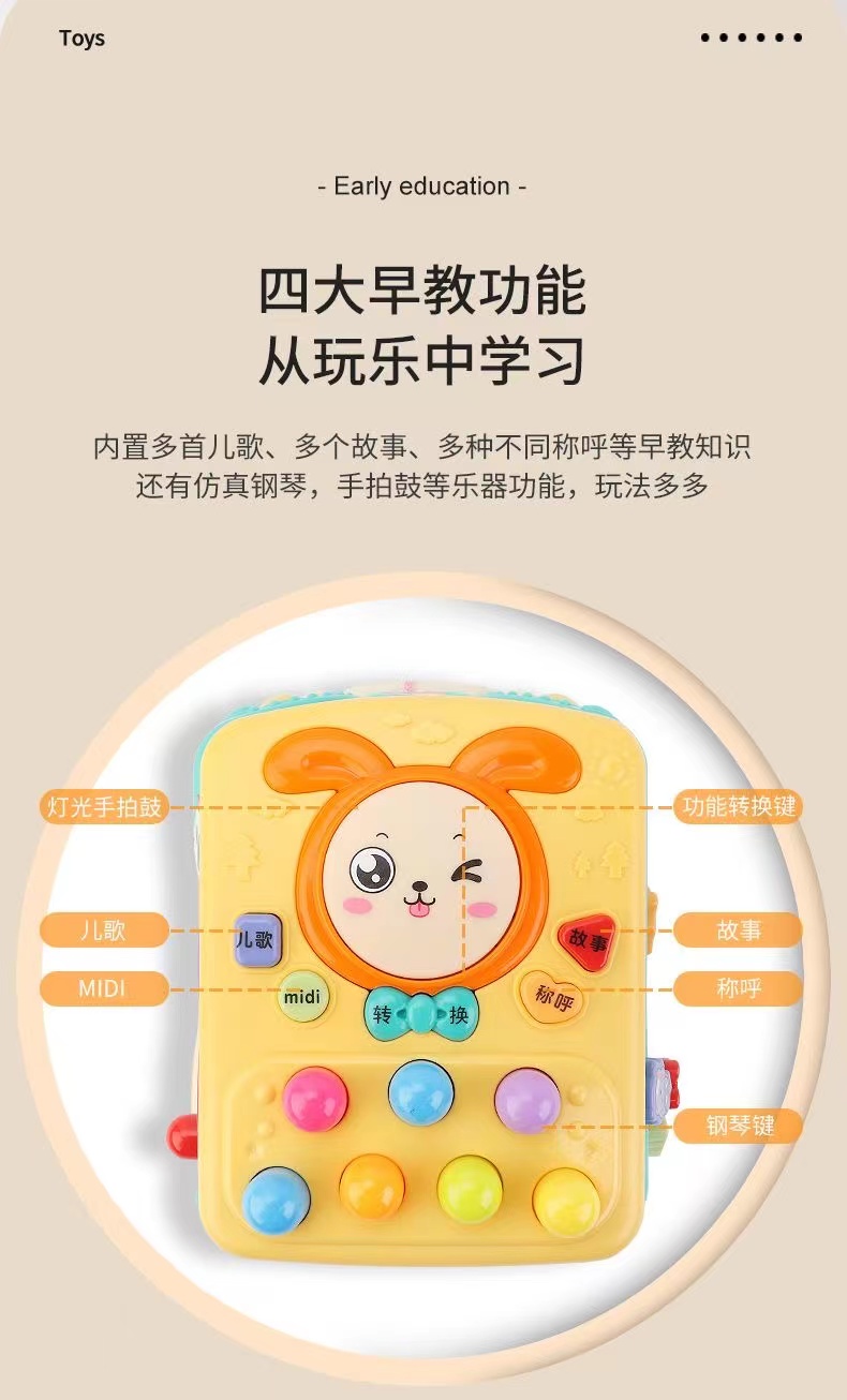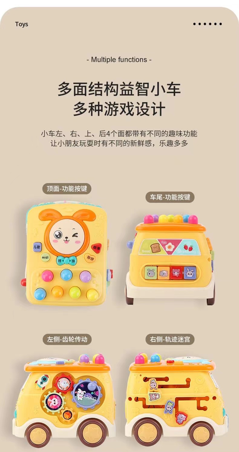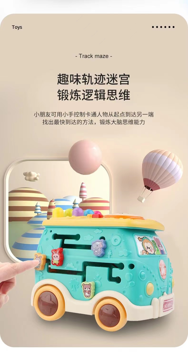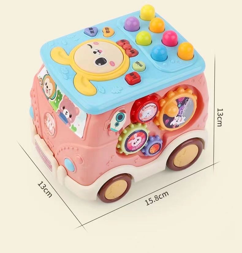 儿童益智早教婴幼儿宝宝玩具巴士车打地鼠多功能手拍鼓六面音乐鼓