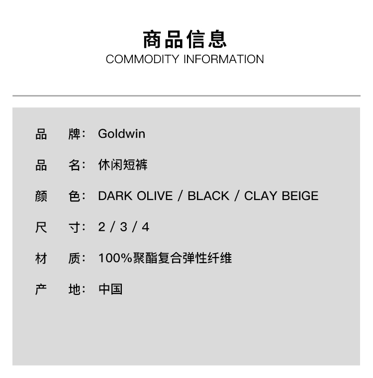 Goldwin One Tuck Light Stretch Shorts 轻量伸缩性防泼水短裤