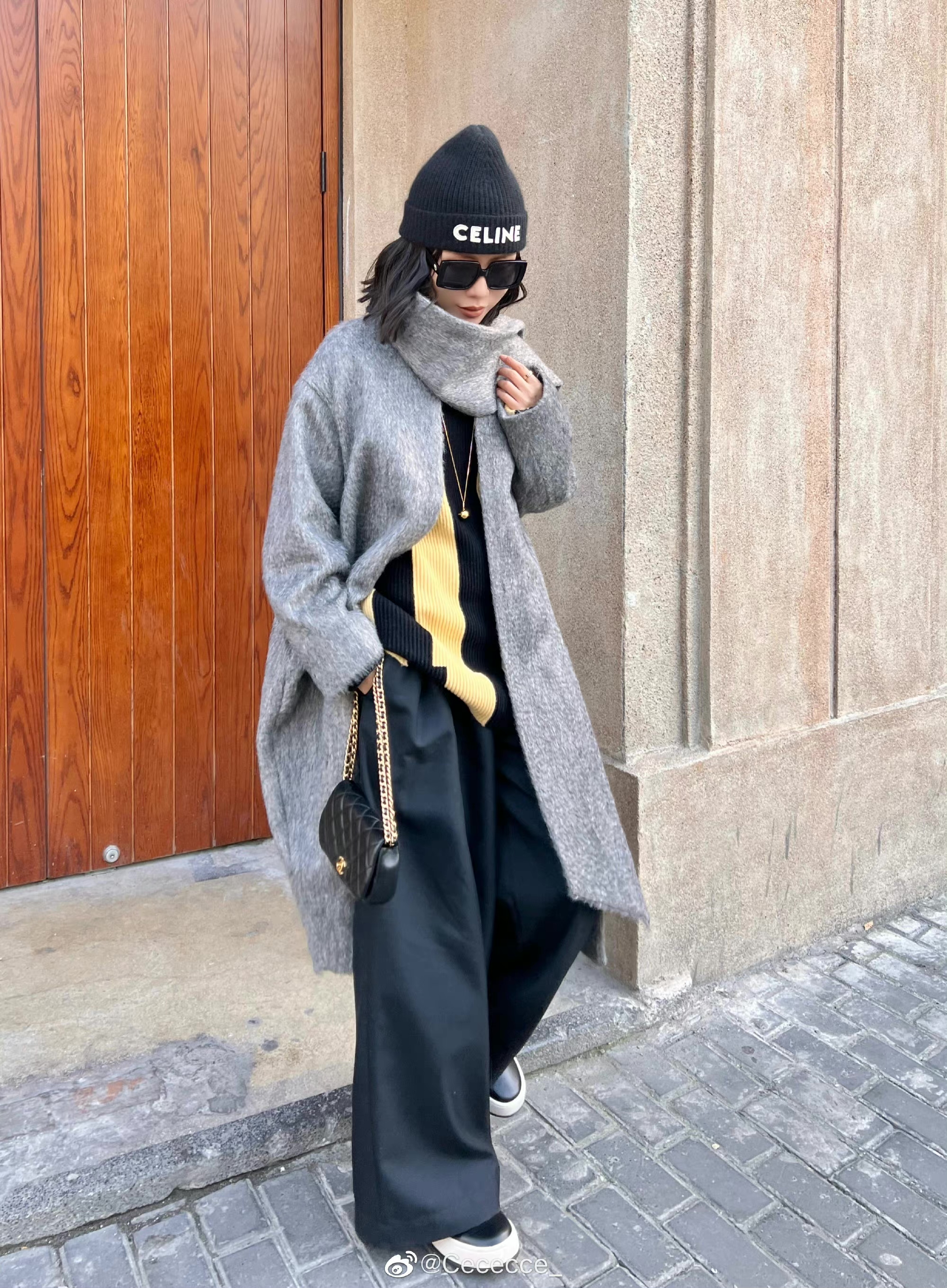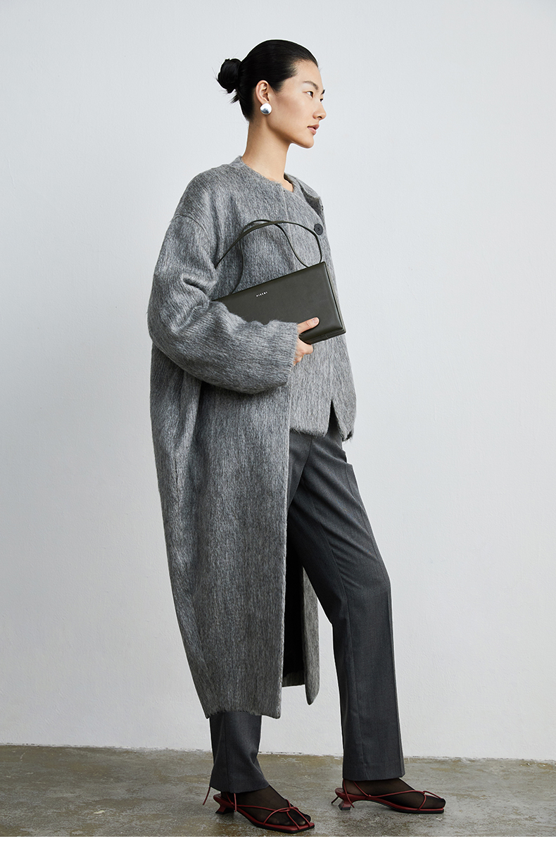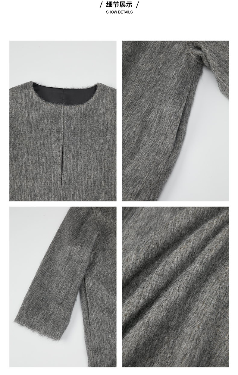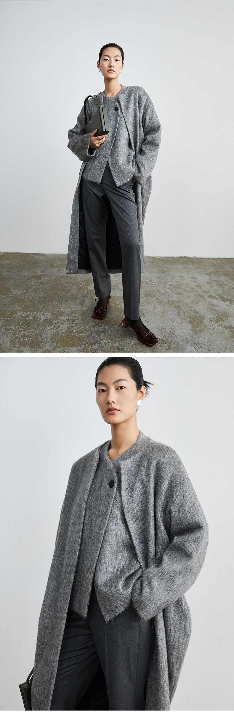 HIDEMI 水墨灰马海毛可拆卸围巾设计感长款茧型两件套大衣