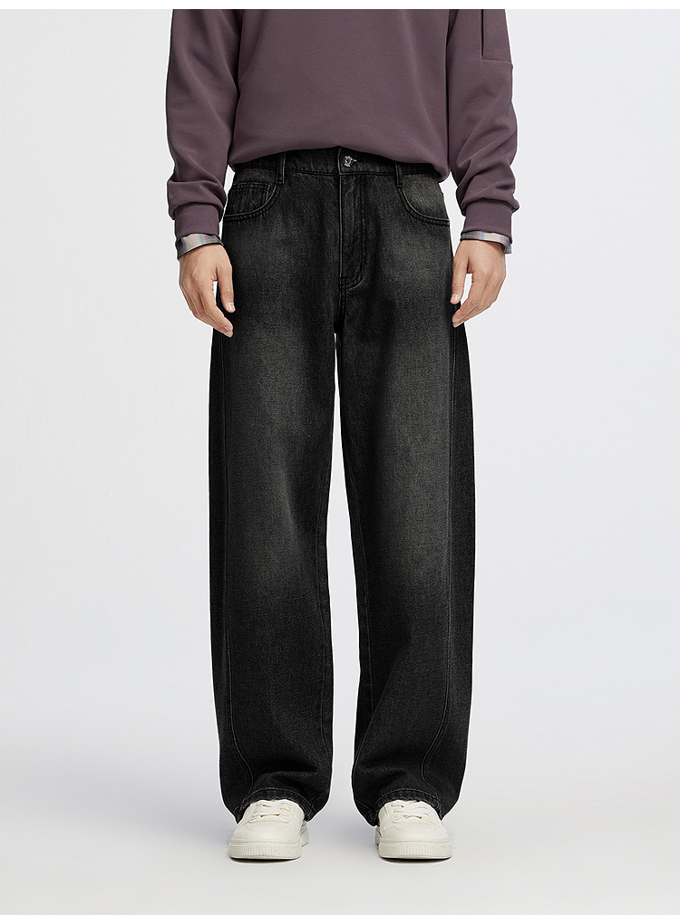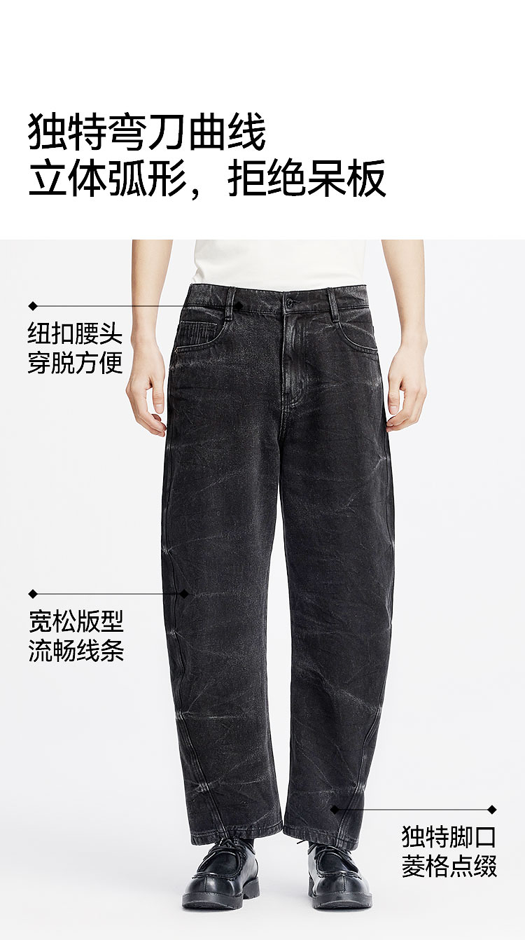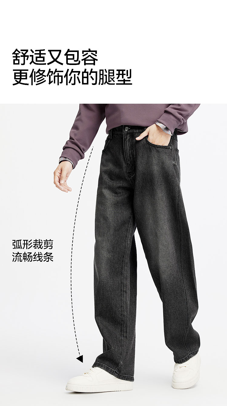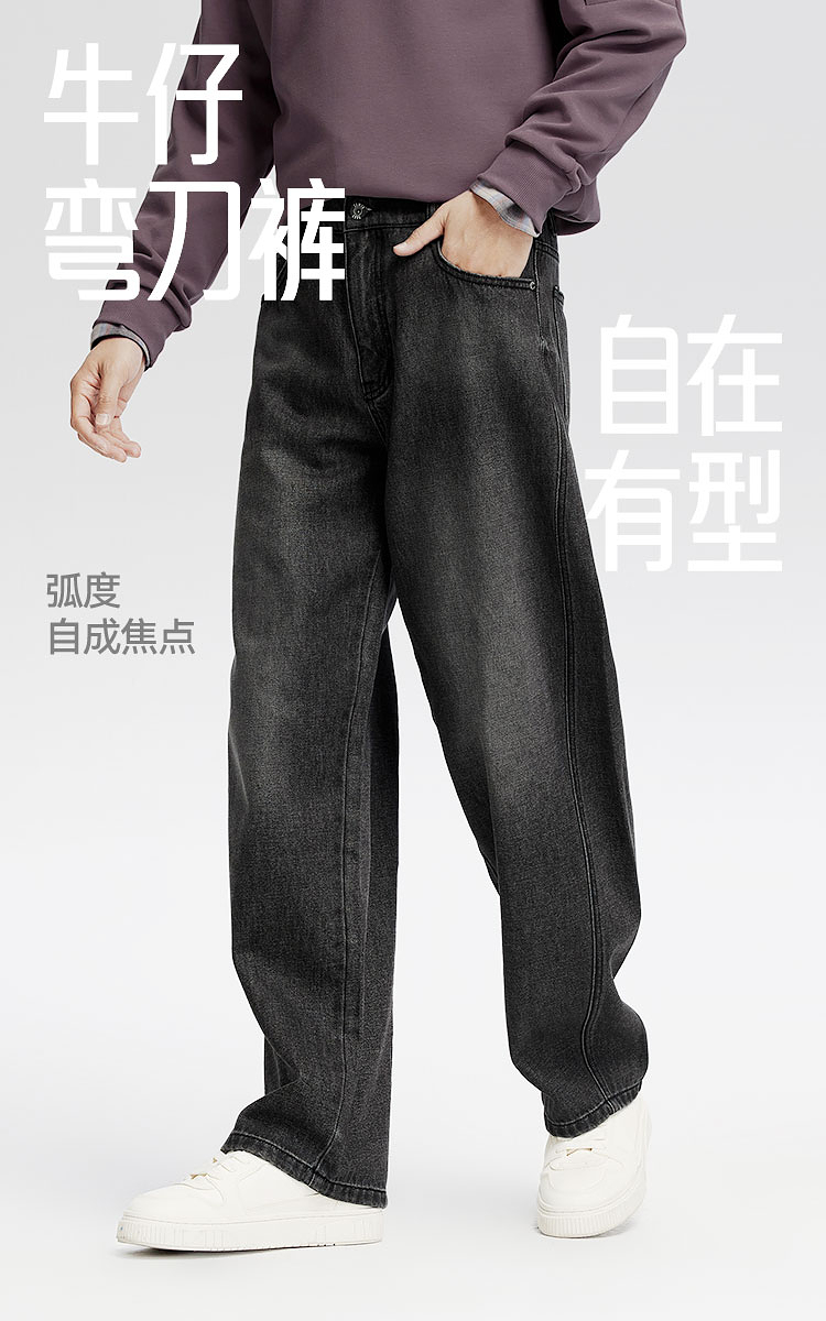 [商场同款]森马牛仔裤男弯刀裤复古时髦2025秋季新款宽松弧形裤子