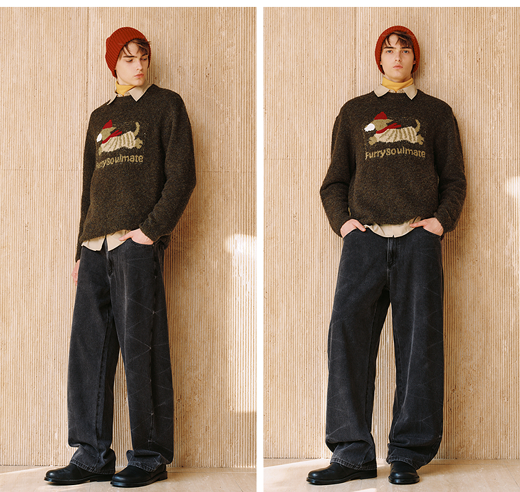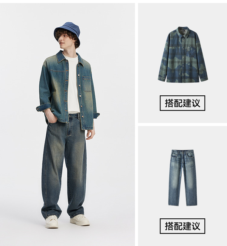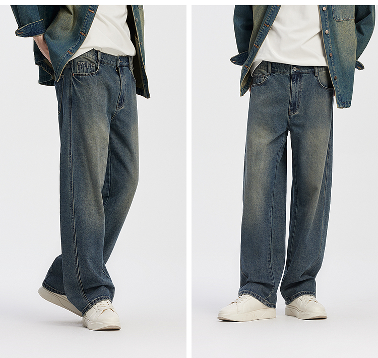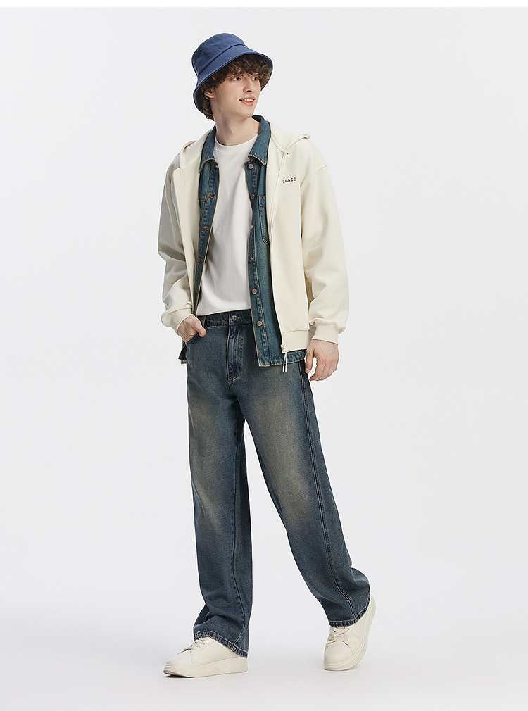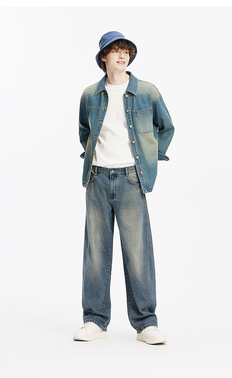 [商场同款]森马牛仔裤男弯刀裤复古时髦2025秋季新款宽松弧形裤子