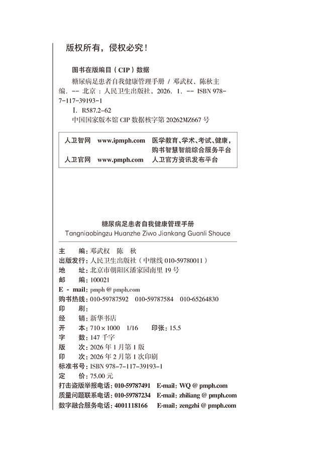 糖尿病足患者自我健康管理手册 邓武权 陈秋 主编 内容包括糖尿病足相关的基础知识、饮食、运动、病情监测方式等 人民卫生出版社
