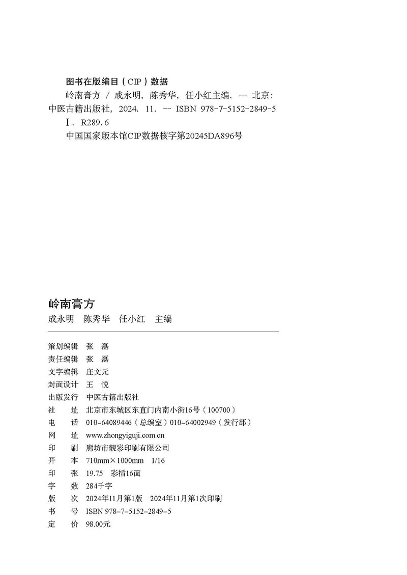 书名:岭南膏方