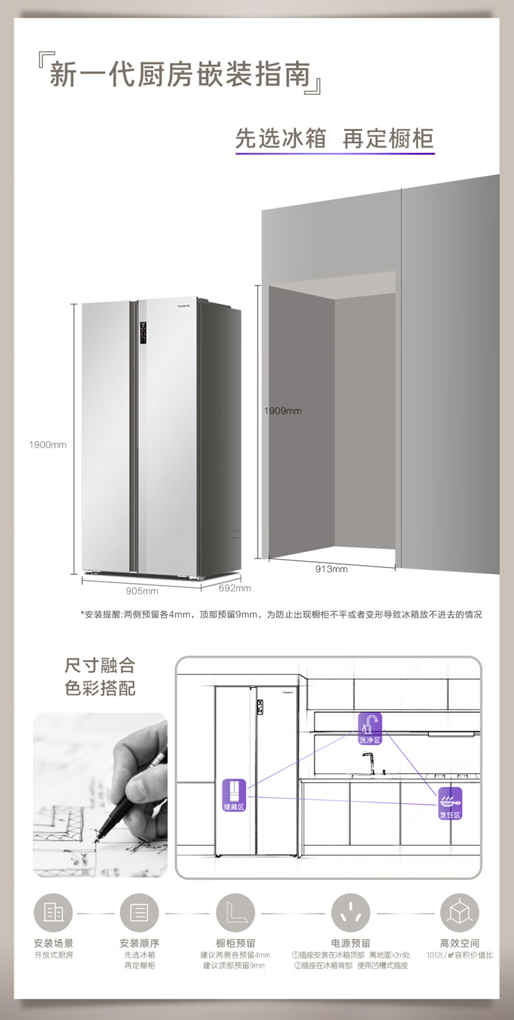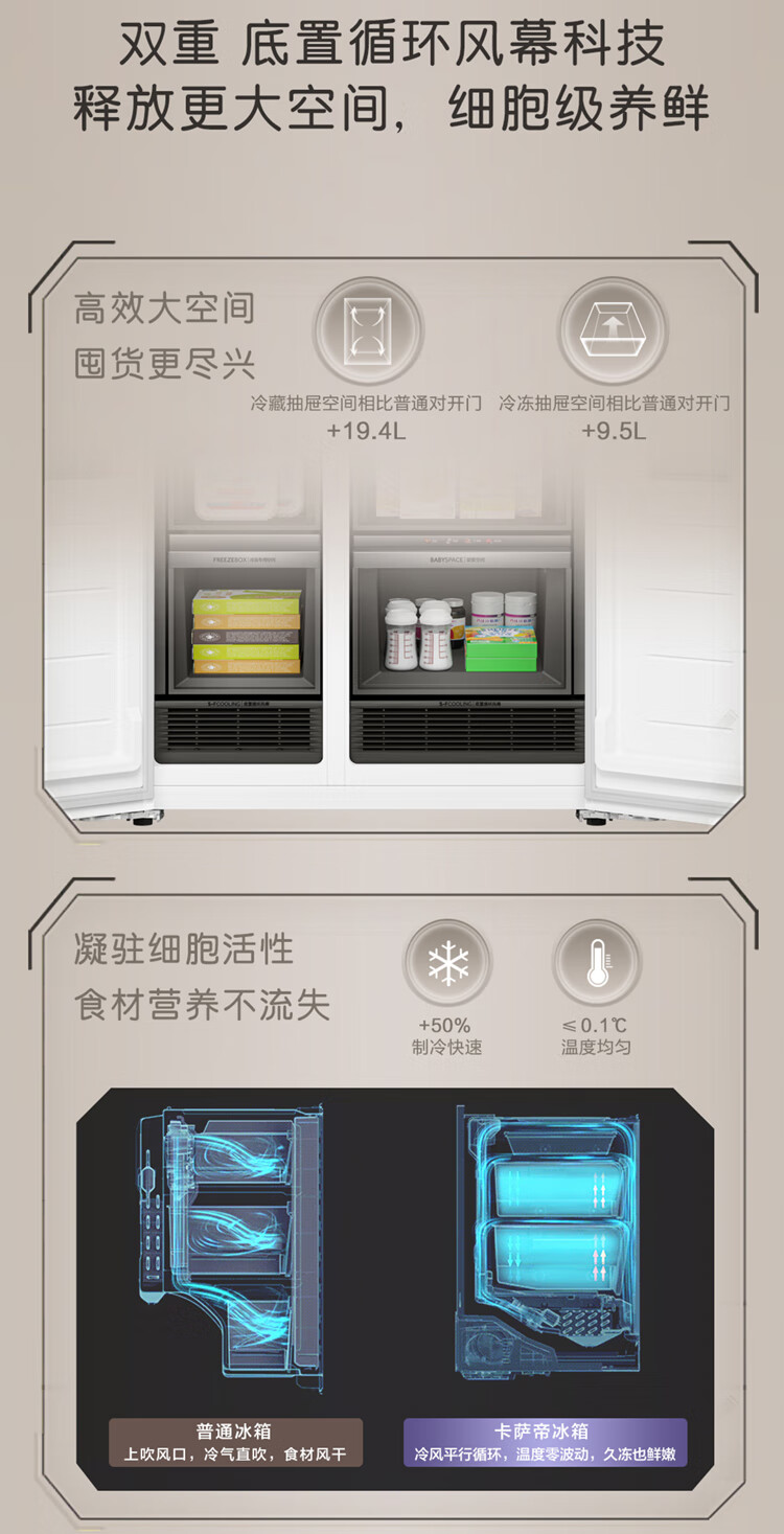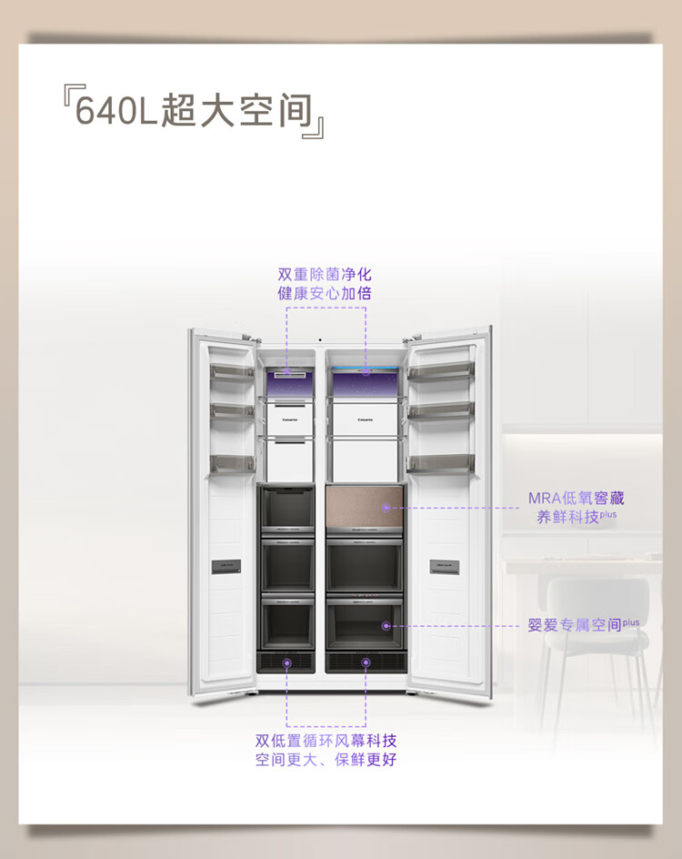 卡萨帝640升大容量对开门双开门家用零距离自由嵌入式冰箱 BCD-640WGCSSM7SSU1