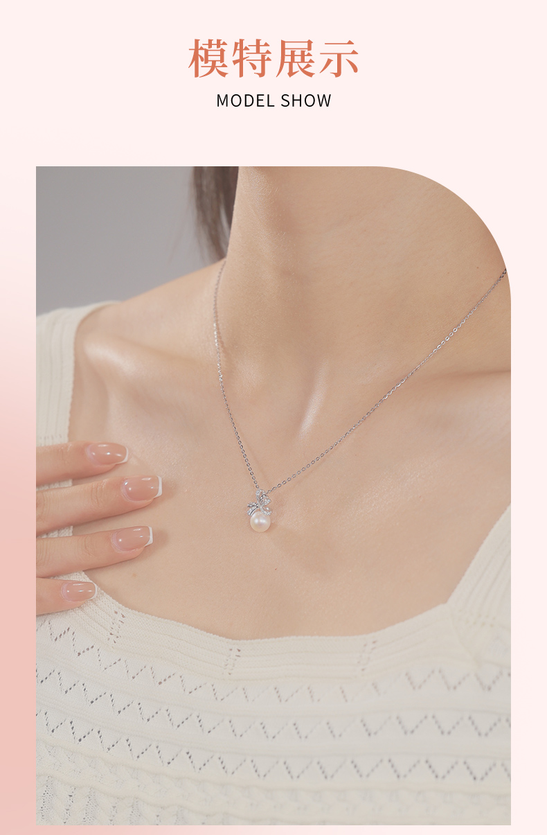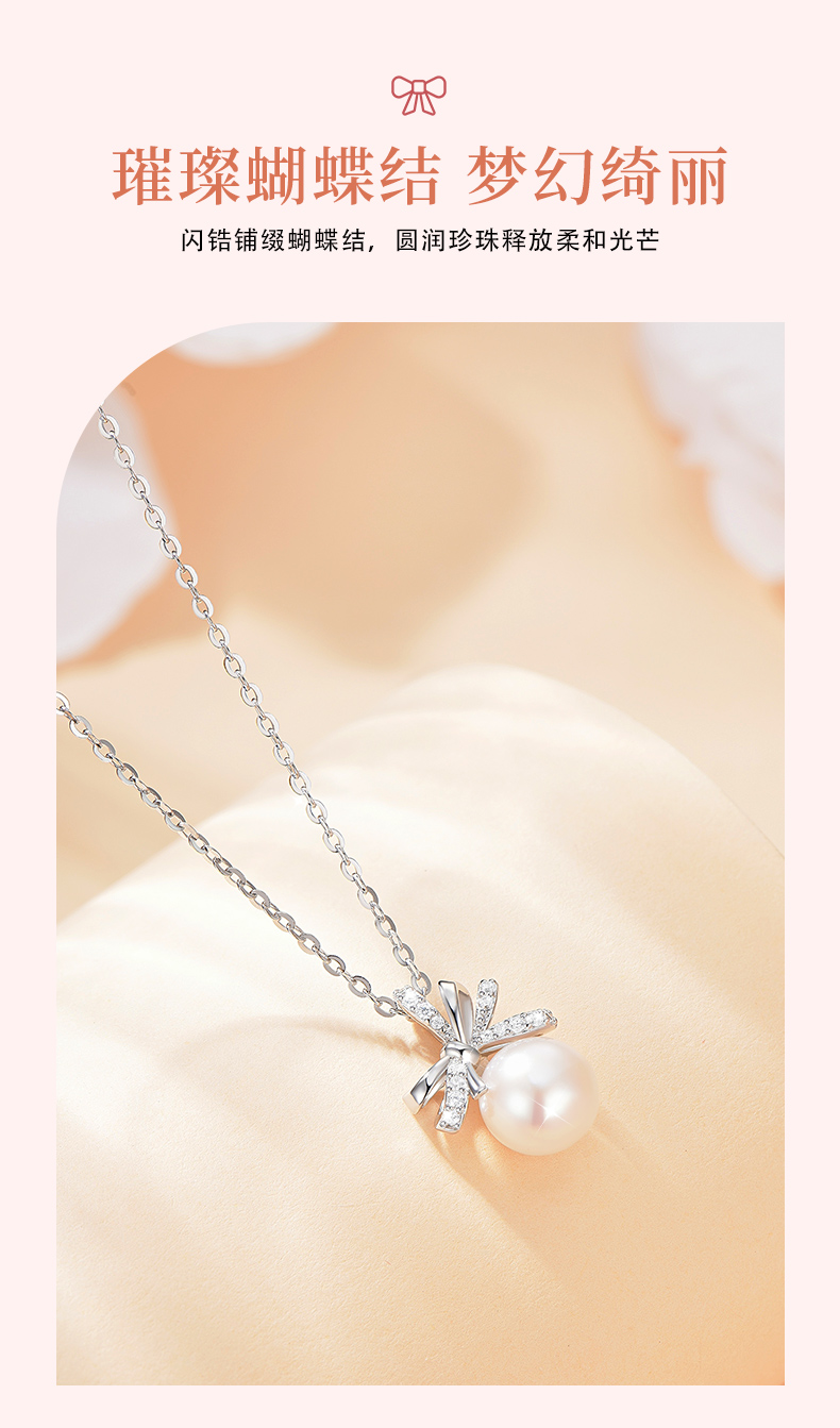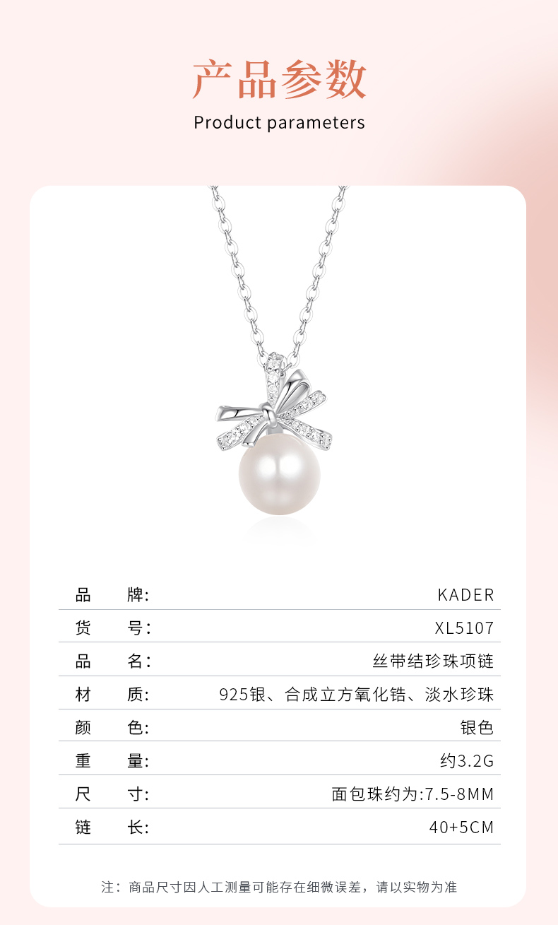 卡蒂罗KADER 在逃公主系列 丝带结项链 甜美蝴蝶结设计法式复古赫本风可调节锁骨链 温柔气质高级感 925银 珍珠 项链 女款