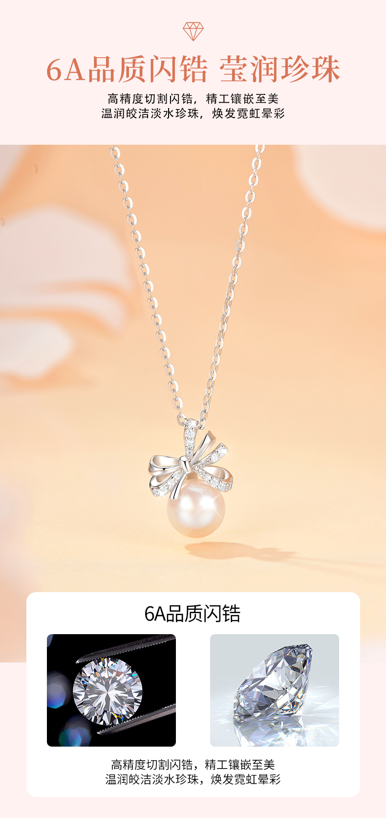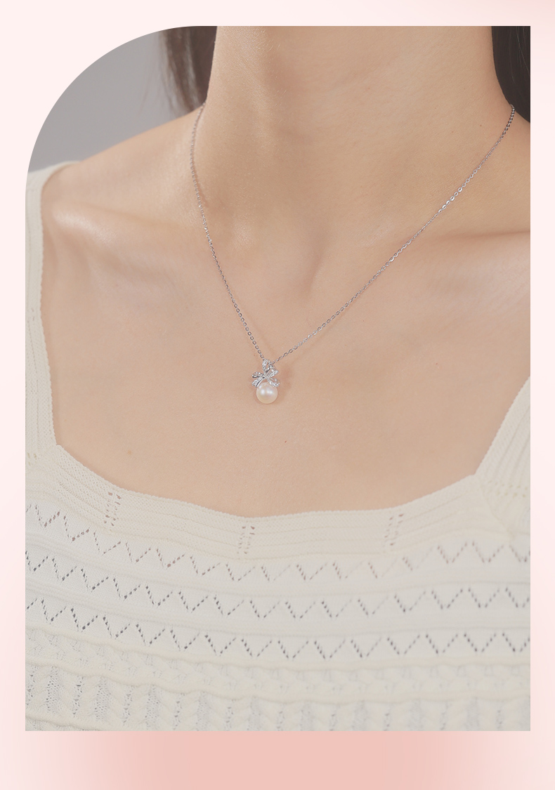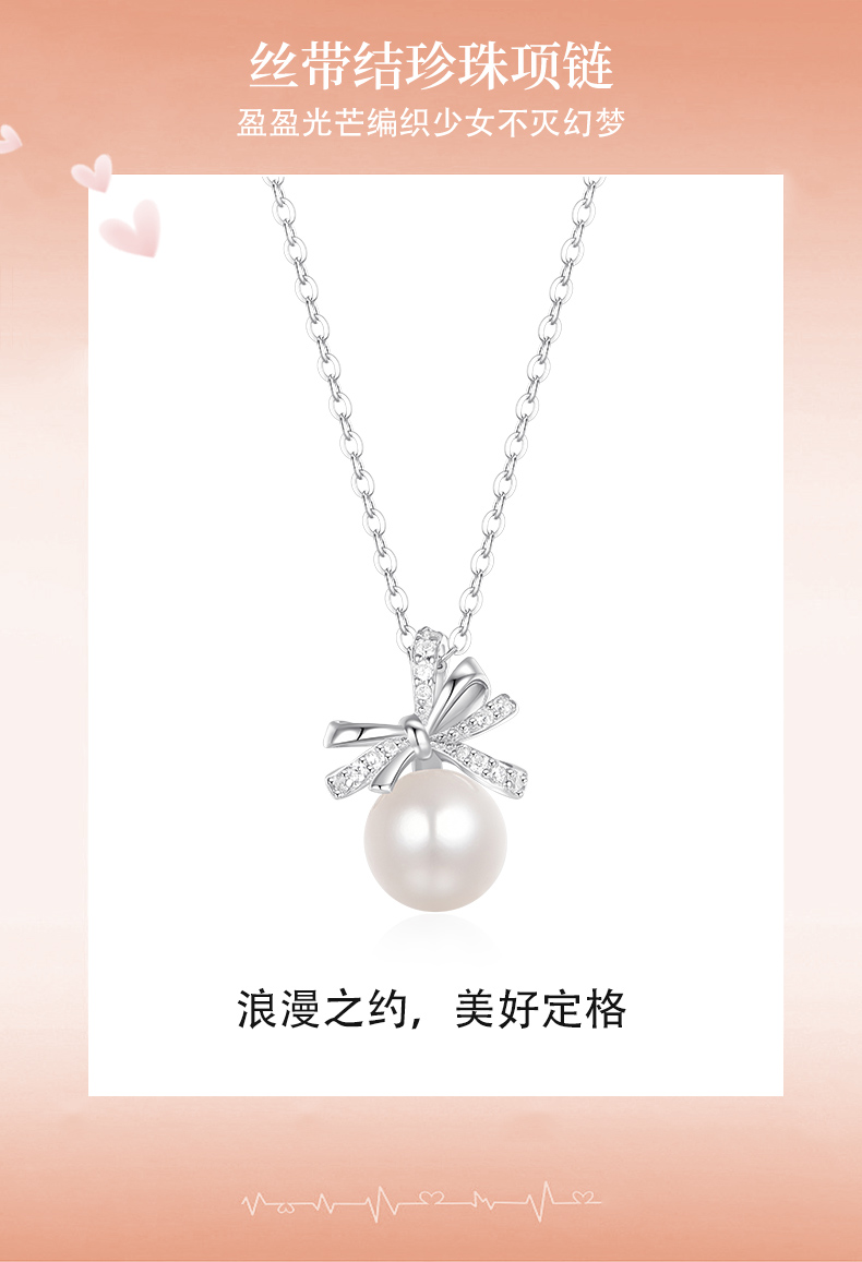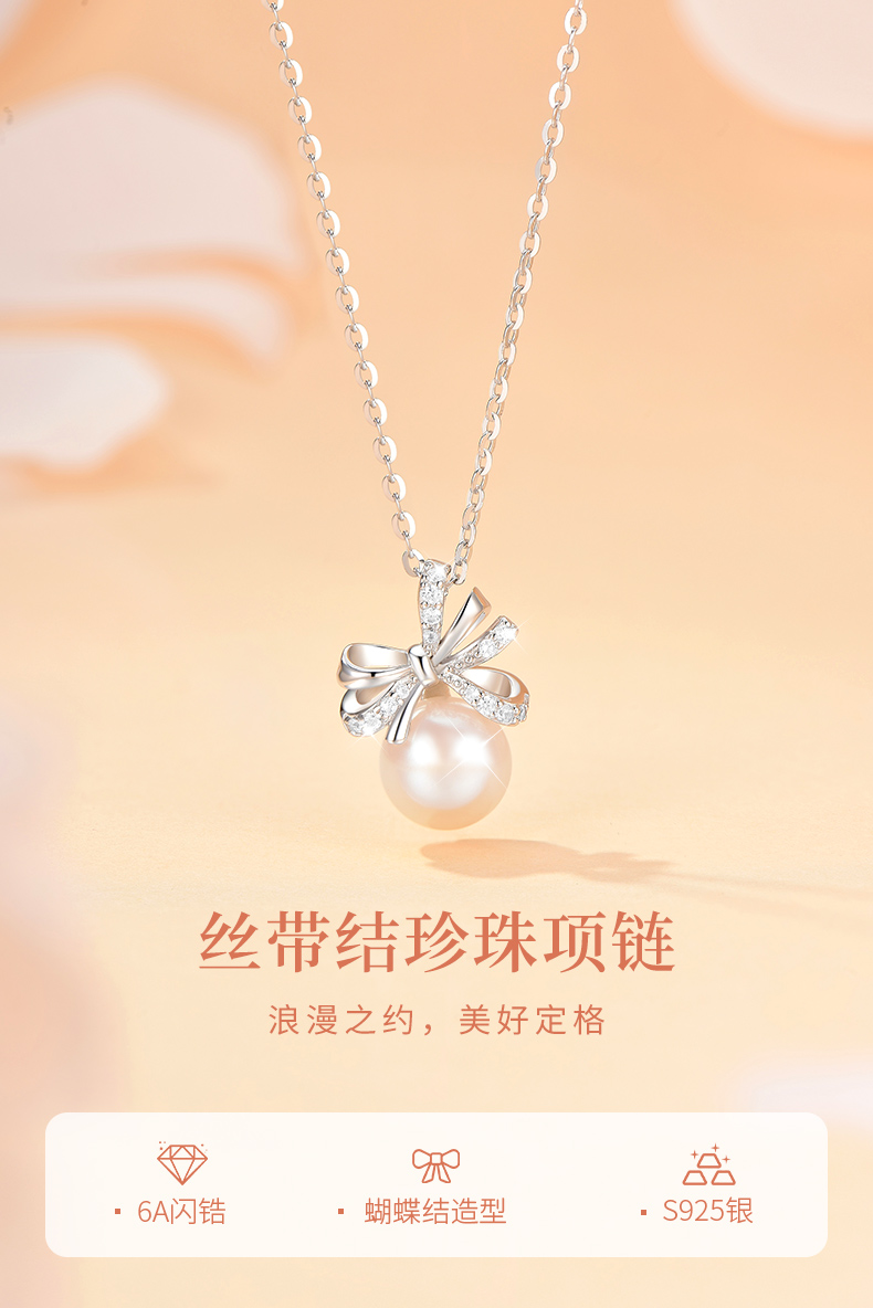 卡蒂罗KADER 在逃公主系列 丝带结项链 甜美蝴蝶结设计法式复古赫本风可调节锁骨链 温柔气质高级感 925银 珍珠 项链 女款