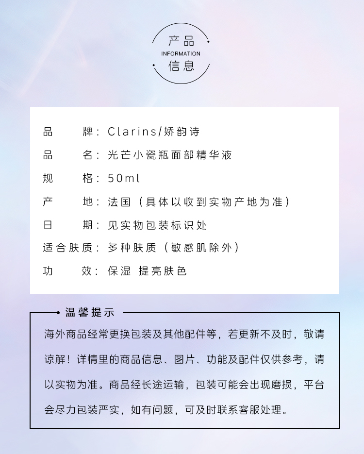 娇韵诗 新款光芒小瓷瓶 CLARINS 透亮焕白淡斑精华液 【CDF】