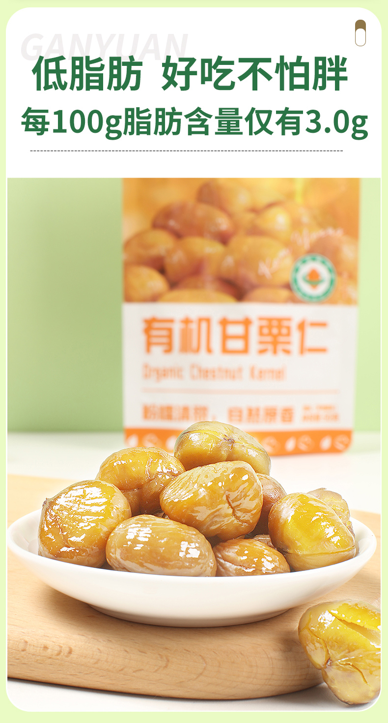 加0.1元送同款产品一包,配料表只有板栗仁,甘源有机板栗仁,粉糯清甜,自然原香,一口一个根本停不下来