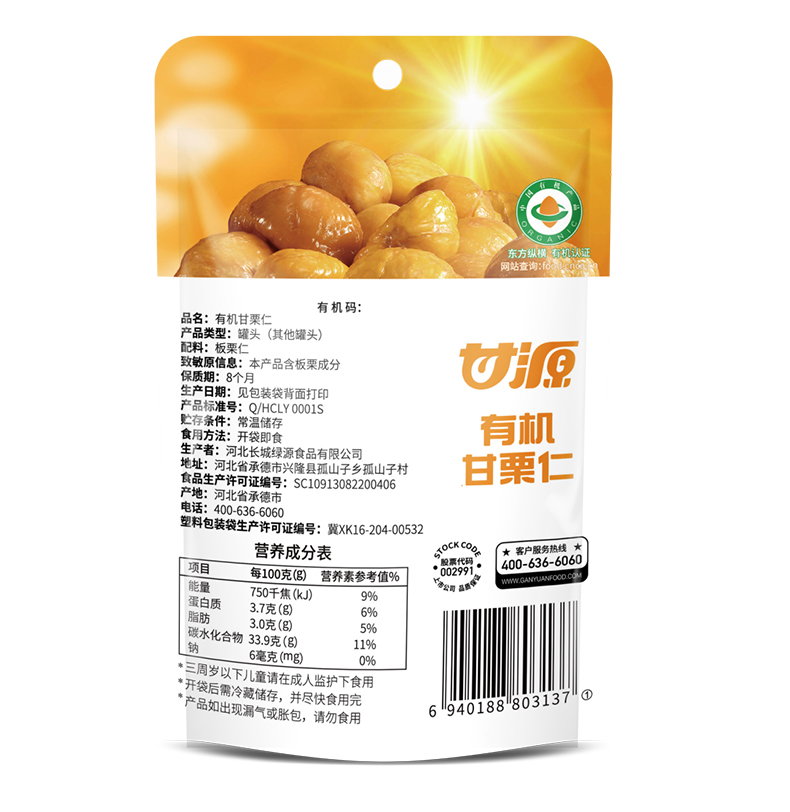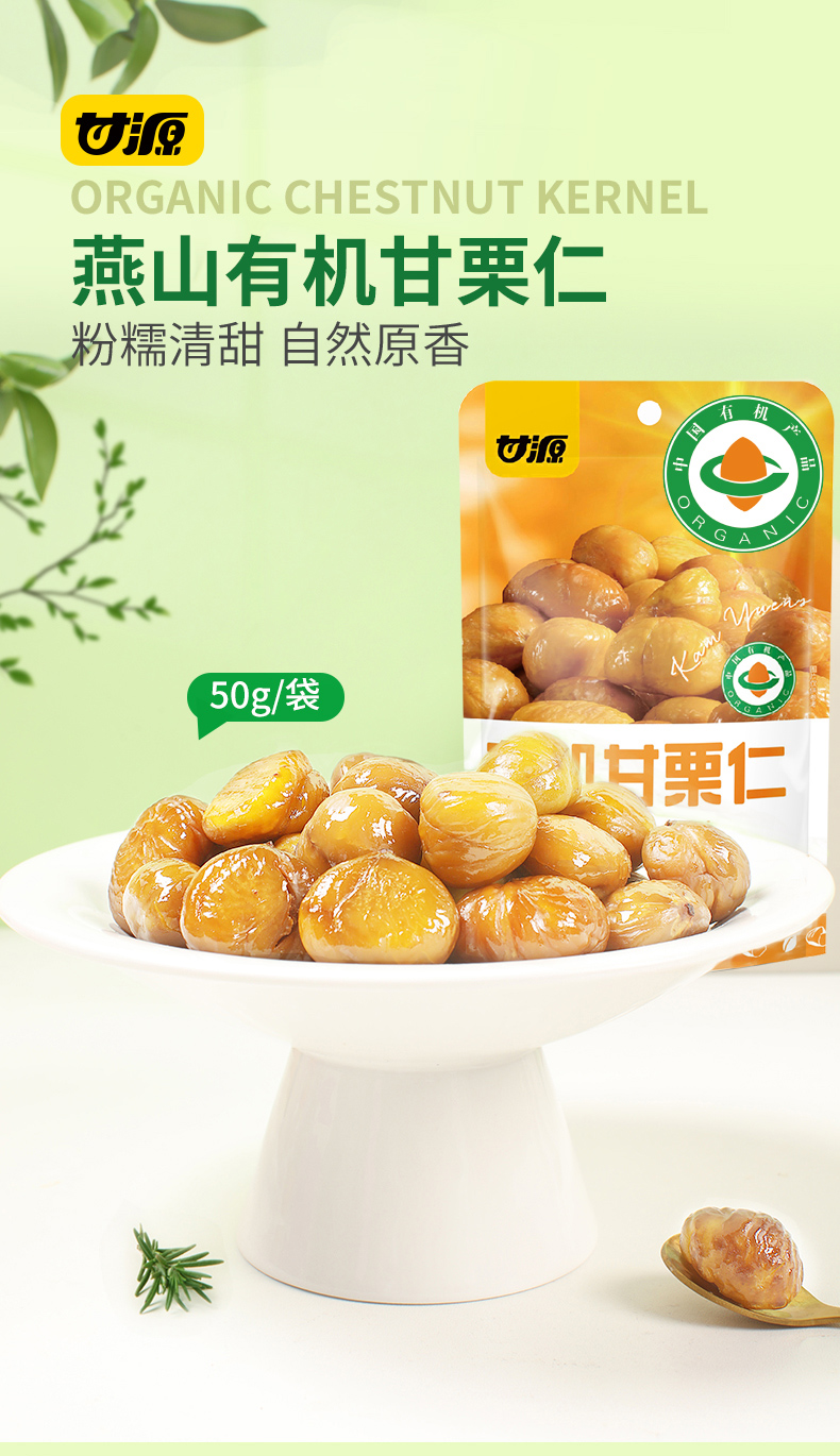 选用有机板栗,天然有机绿色食品,完成产品有机认证