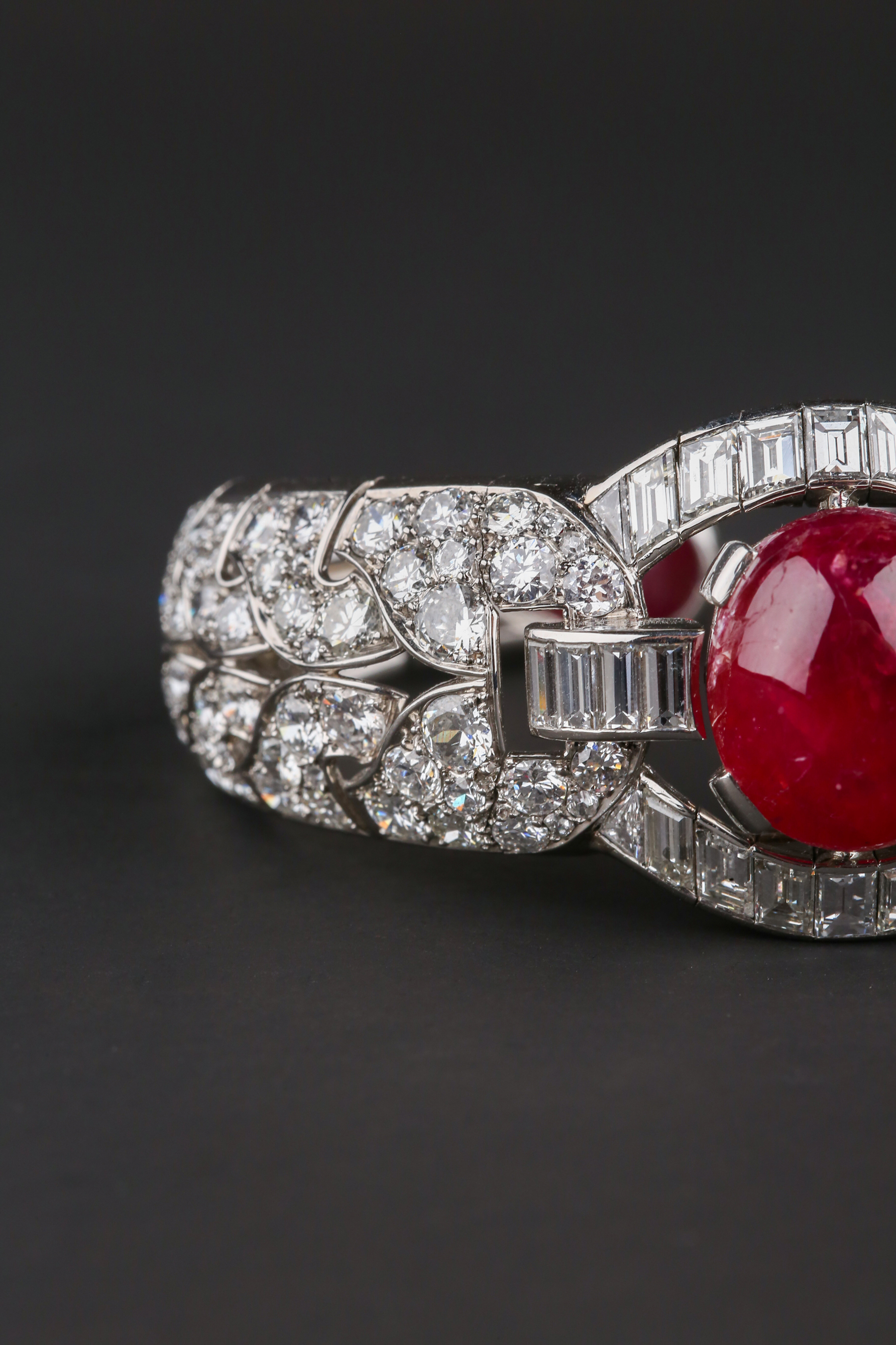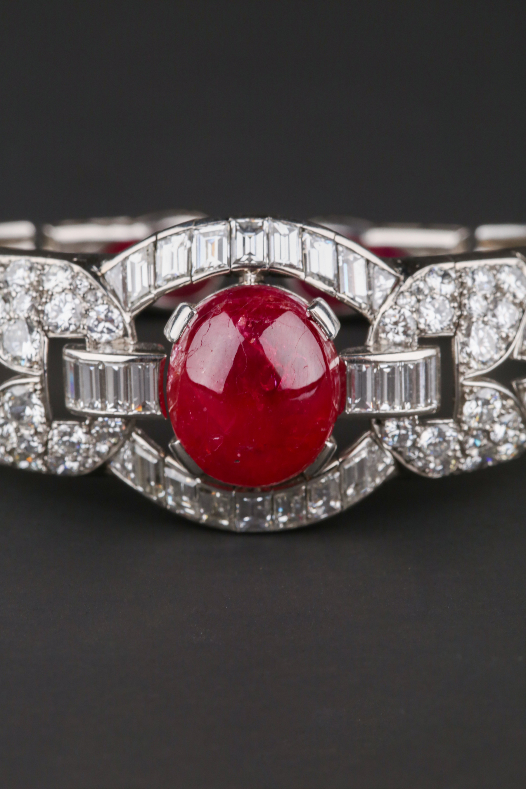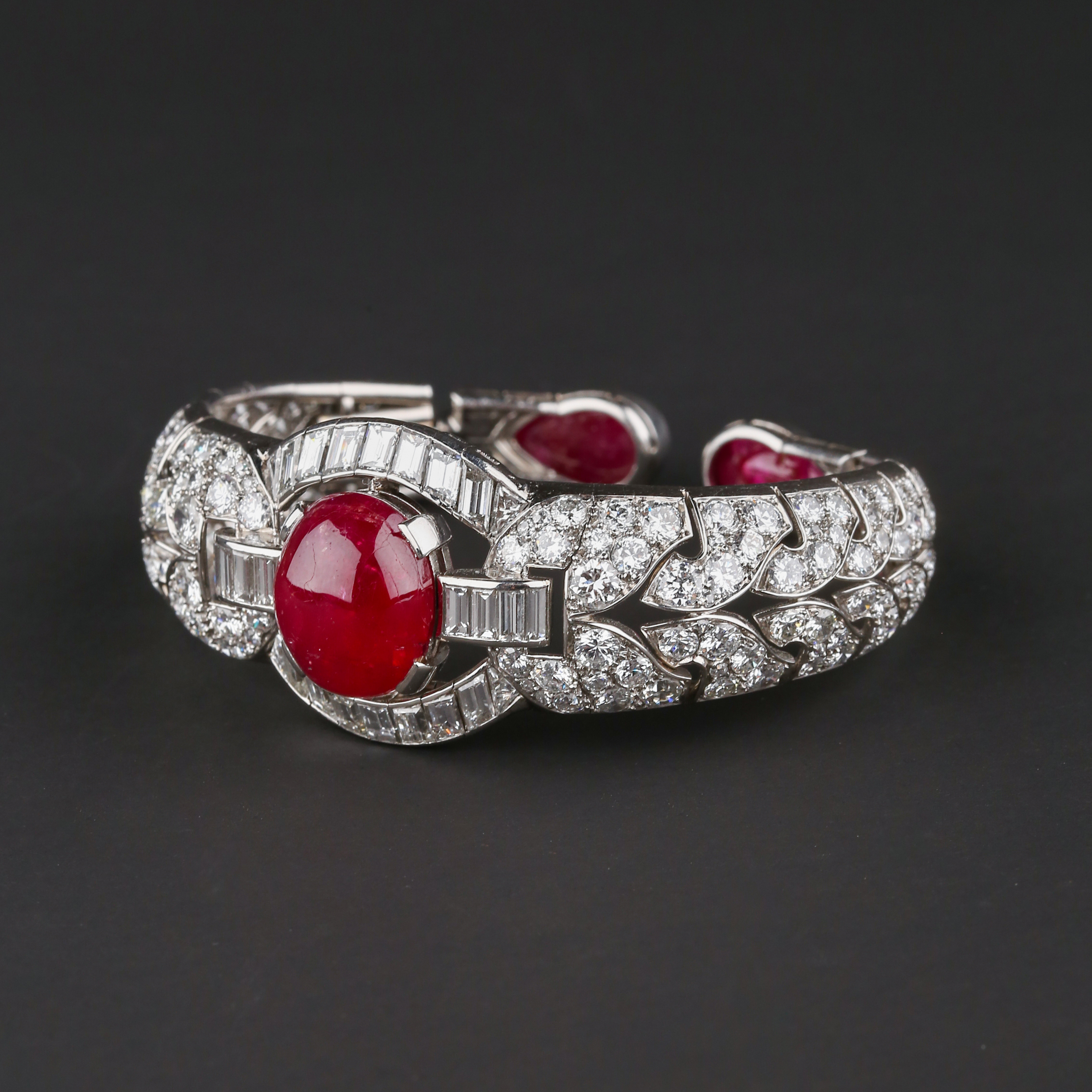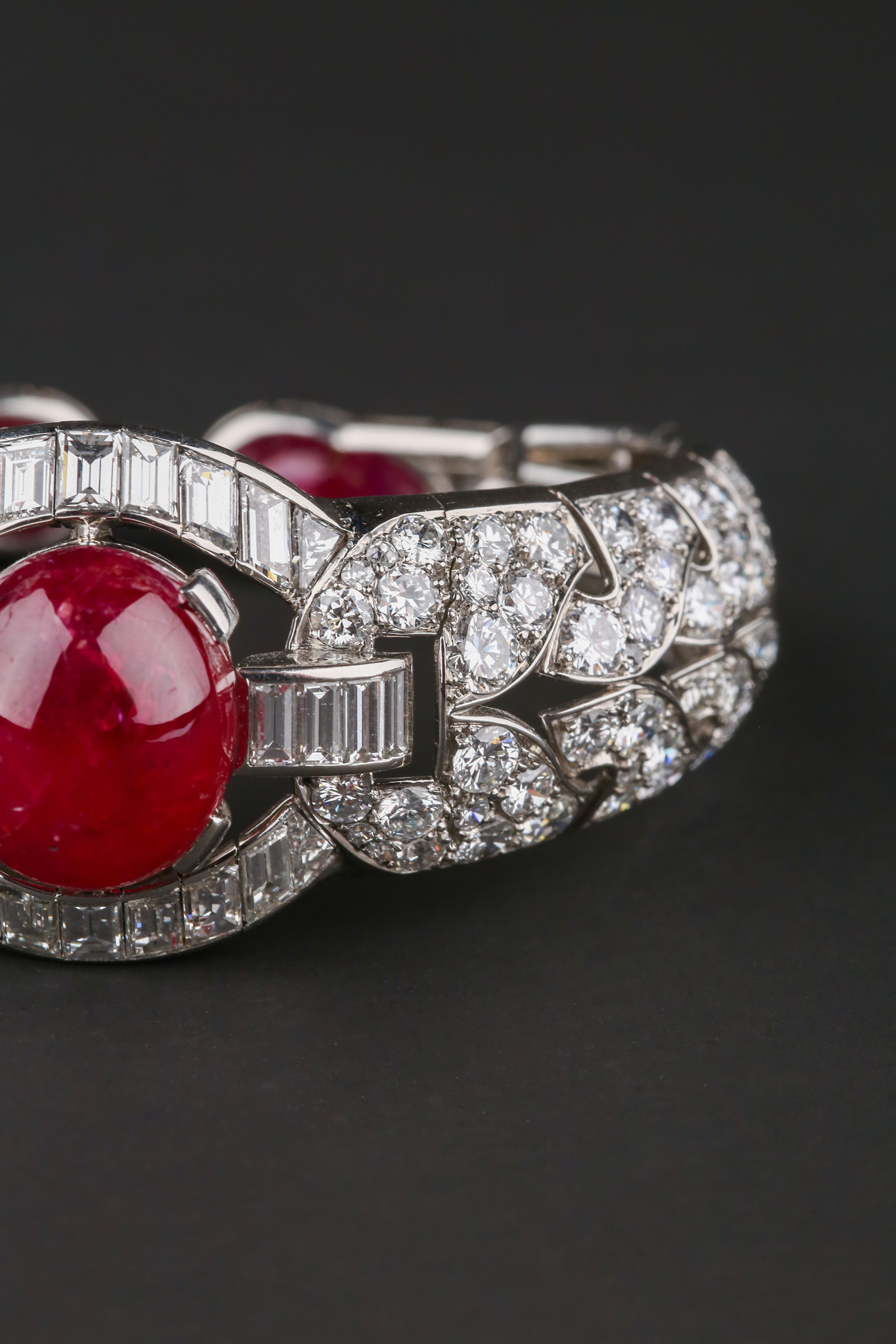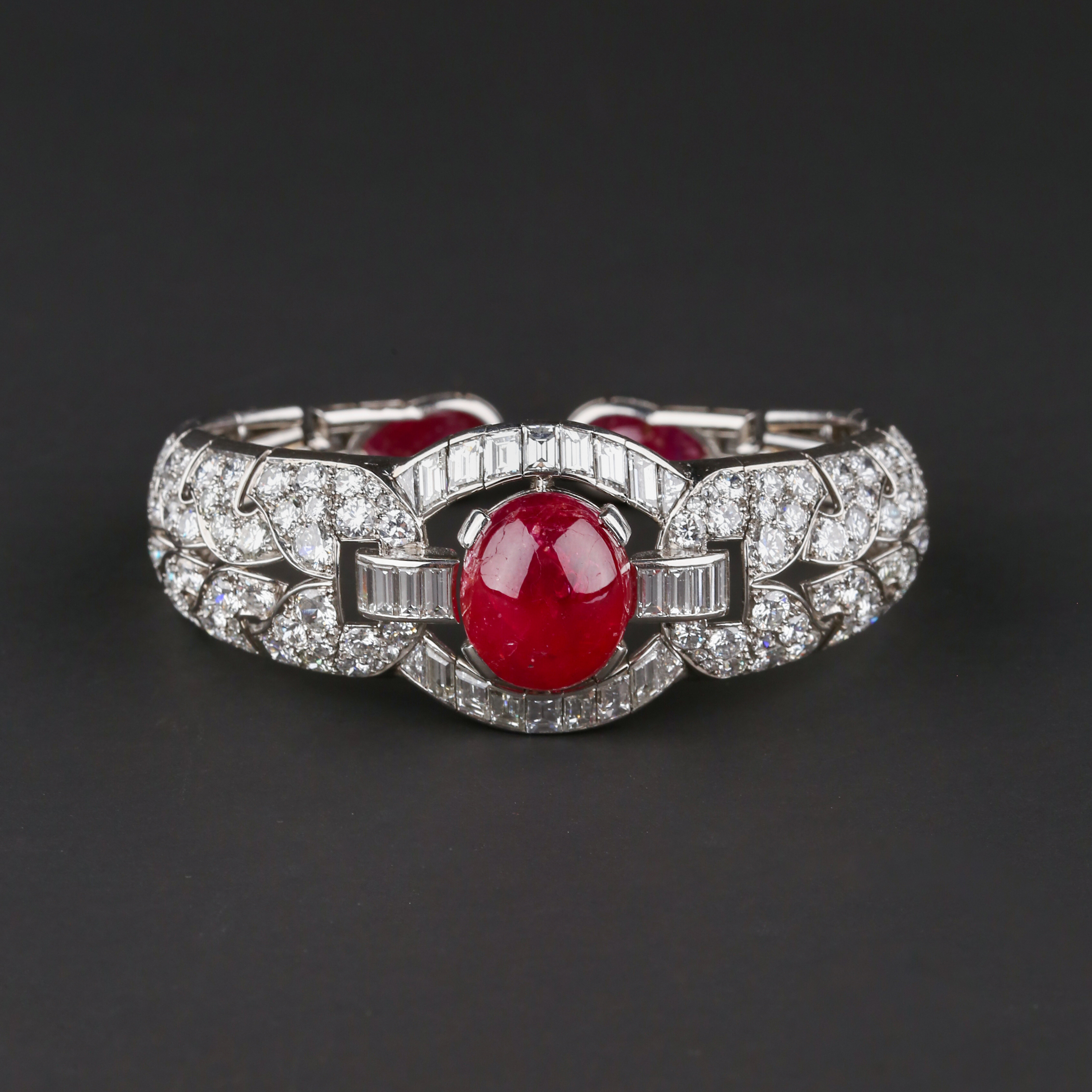 独角鹿西洋古董首饰珠宝1930年代欧洲铂金镶嵌红宝石手镯手链手饰