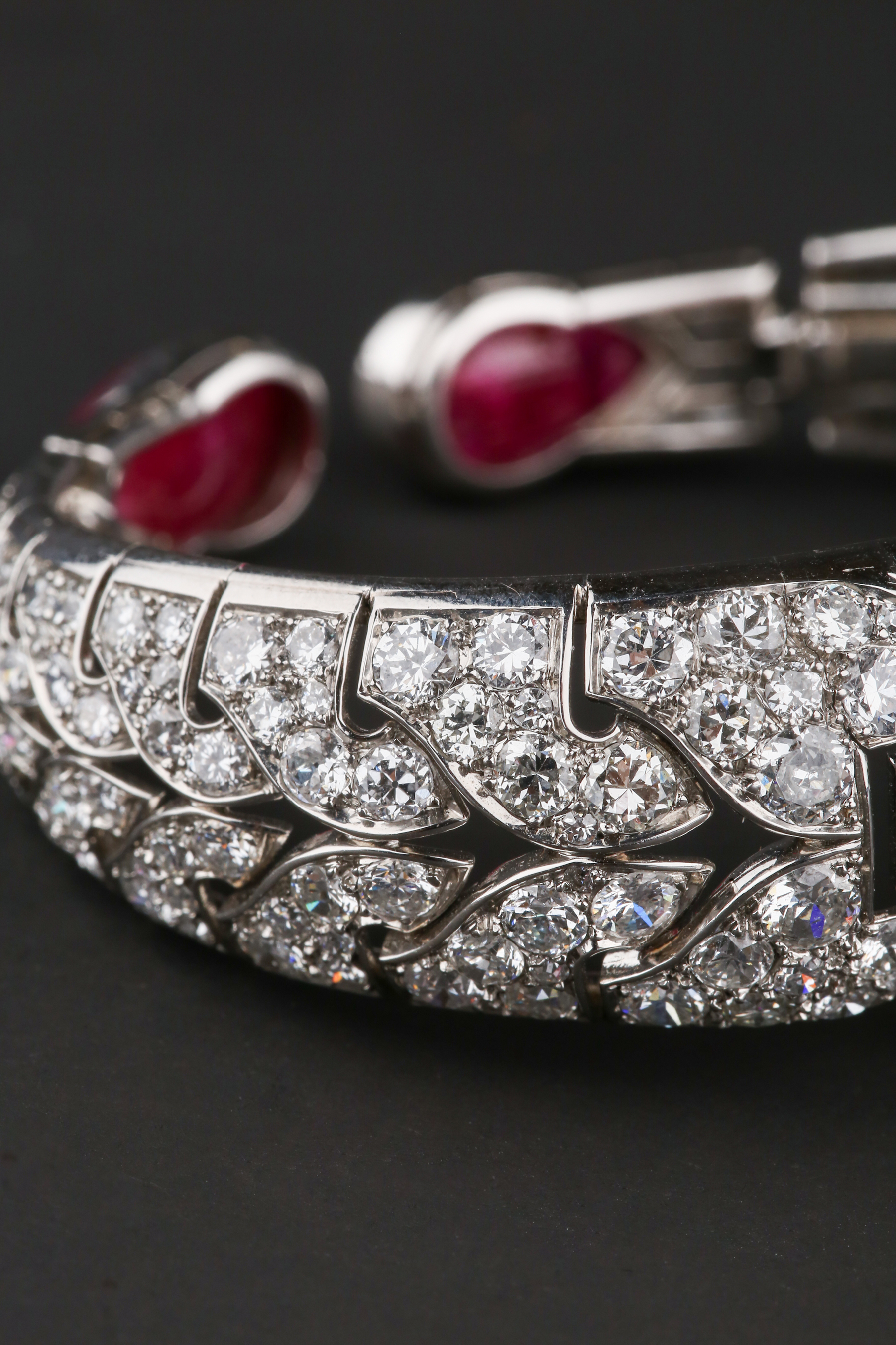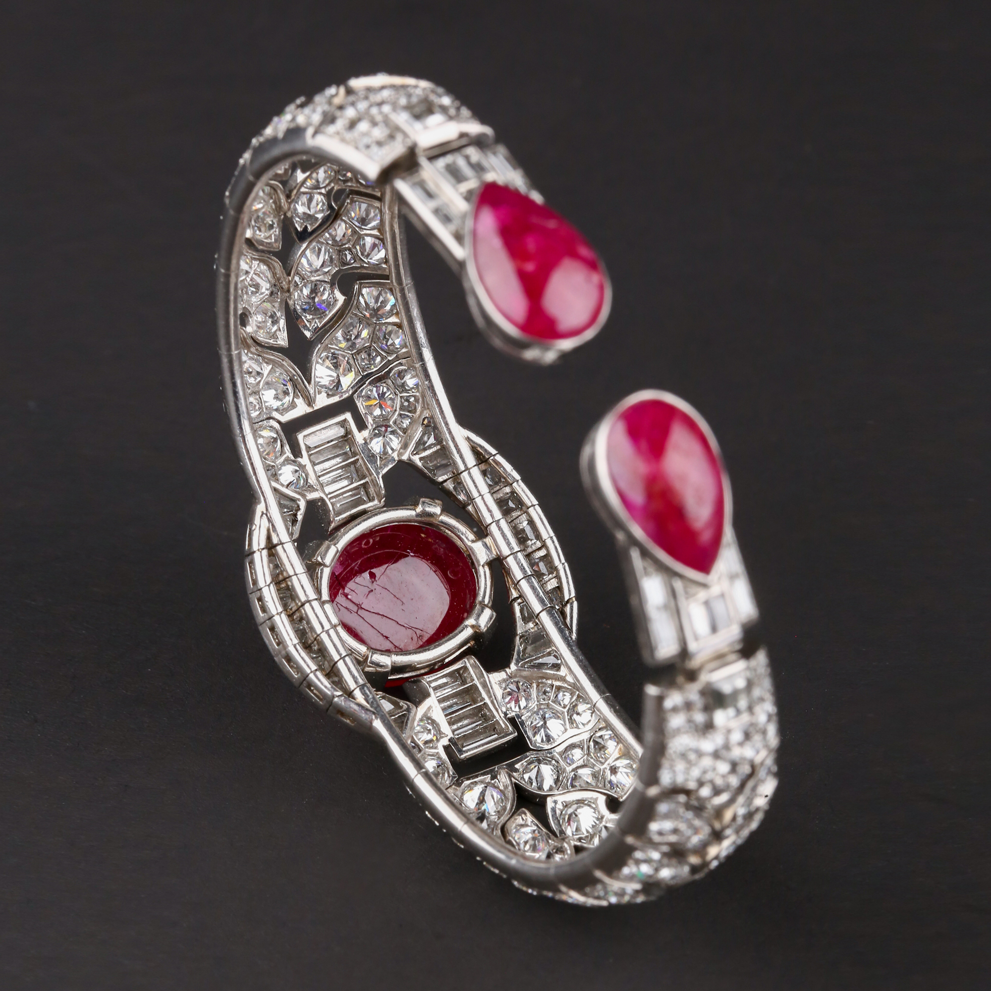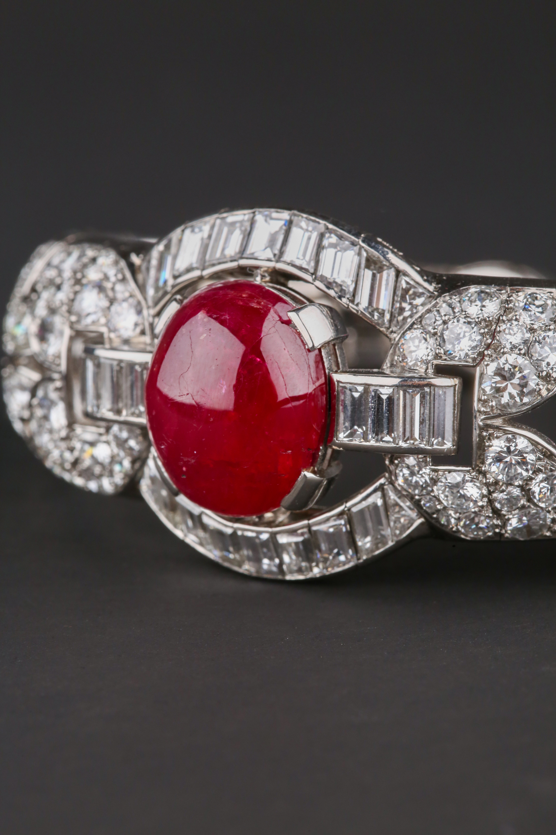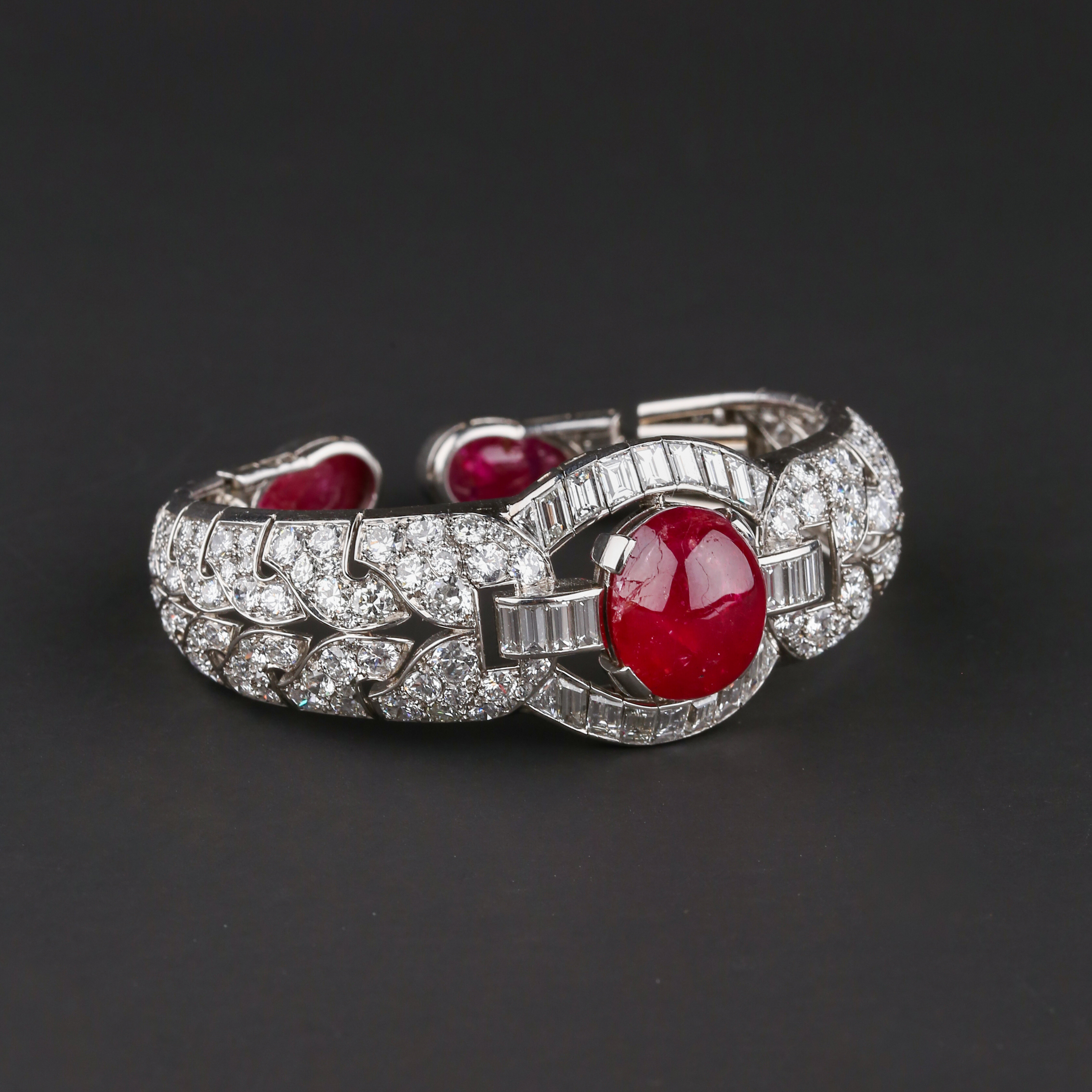 独角鹿西洋古董首饰珠宝1930年代欧洲铂金镶嵌红宝石手镯手链手饰