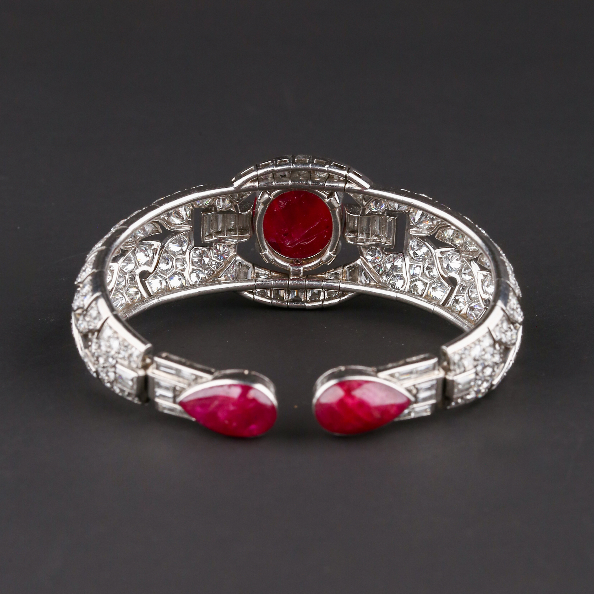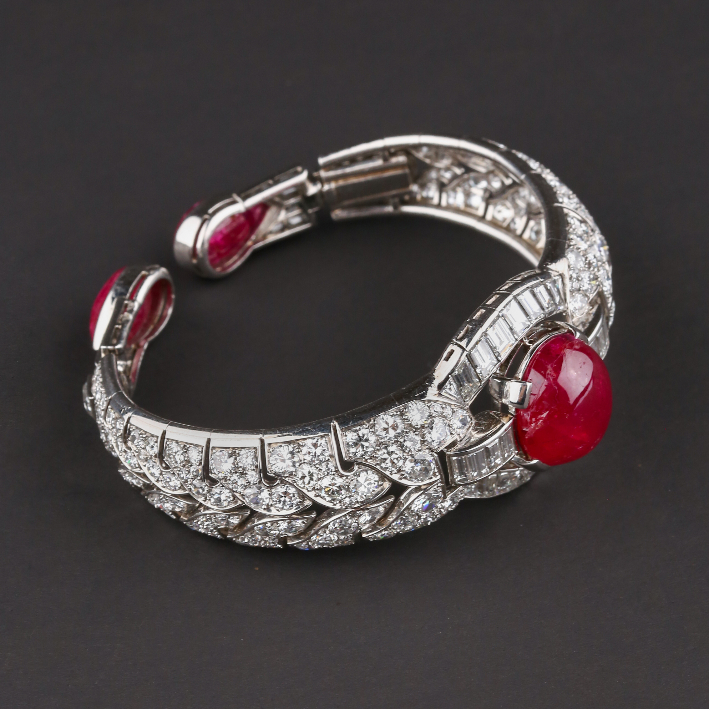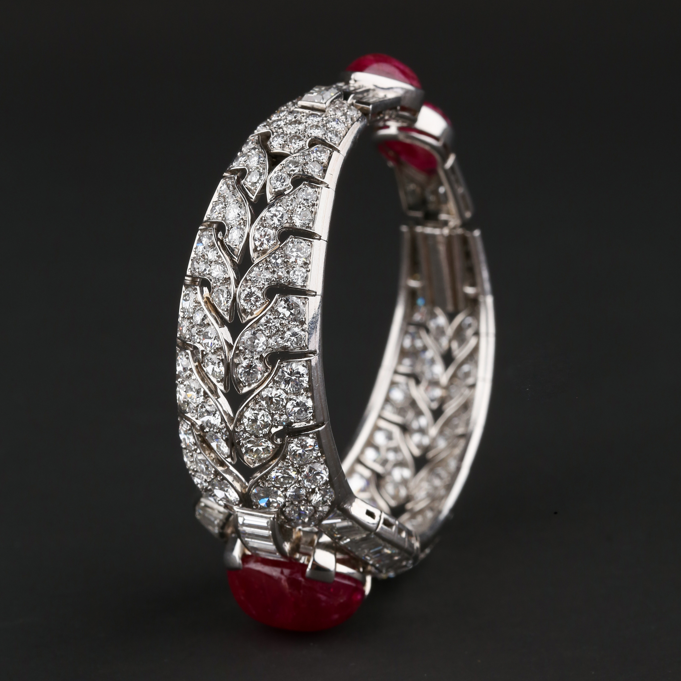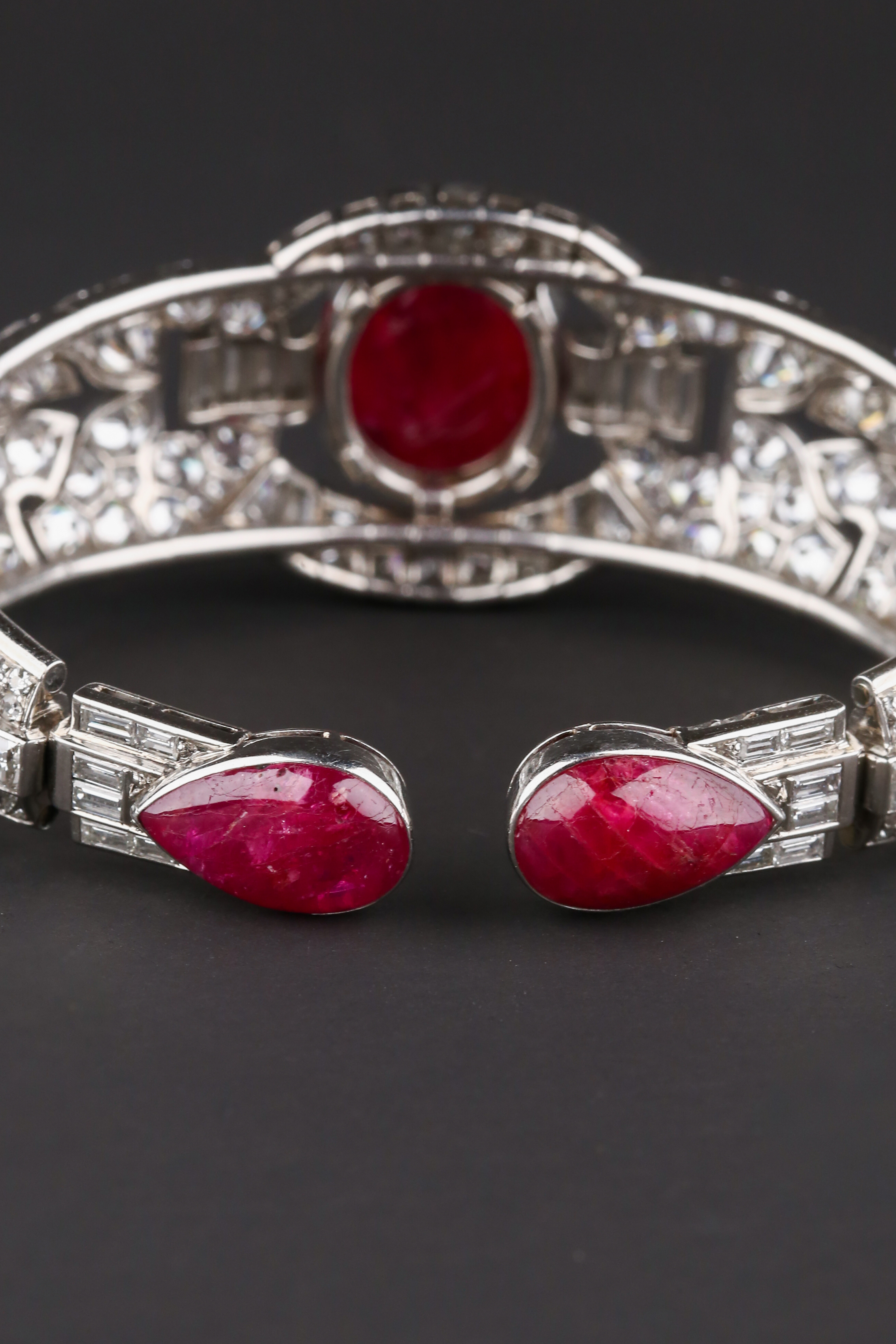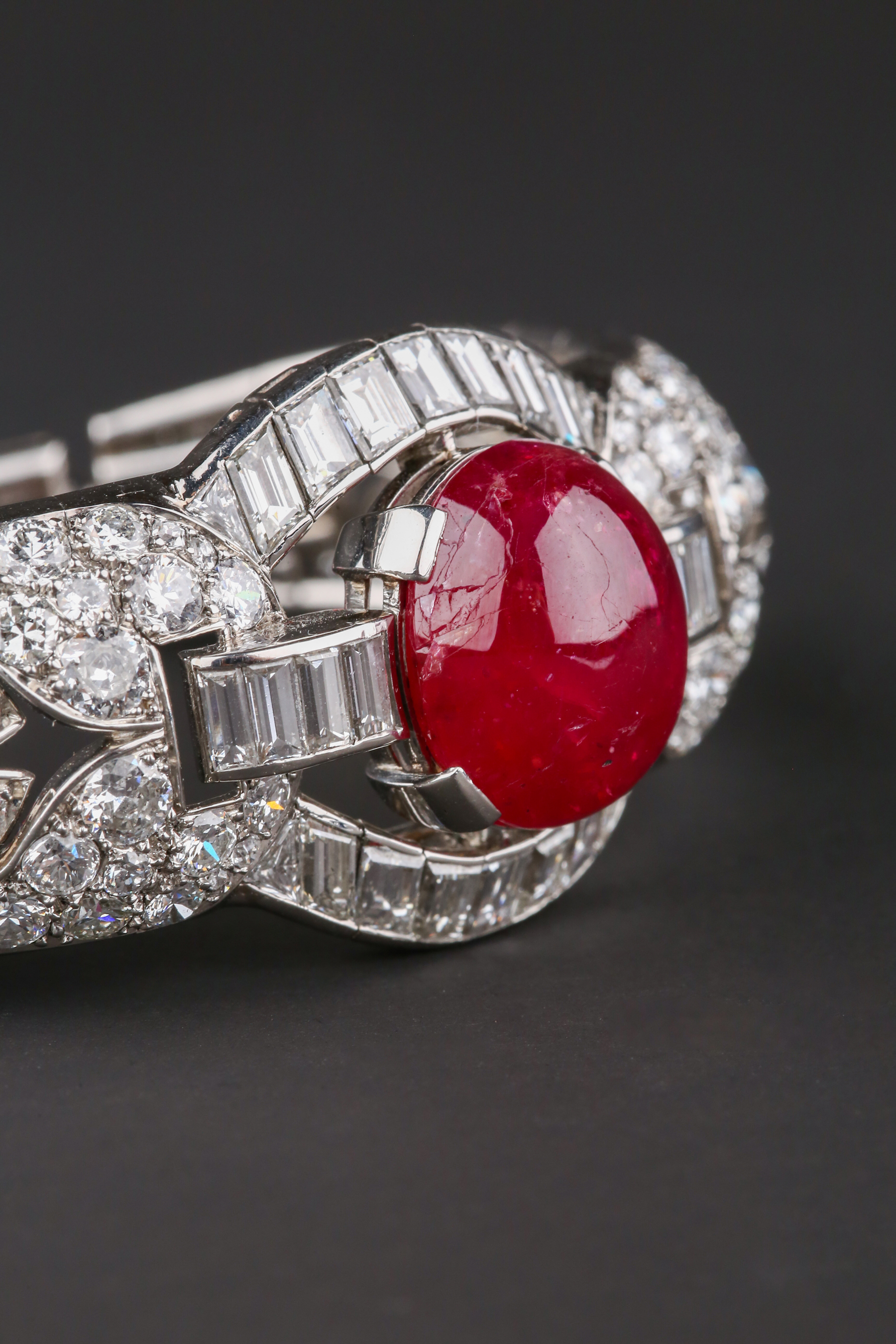 独角鹿西洋古董首饰珠宝1930年代欧洲铂金镶嵌红宝石手镯手链手饰