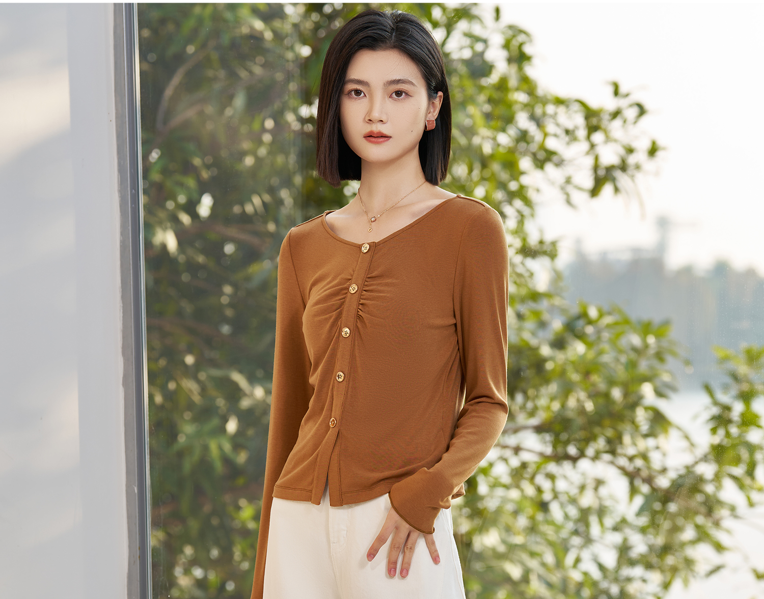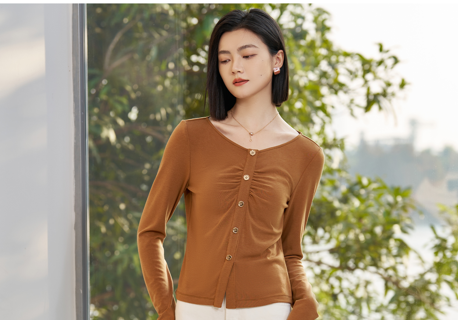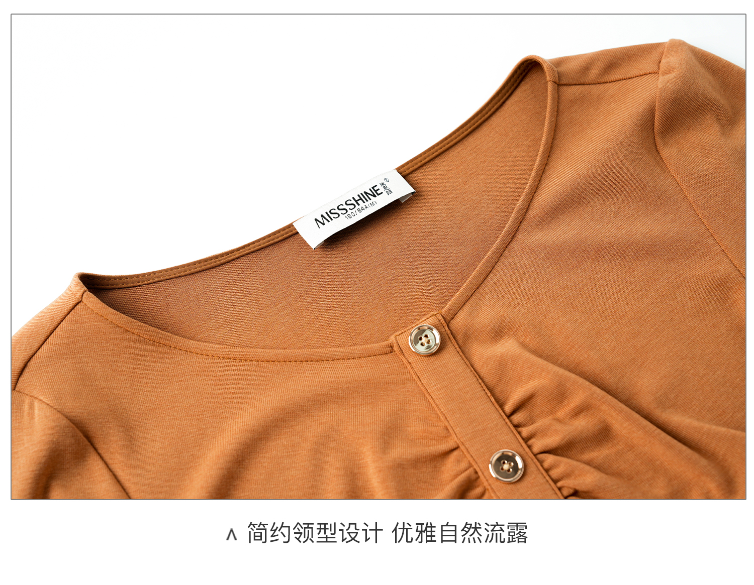 米思阳2026春季新款简约百搭T恤天丝醋酸羊毛混纺柔软舒适上衣女5507