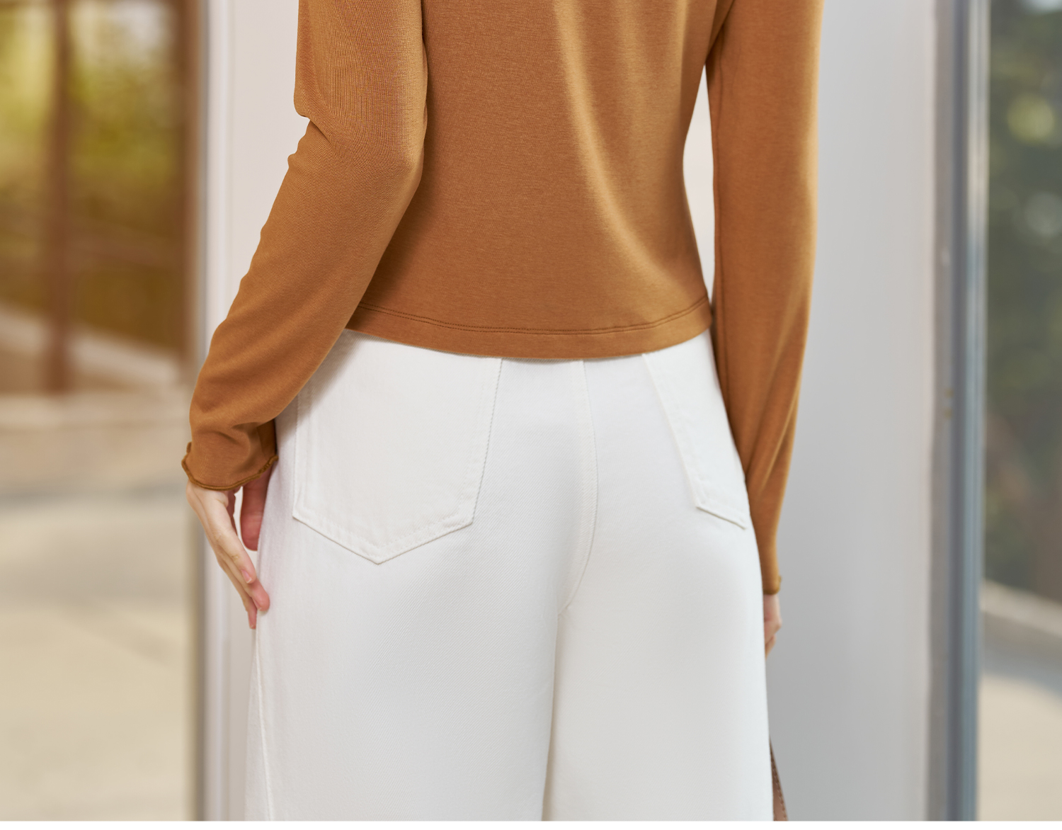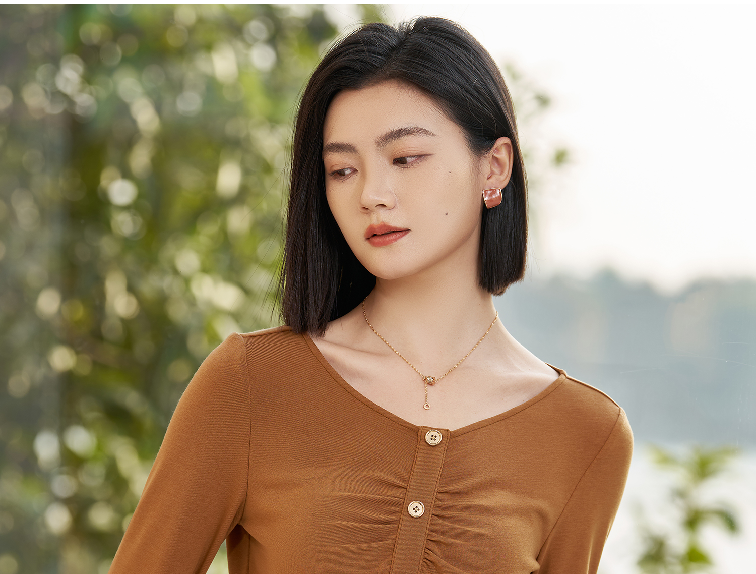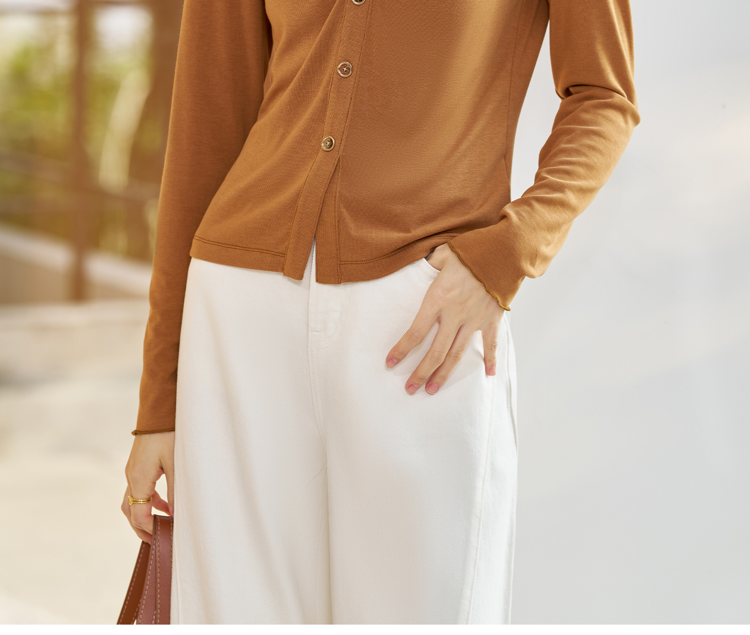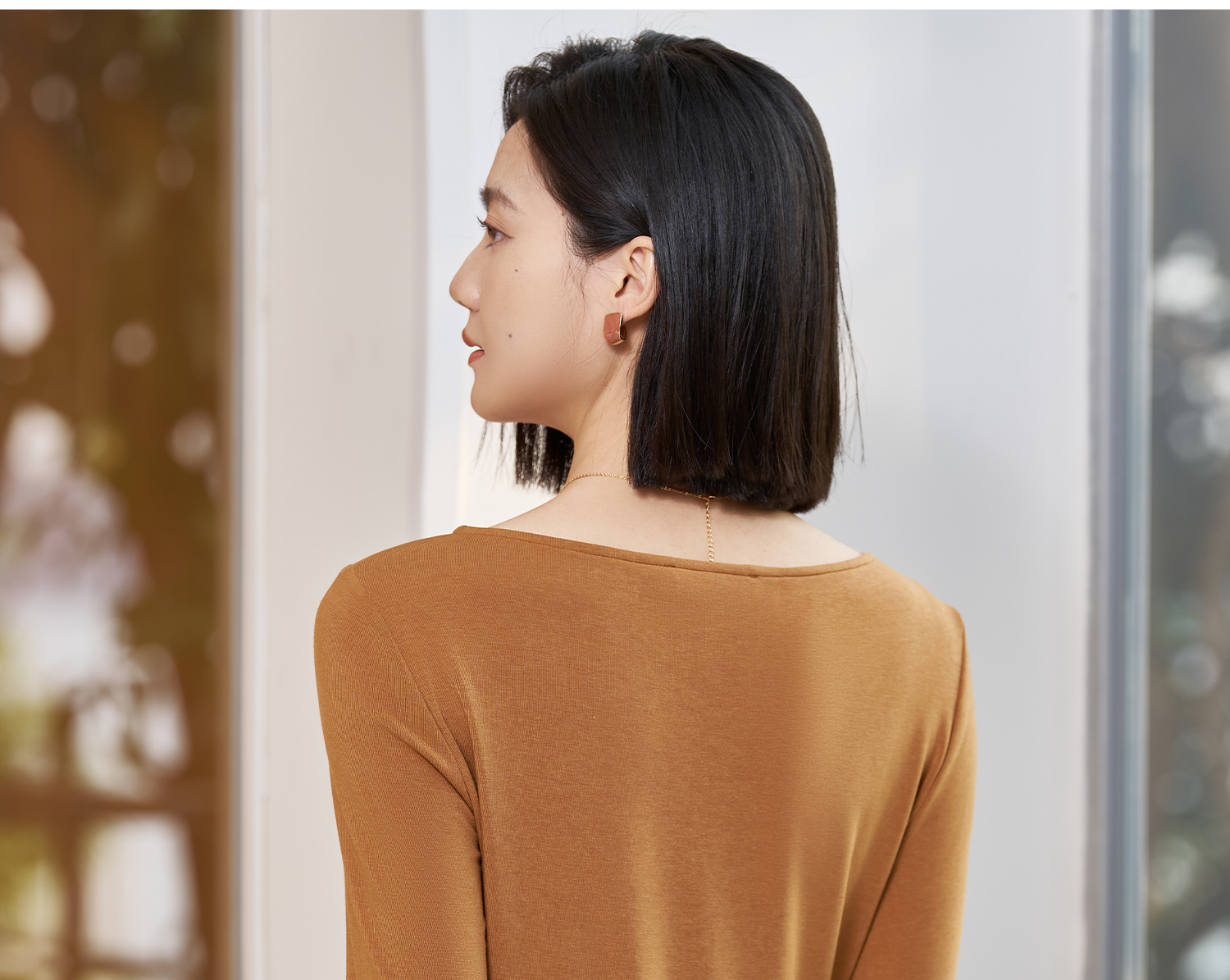 米思阳2026春季新款简约百搭T恤天丝醋酸羊毛混纺柔软舒适上衣女5507