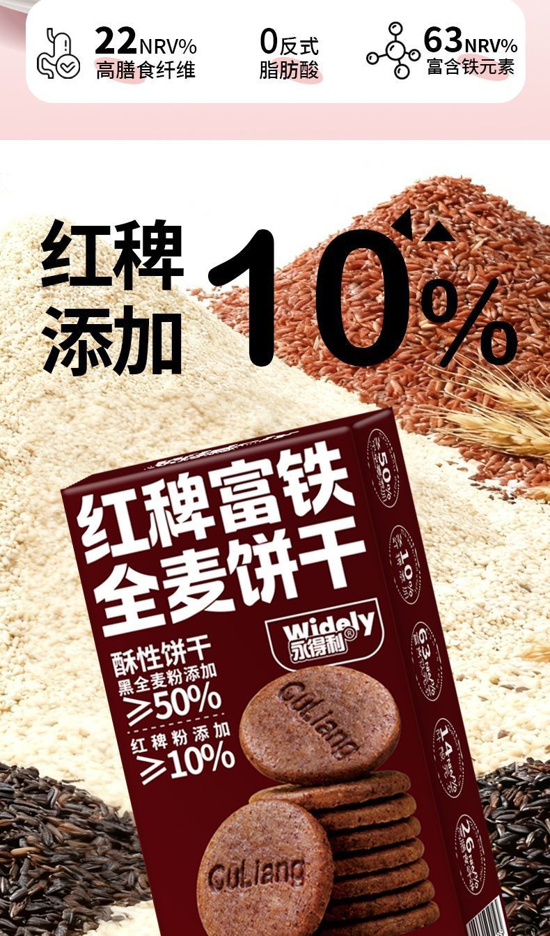 【吃出好气色❗️红稗富铁全麦饼干】甄选5大谷物添加,黑全麦 红稗 红枣 枸杞 白芝麻 0糖63%铁14%叶酸含钙锌硒,黑麦无糖饼干孕妇缺铁糖友零食L