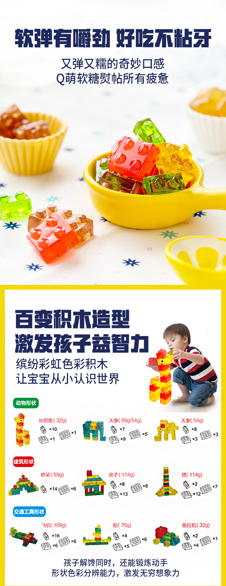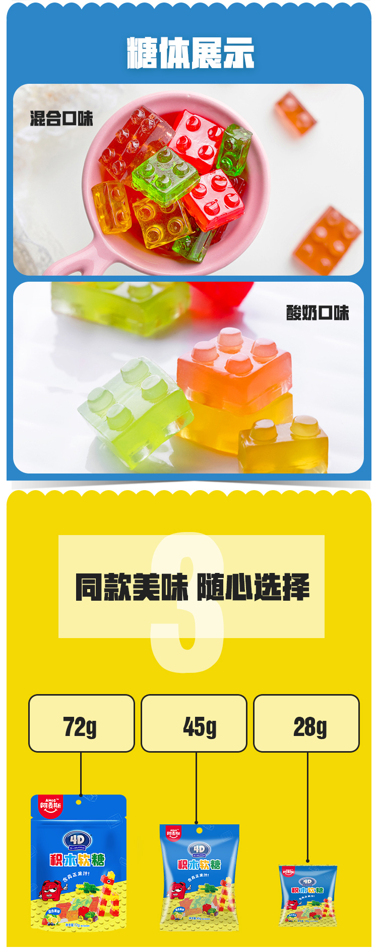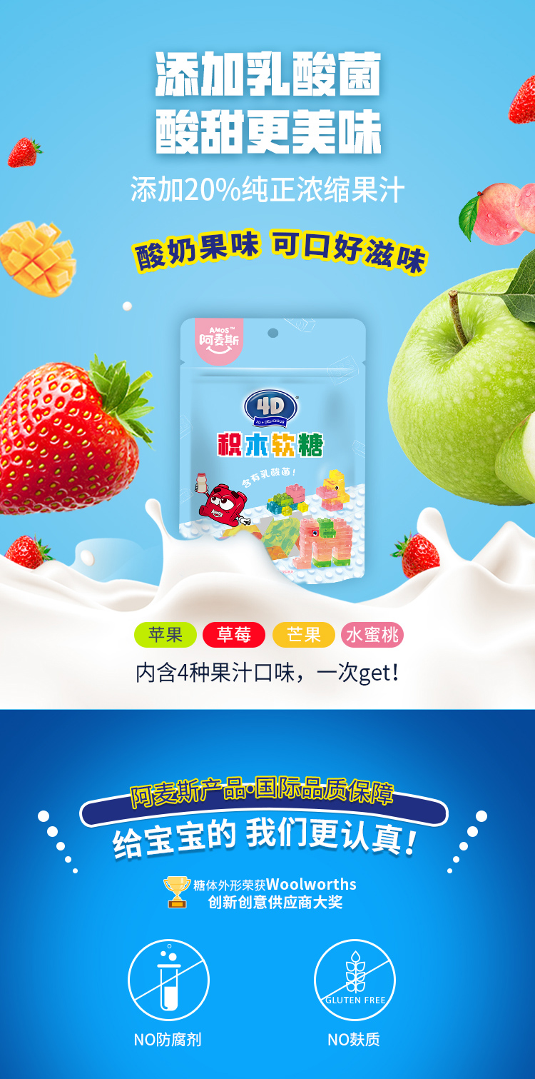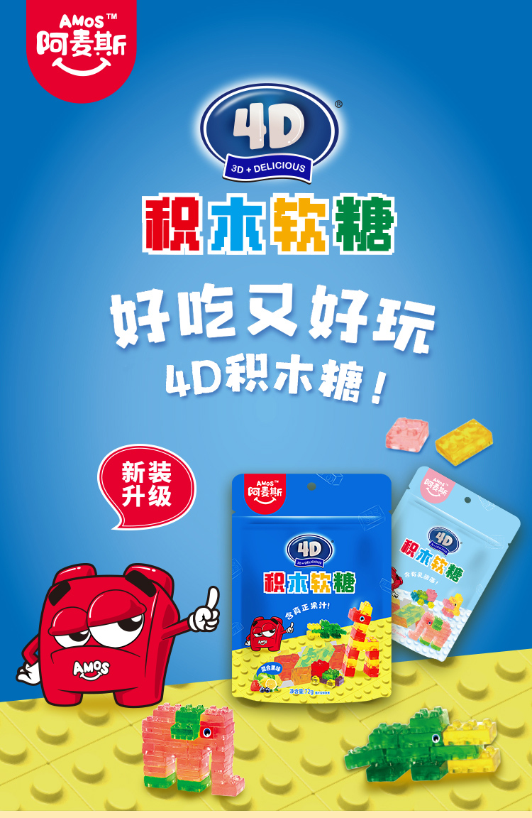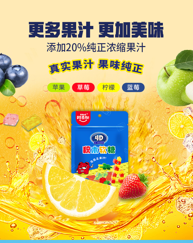 【热门爆款】阿麦斯4D积木水果果汁软糖儿童零食节日礼物可拼装搭积木橡皮糖