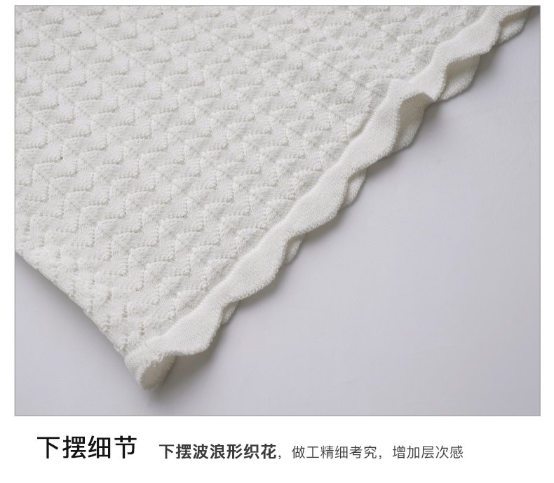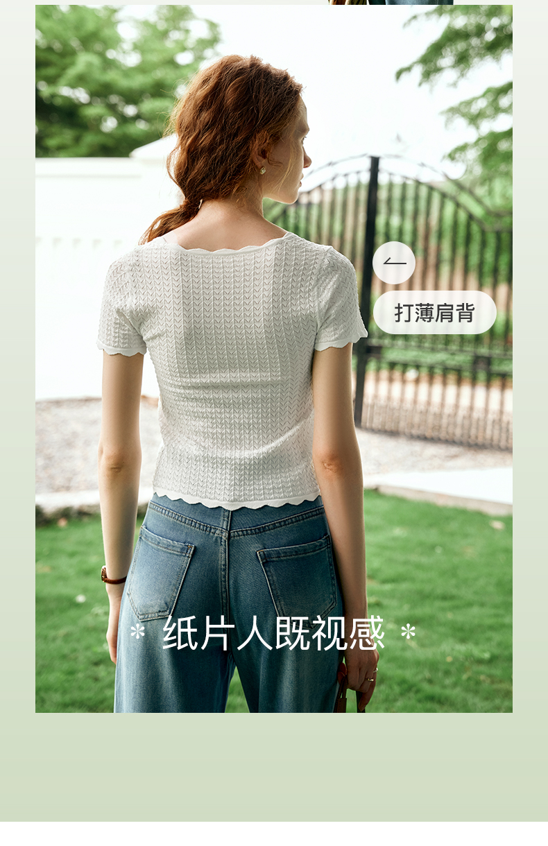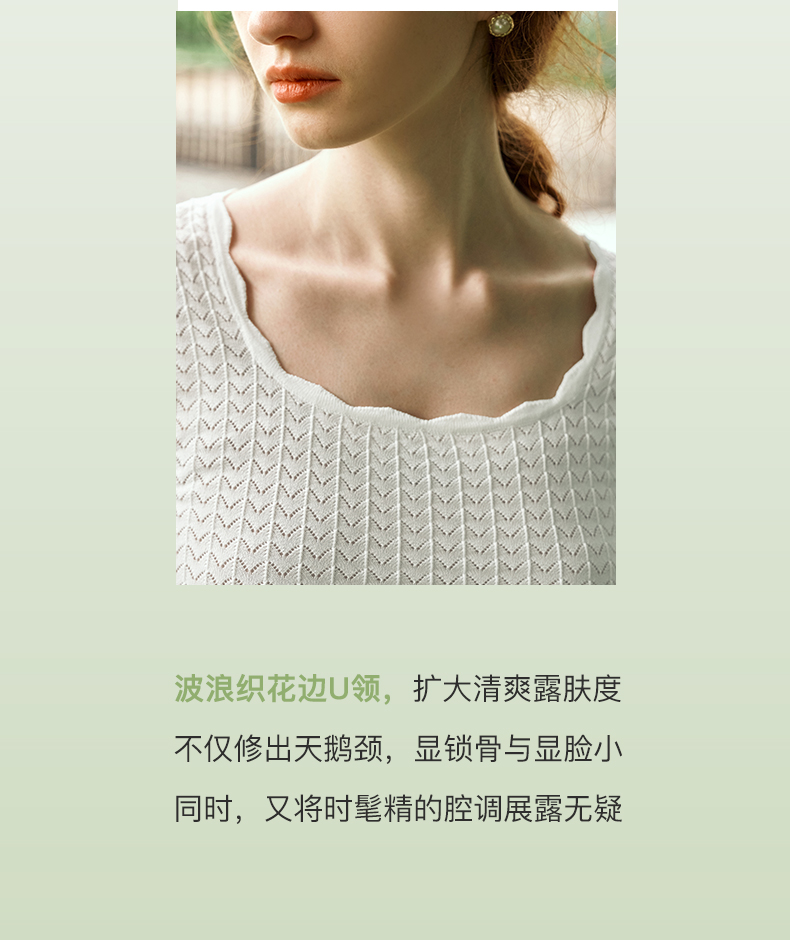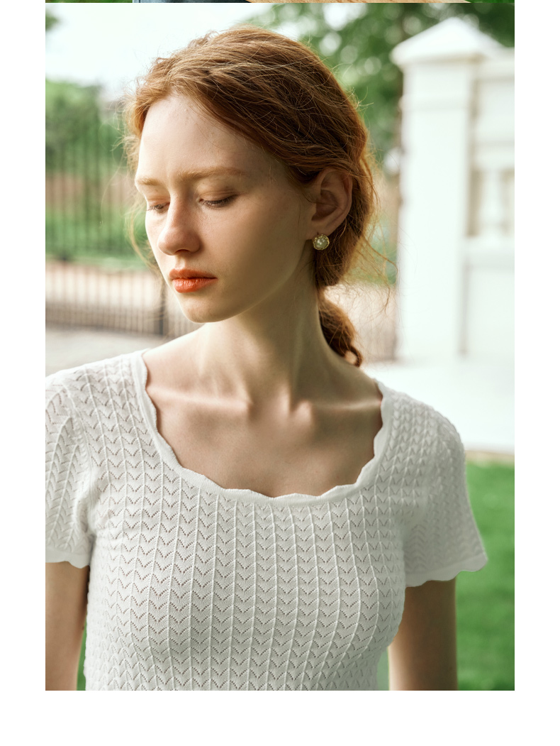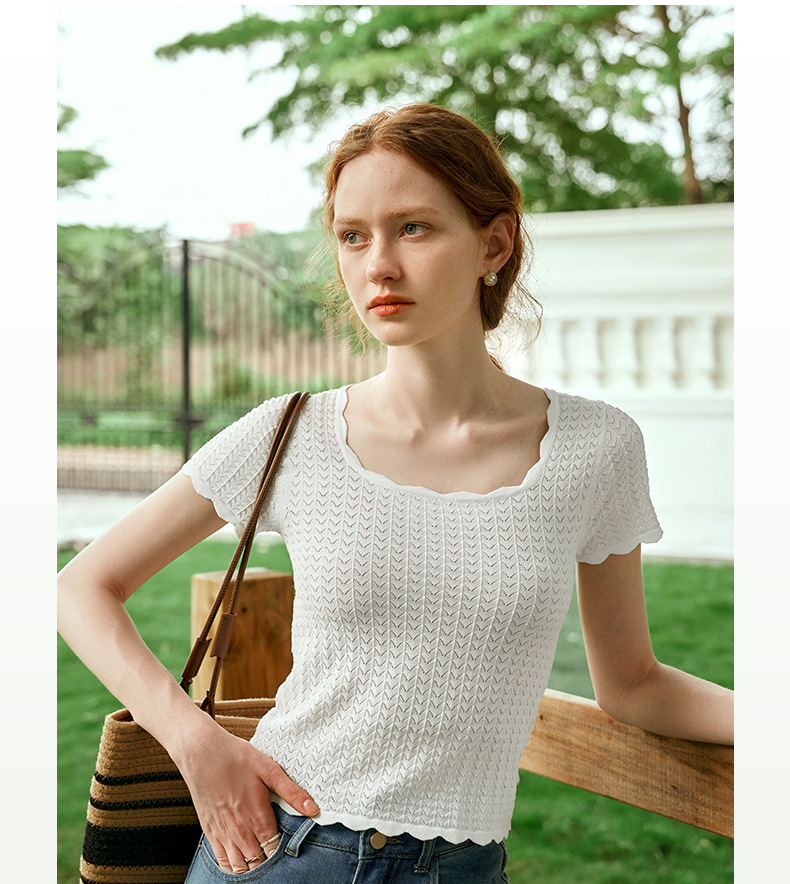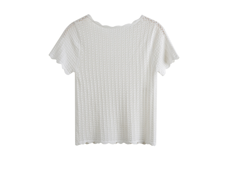 OLrain欧芮儿杏白色U领针织衫女夏季2024年新款法式镂空简约短袖