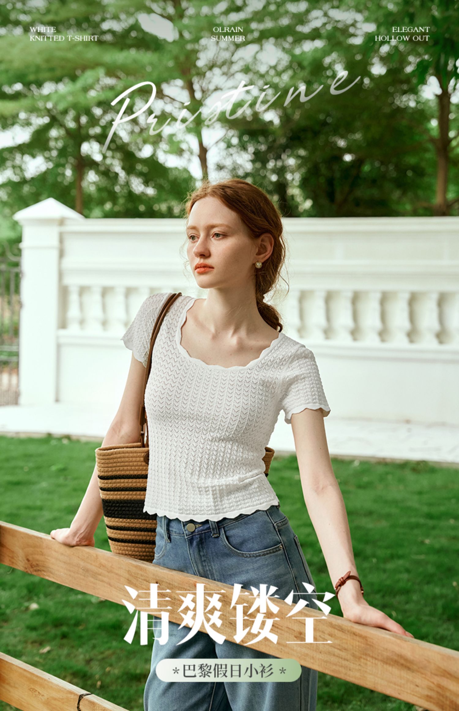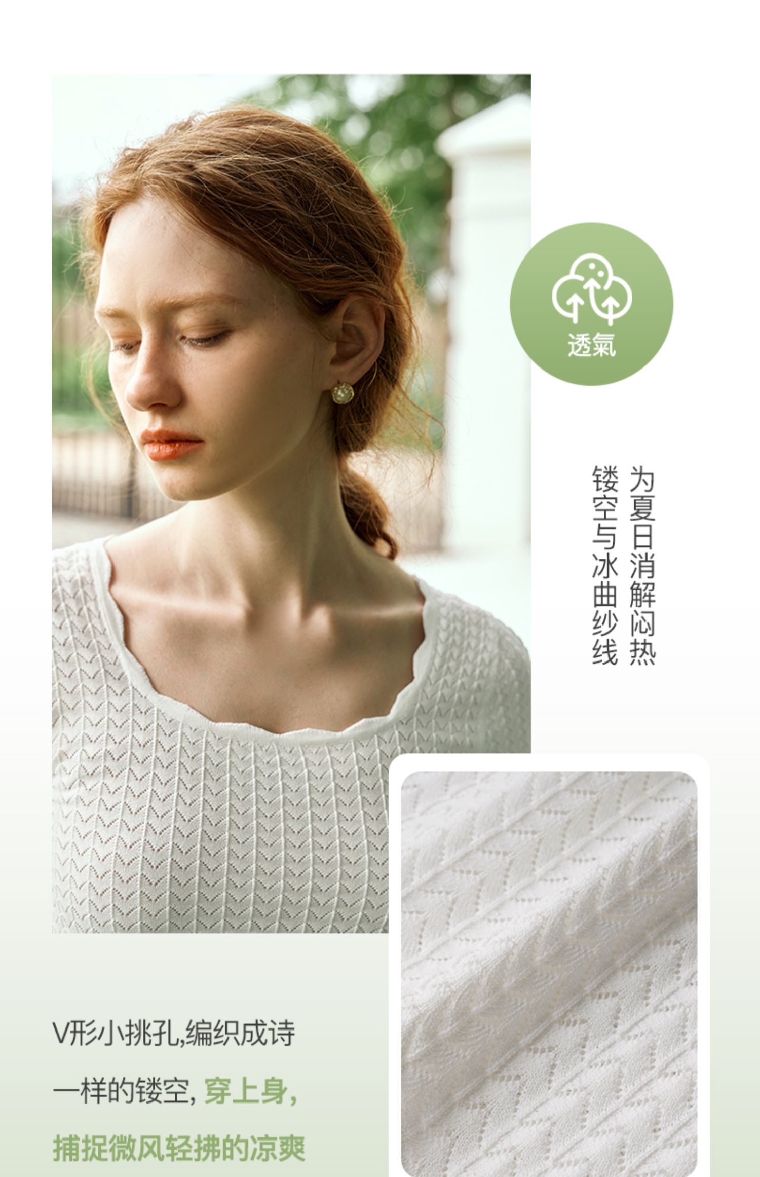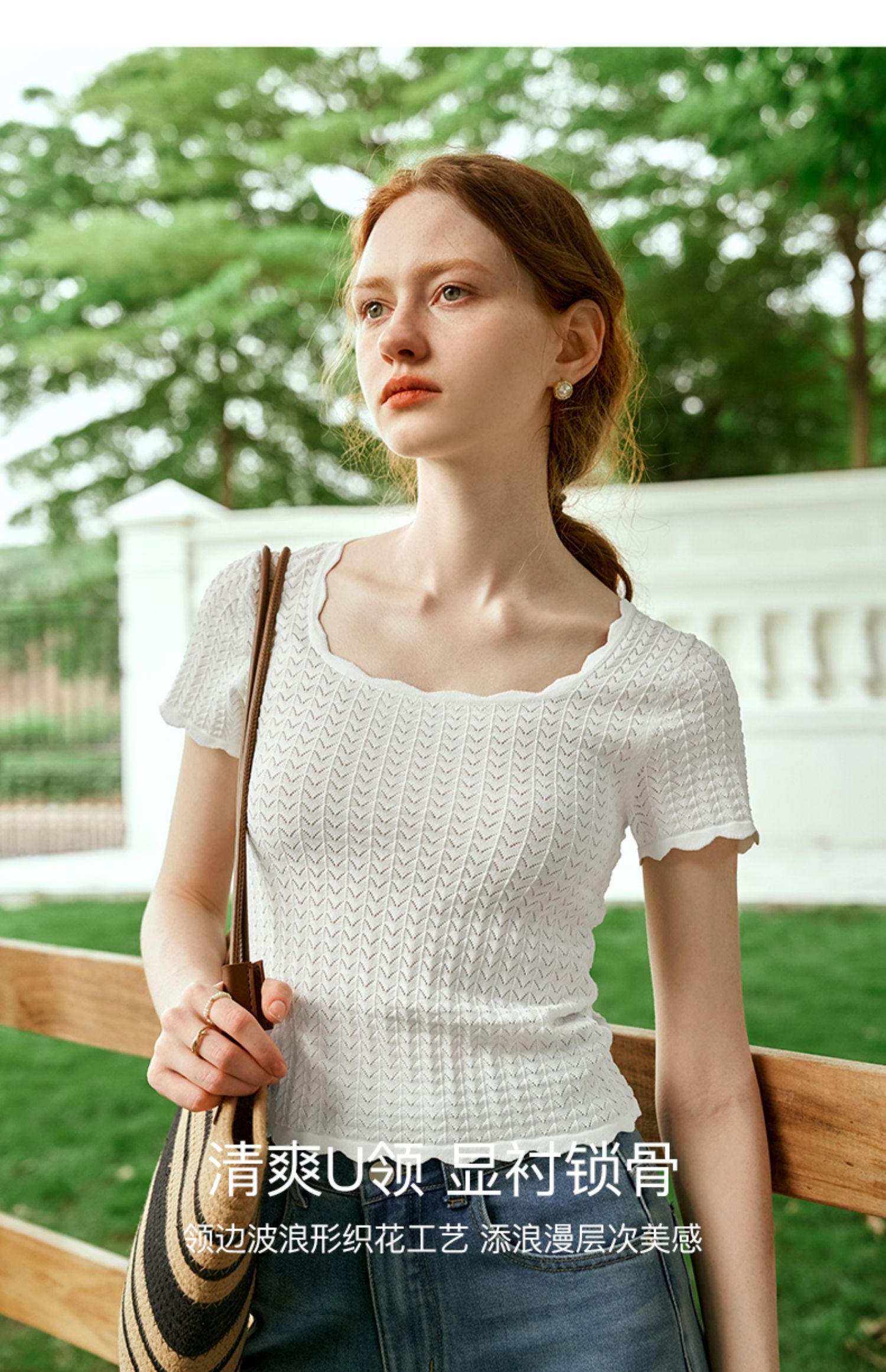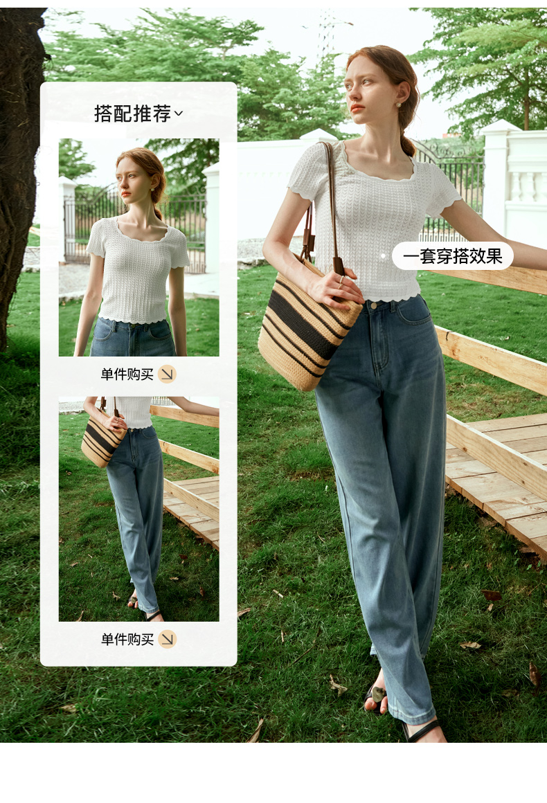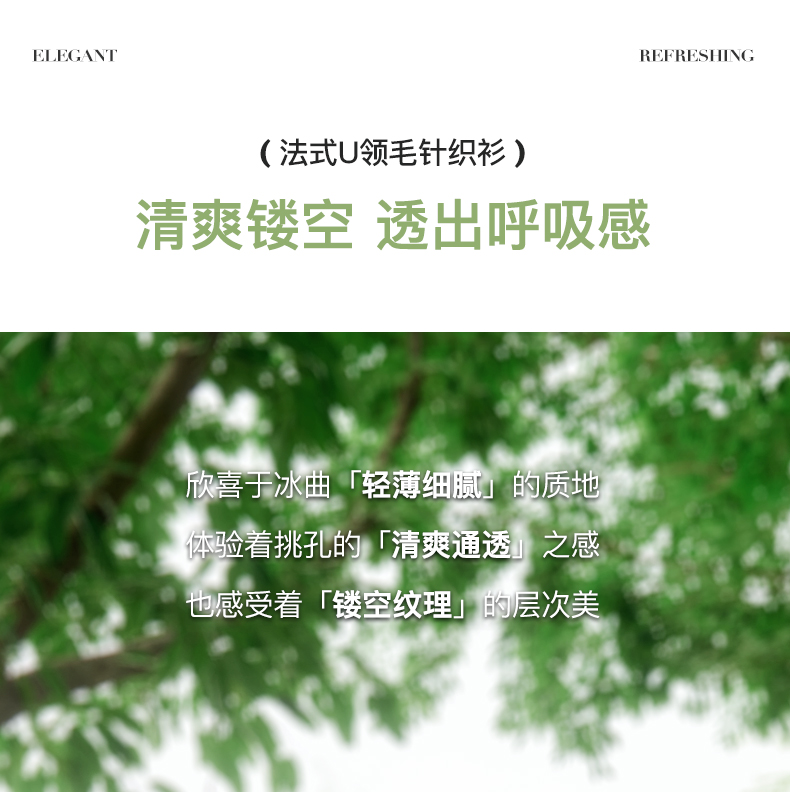 OLrain欧芮儿杏白色U领针织衫女夏季2024年新款法式镂空简约短袖