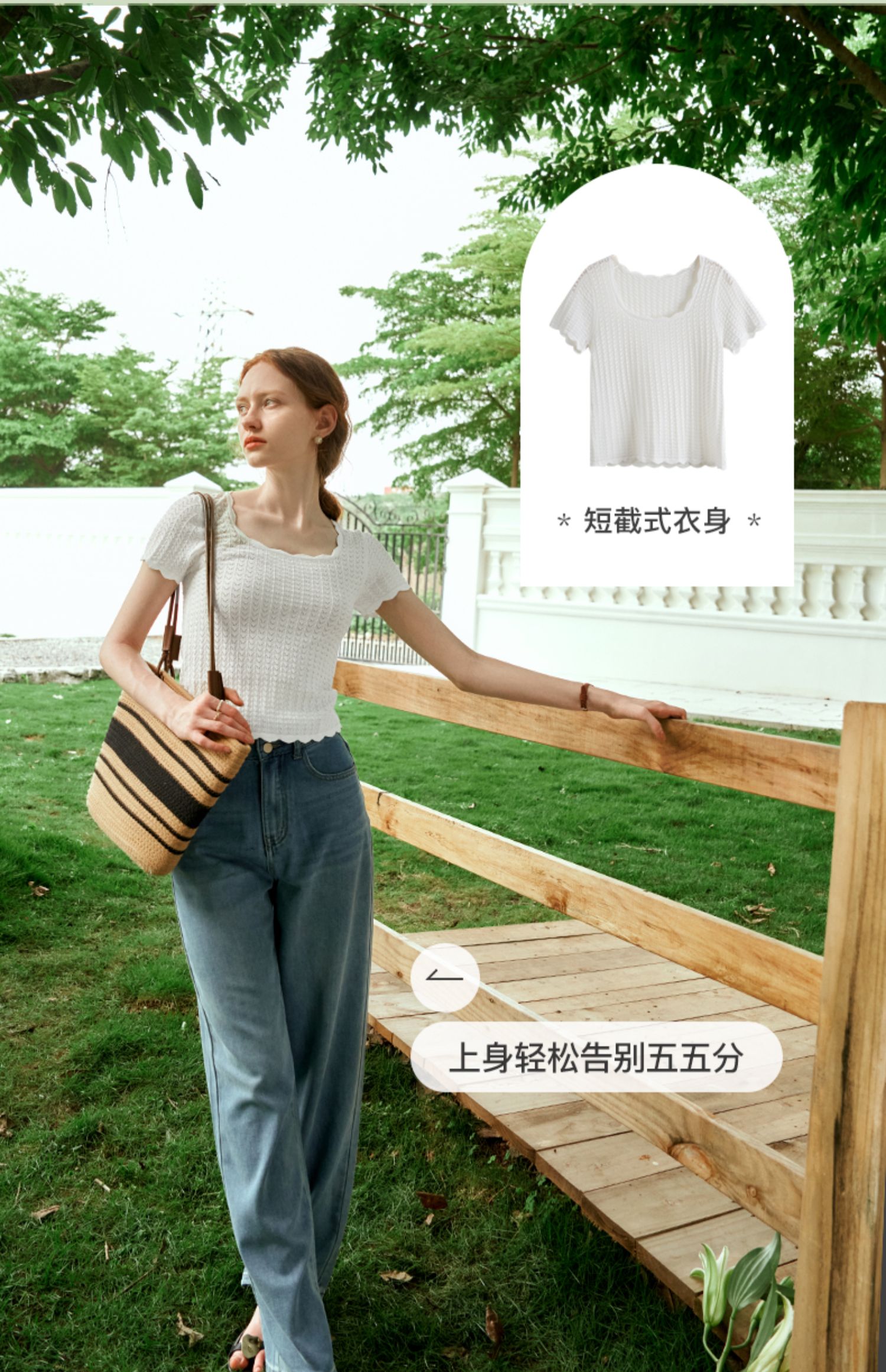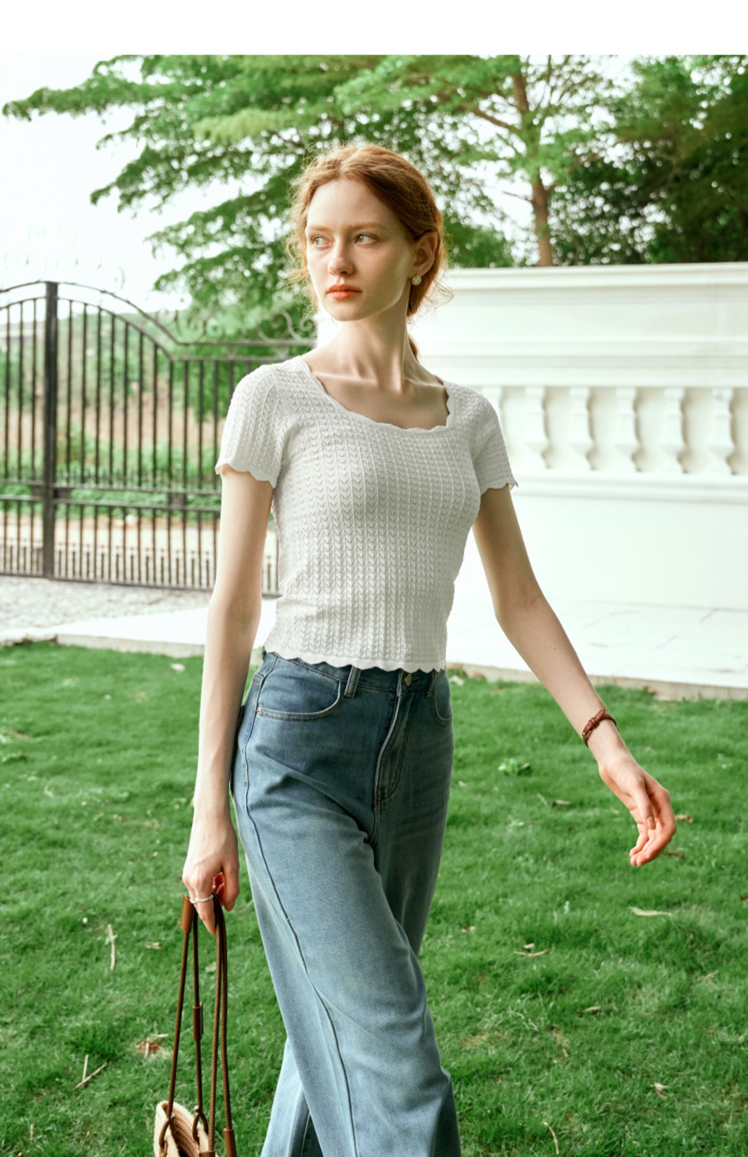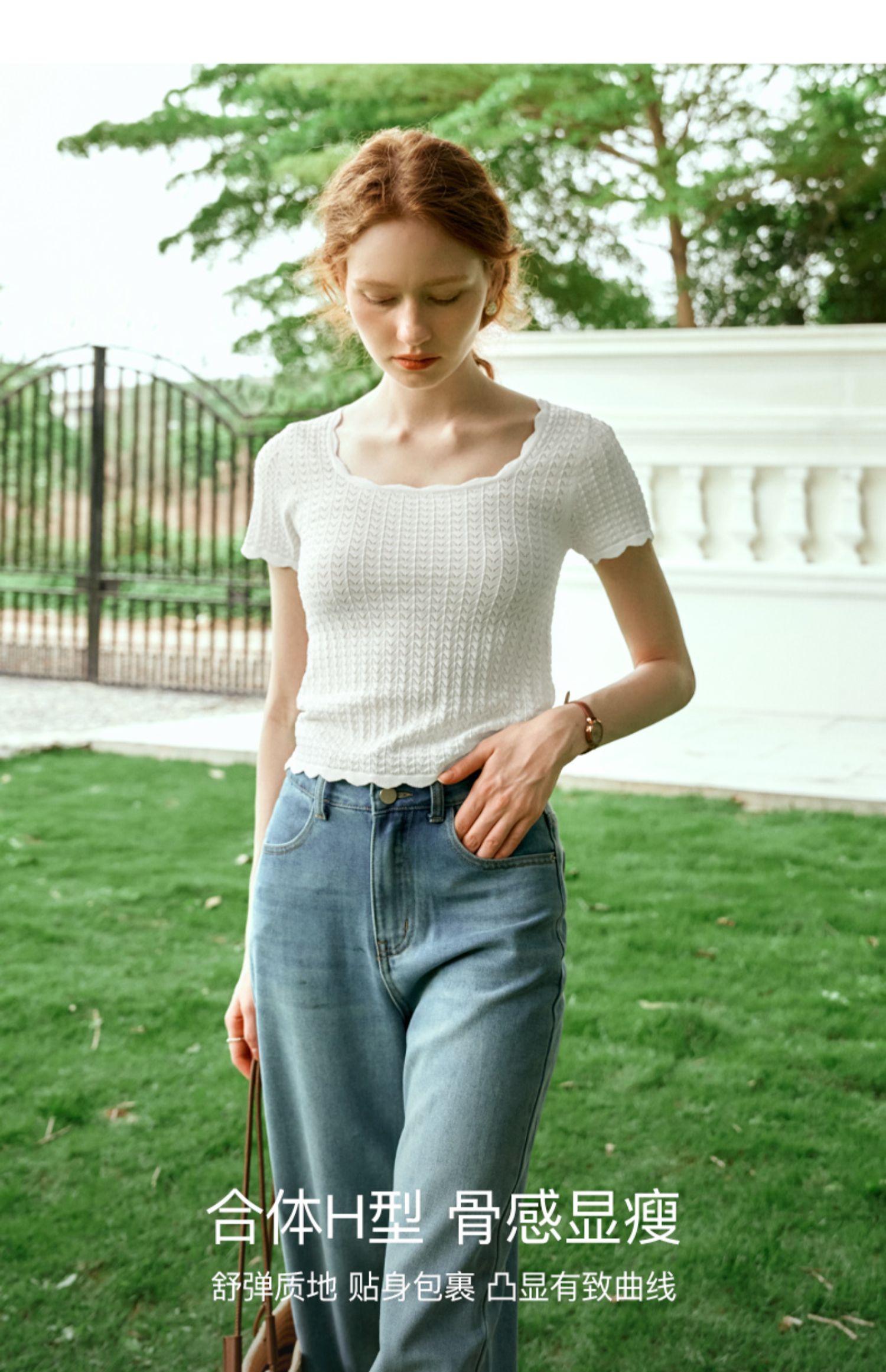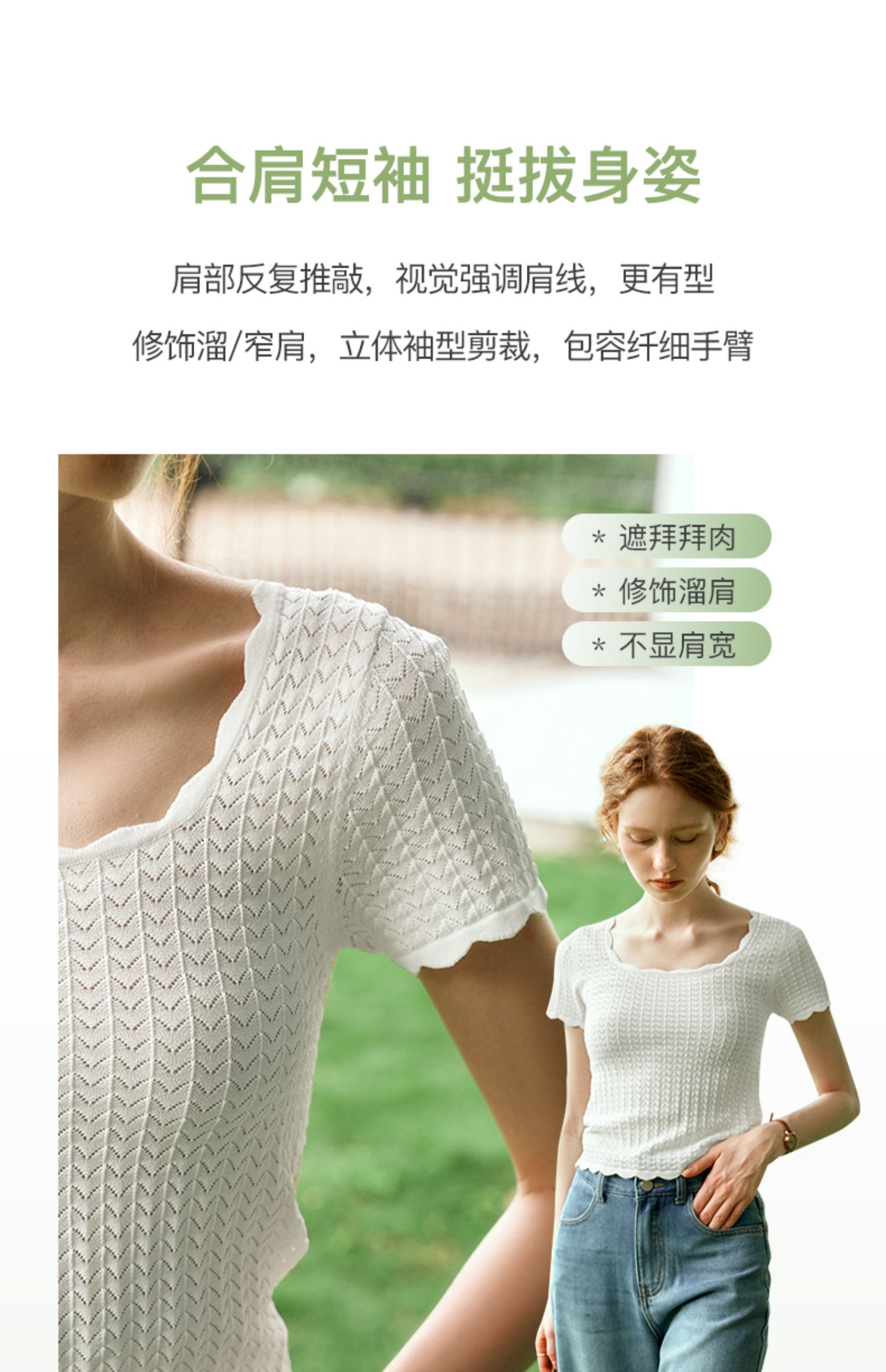 OLrain欧芮儿杏白色U领针织衫女夏季2024年新款法式镂空简约短袖
