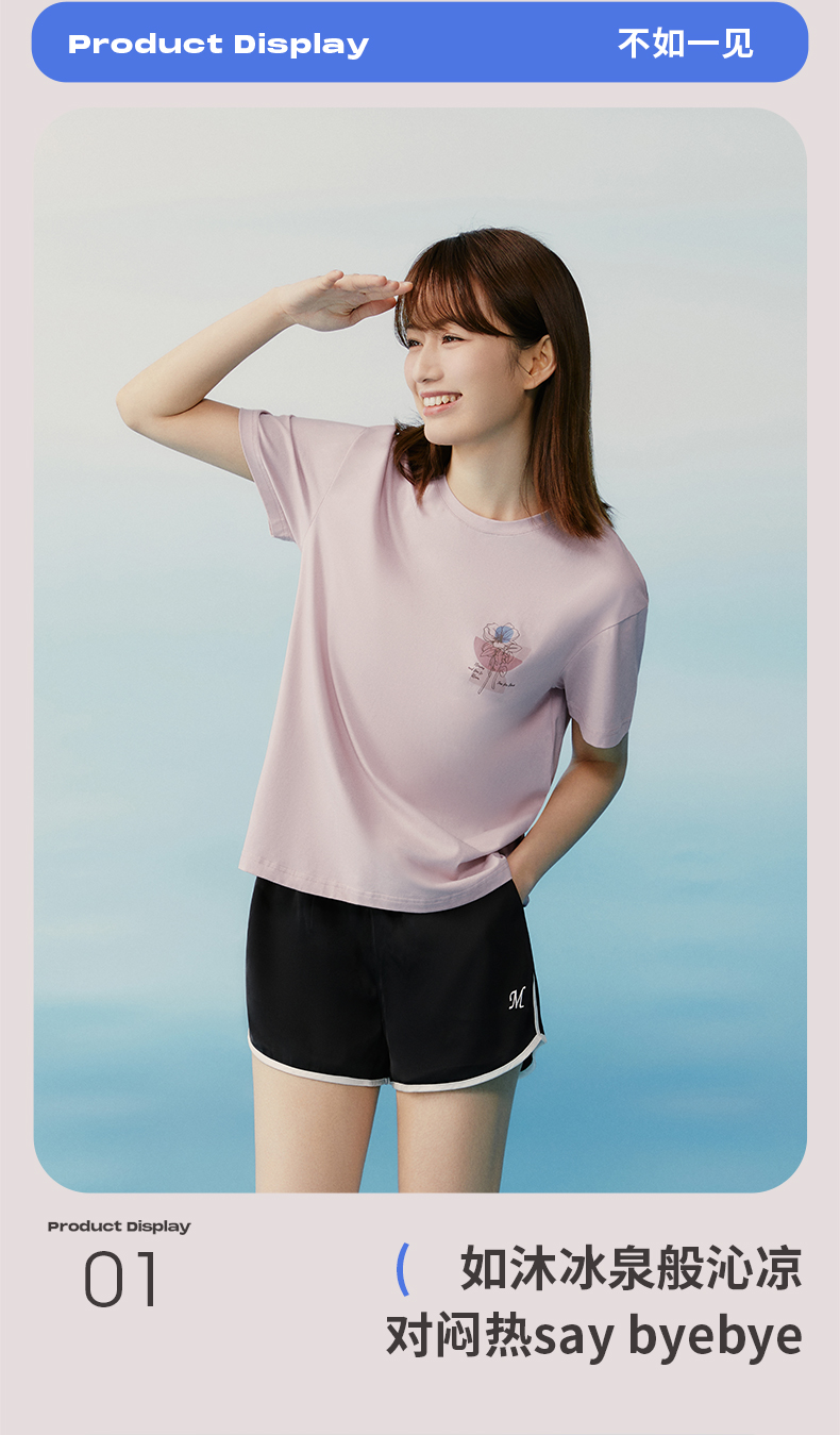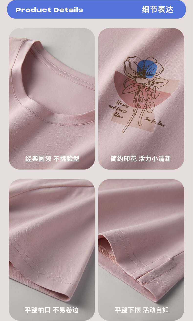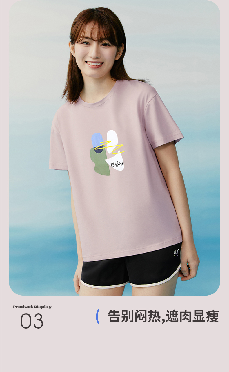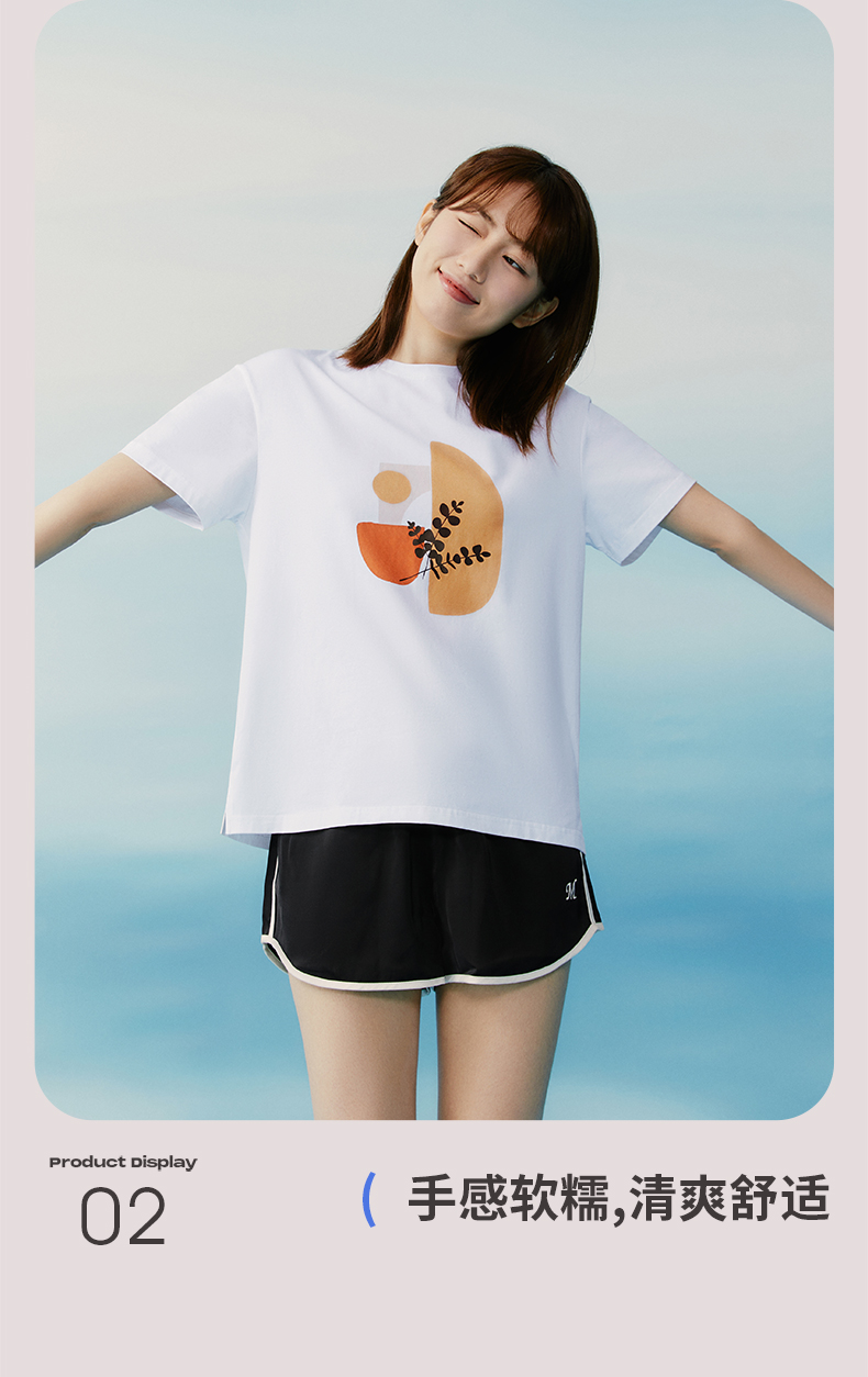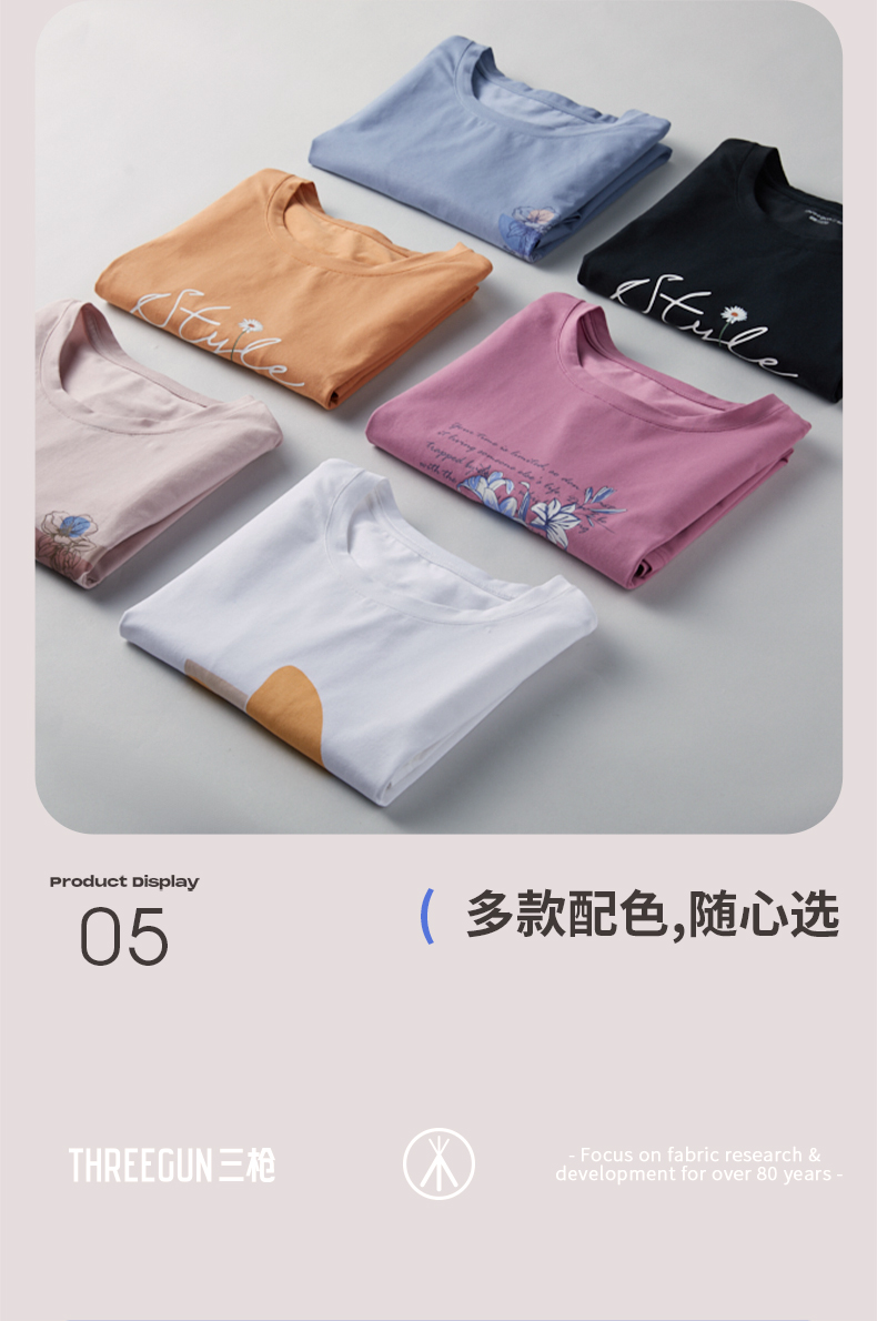 三枪冰泉棉印花圆领落肩短袖女衫24240A211