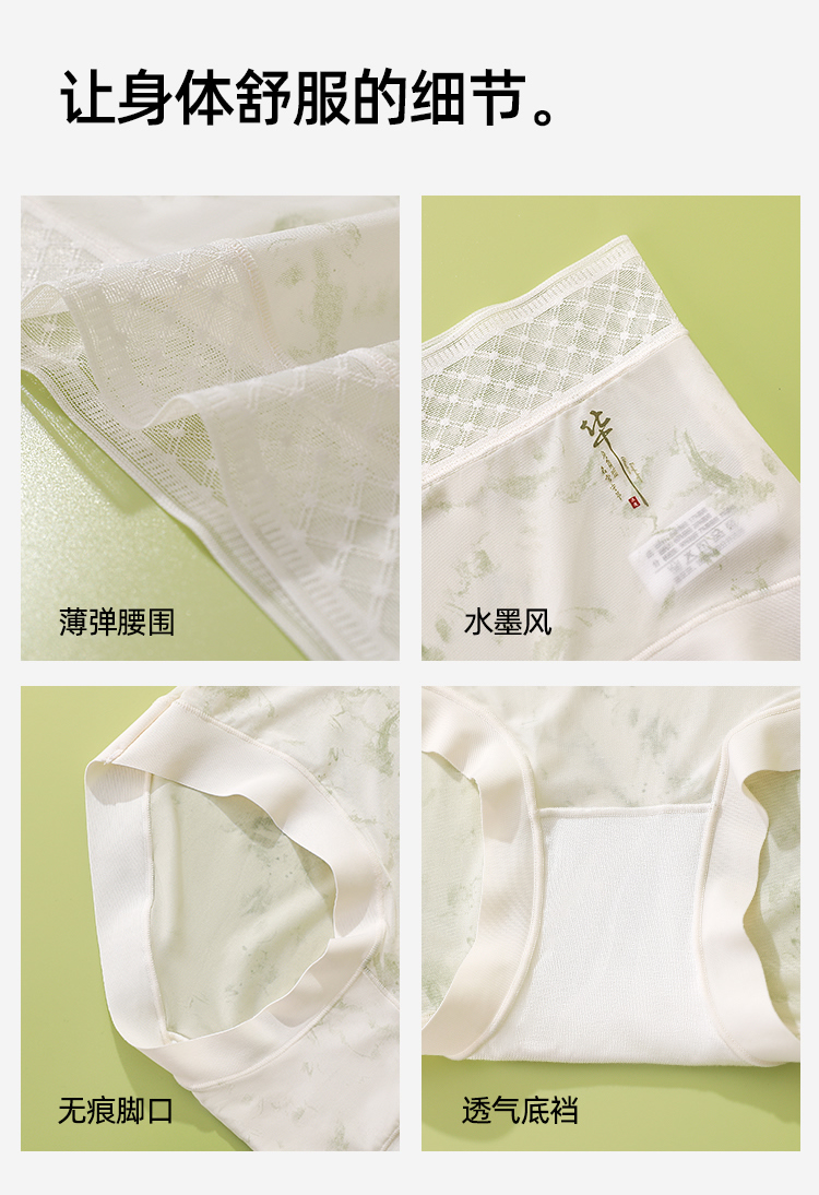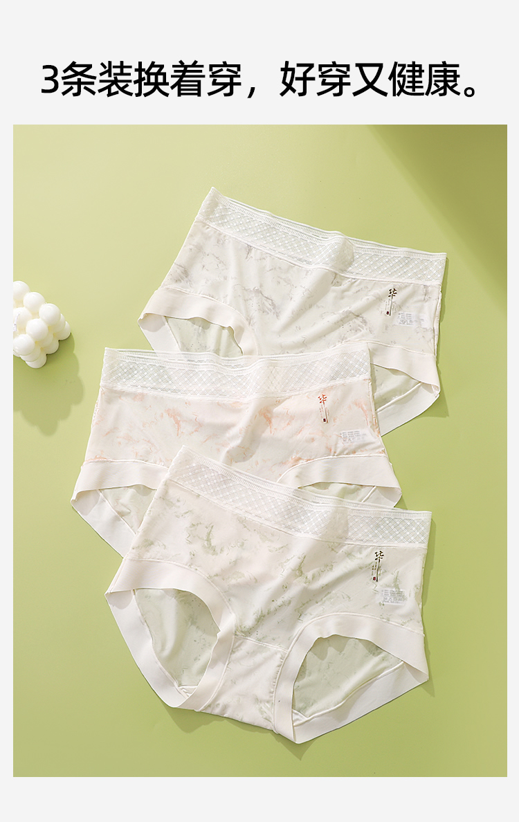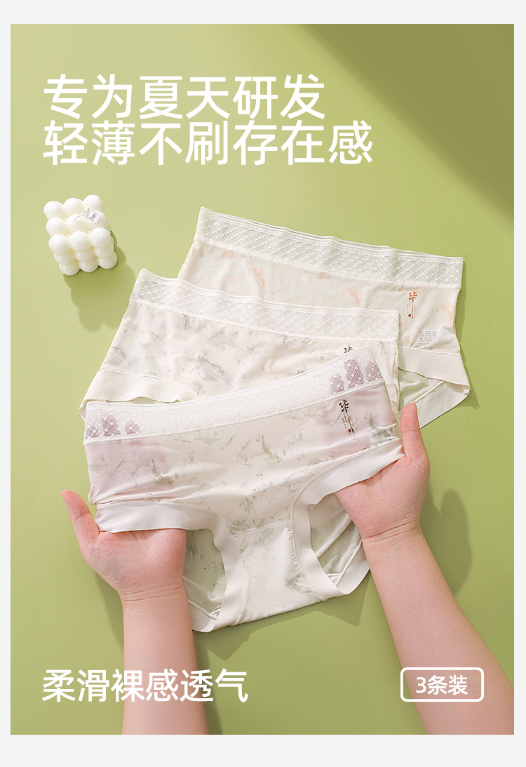 【3条装】熳洁儿 冰丝女士内裤中腰包臀国风轻薄速干25262125