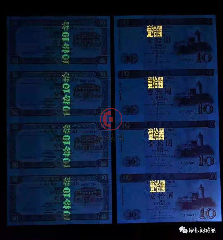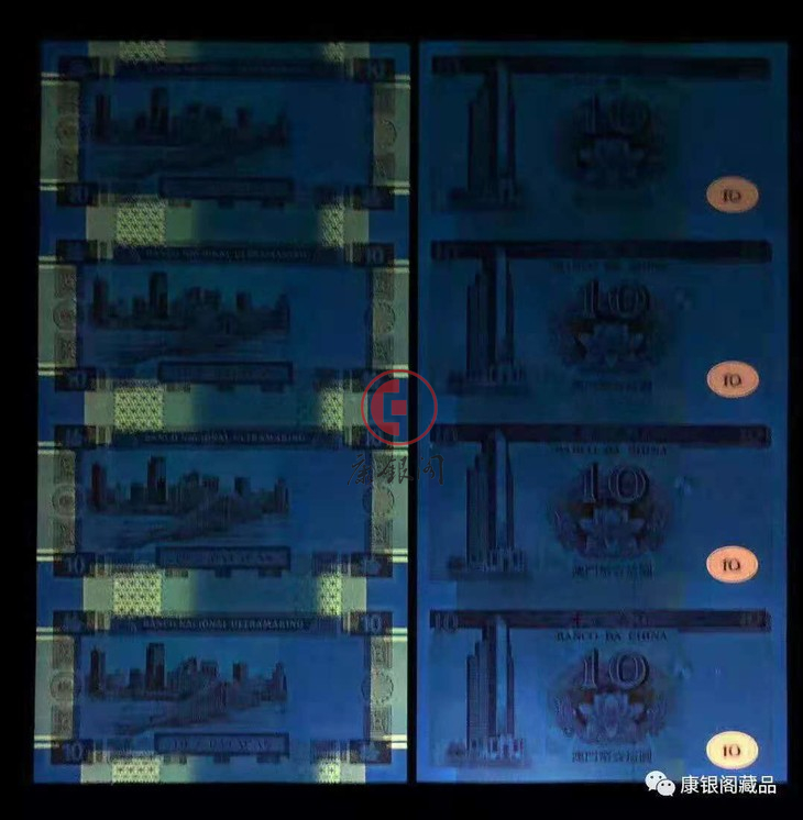 钞票出现错版,是非常罕见的。而澳门币拾圆劵,两个发钞银行都出现不同的错误,这简直就是奇迹!因为每版连体钞出厂前必须经过7道关卡严格检验,整个过程全部录制,录像密封存档。”在如此严密的监督下出现错版的几率仅为千万分之一,两大银行同时出现错版的机率更是亿万分之一!
